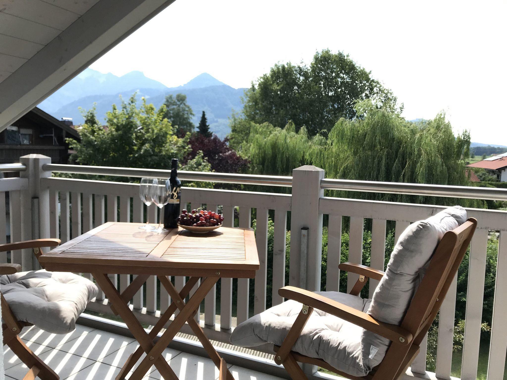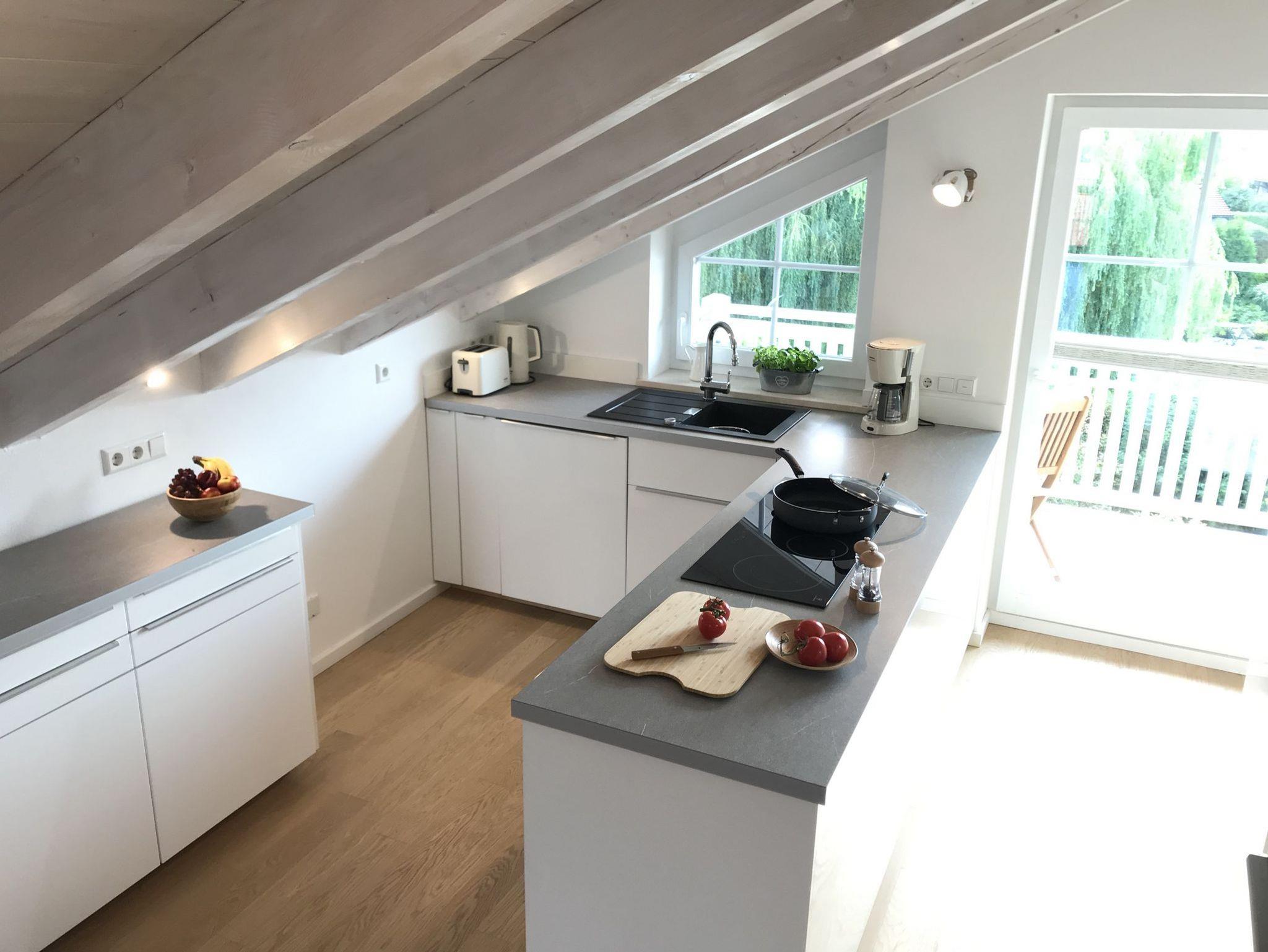 Unsere charmante Ferienwohnung befindet sich in ruhiger Lage am Ortsrand von Grassau in unmittelbarer Nähe zum Golfplatz.Die hell gehaltene Wohnung umfasst das gesamte Dachgeschoß und wurde liebevoll in modern-ländlichem Stil eingerichtet. Eine vollausgestattete Küche gehört ebenso zur Wohnung wie das Bad mit Dusche und Badewanne sowie das Schlafzimmer mit seinem gemütlichen 2m breiten Doppelbett. Dank des offen gestalteten Koch-Wohn-Essbereichs lässt sich das Bergpanorama der Chiemgauer Alpen am Frühstückstisch genauso wie zum Tagesausklang am großzügigen Westbalkon genießr Sichtdachstuhl und der Eichenholzboden (mit Bodenheizung) runden das behagliche Wohnambiente ab und sollten Ihnen ein Maximum an Urlaubserholung im Grünen ermöglichen.