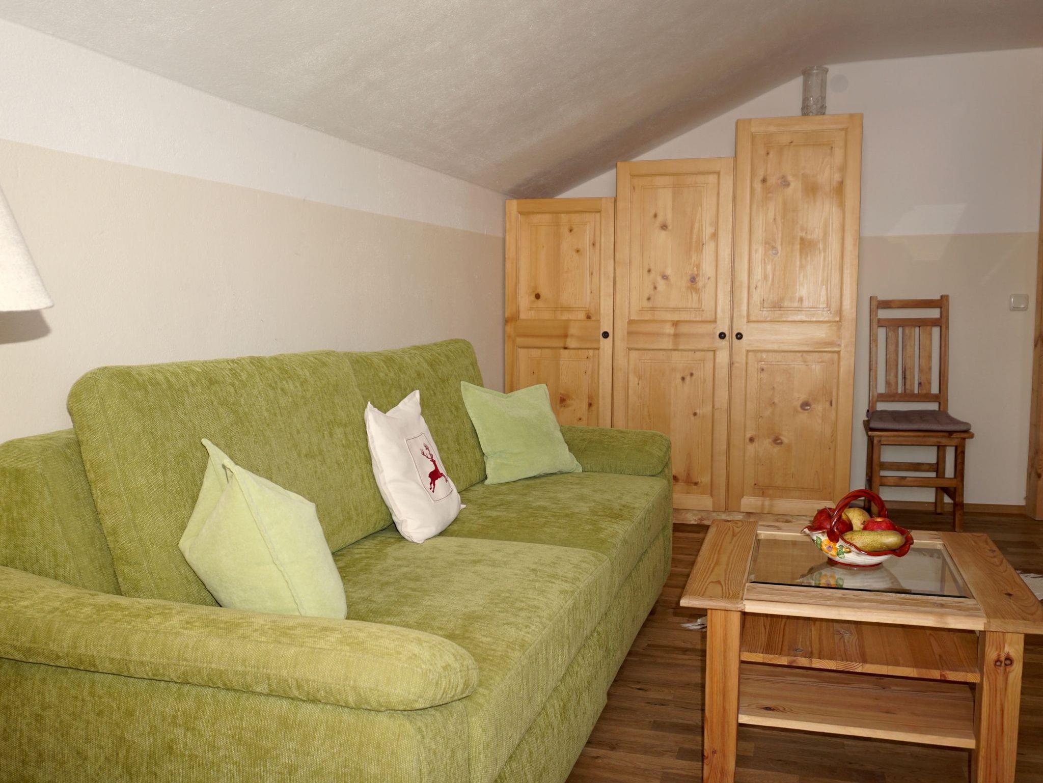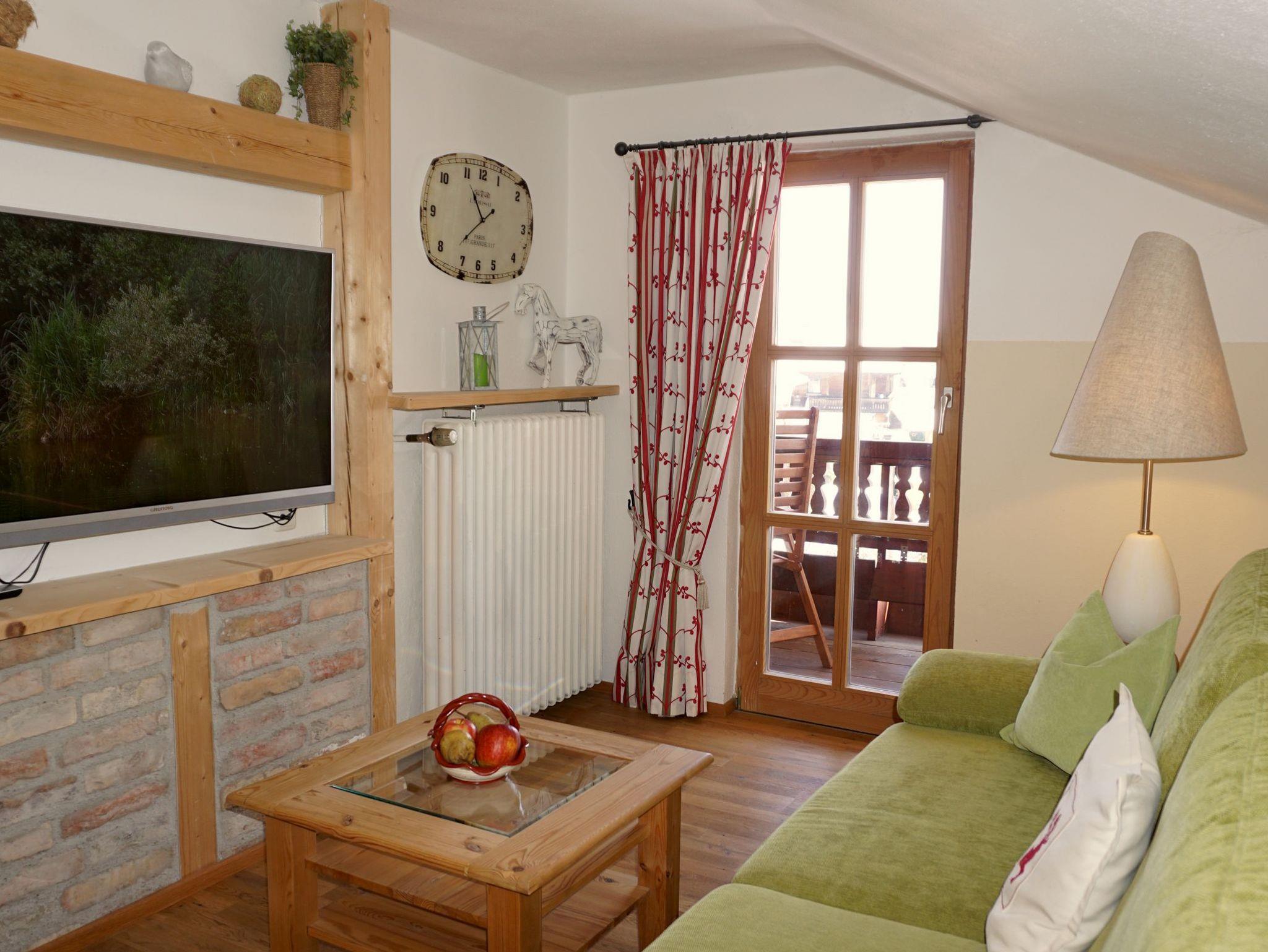 Komfortabel eingerichtete Ferienwohnung im Landhausstil mit sonnigem Ostbalkon. Wohn- und Schlafraum sind getrennt; Im Wohnzimmer befindet sich eine Schlafcouch; Kabel-TV mit Flachbildschirm 32 Zoll; Kochnische mit 2-Plattenherd und Essecke. Das Badezimmer ist mit Dusche und WC, Vergrößerungsspiegel und Fön ausgestattet. W-LAN.Haustier gegen Gebühr erlaubt.