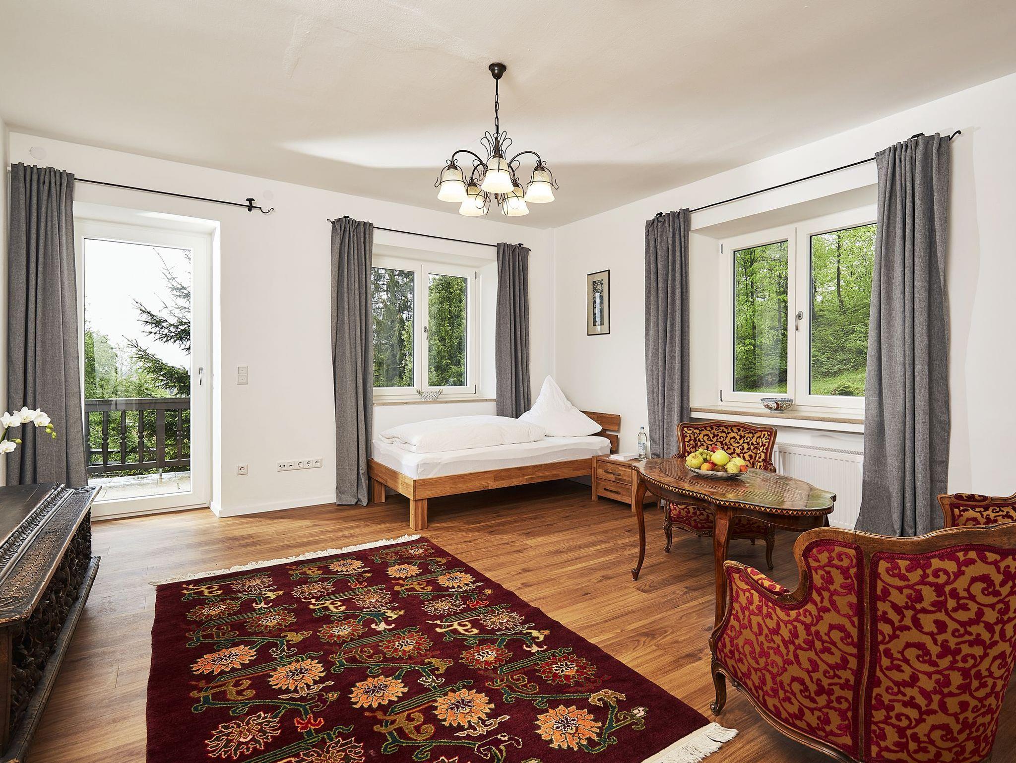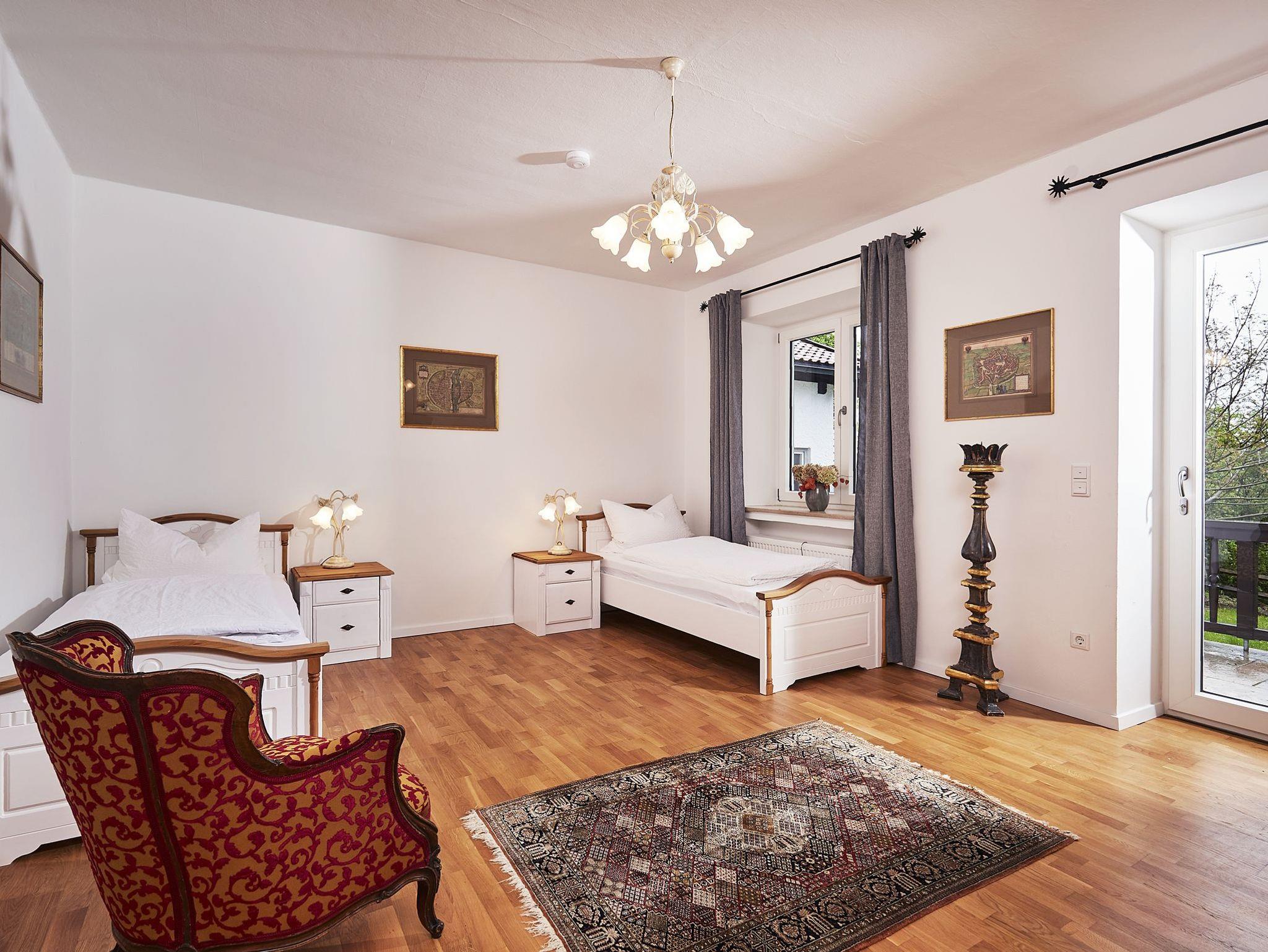 Im Appartement „Brahms“ für bis zu 5 Personen finden Sie Ruhe, Gemütlichkeit und natürlich einzigartiges Wohlfühlambiente. Die Zimmer verfügen über Einzelbetten, bequeme Sitzmöglichkeiten und ein großes Bad. Ein herrlicher Blick über Grassau, in das idyllische Parkgelände und in die Berge lädt Sie ein, die Sinne schweifen zu lassen und lässt Sie auf der besonders großen Terrasse zur Ruhe kommen. Frühstück ist gegen Aufpreis zubuchbar. Zustellbett für Kinder kostenfrei möglich, bei Erwachsenen 20 EUR pro Tag.