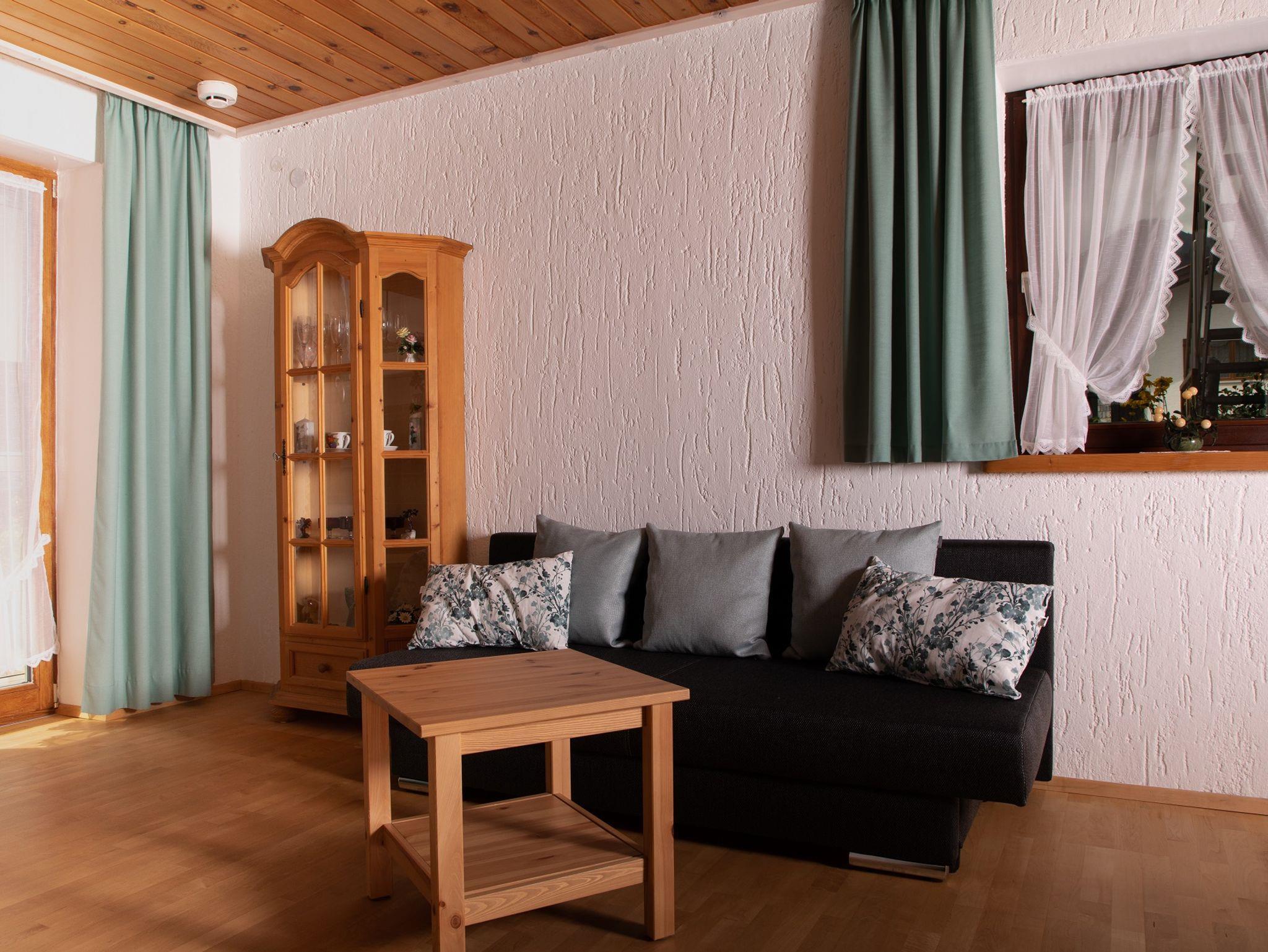 Ruhig gelegene Ferienwohnung, mit großem Wohn-/Schlafraum mit Essecke und Sofa. 3.und 4.Person auf Schlafsofa möglich, separates Schlafzimmer mit Doppelbett, voll ausgestattete Küche mit E-Herd, Spülmaschine, Kühlschrank, Kaffemaschine, Wasserkocher, Mikrowelle und Toaster. Bad mit Wanne (Duschmöglichkeit), WC und Fön. WLAN ist vorhanden. Die schöne Süd Terrasse mit Markise und Gartenmöbeln lädt zum verweilen ein.