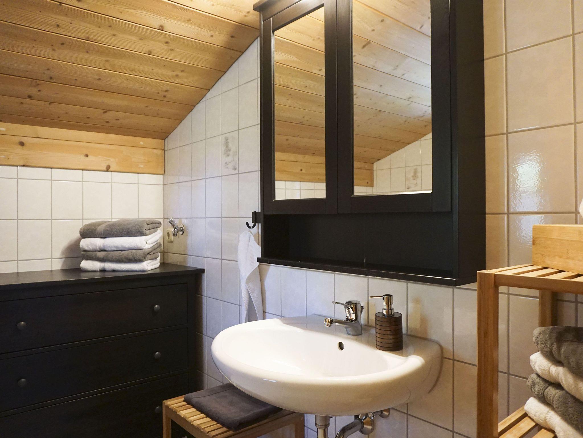Das unter Denkmalschutz gestellte Zuhaus liegt sehr ruhig am Ortsrand mit freiem Blick auf Wiesen und Berge. Die Ferienwohnung befindet sich im 1. Stock und ist mit 2 separaten Schlafzimmern, 2 Balkonen, einer gemütlichen Wohnküche mit Essplatz und Du/WC ausgestattet. 1 Doppelzimmer kann zur FW zugemietet werden. Grillmöglichkeit mit Gartenhäuschen vorhanden.