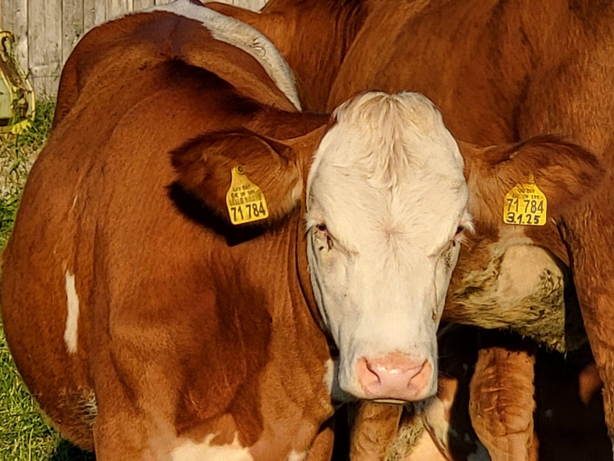Wir haben Mastkälber und Hühner mit einem stolzen Gockel.