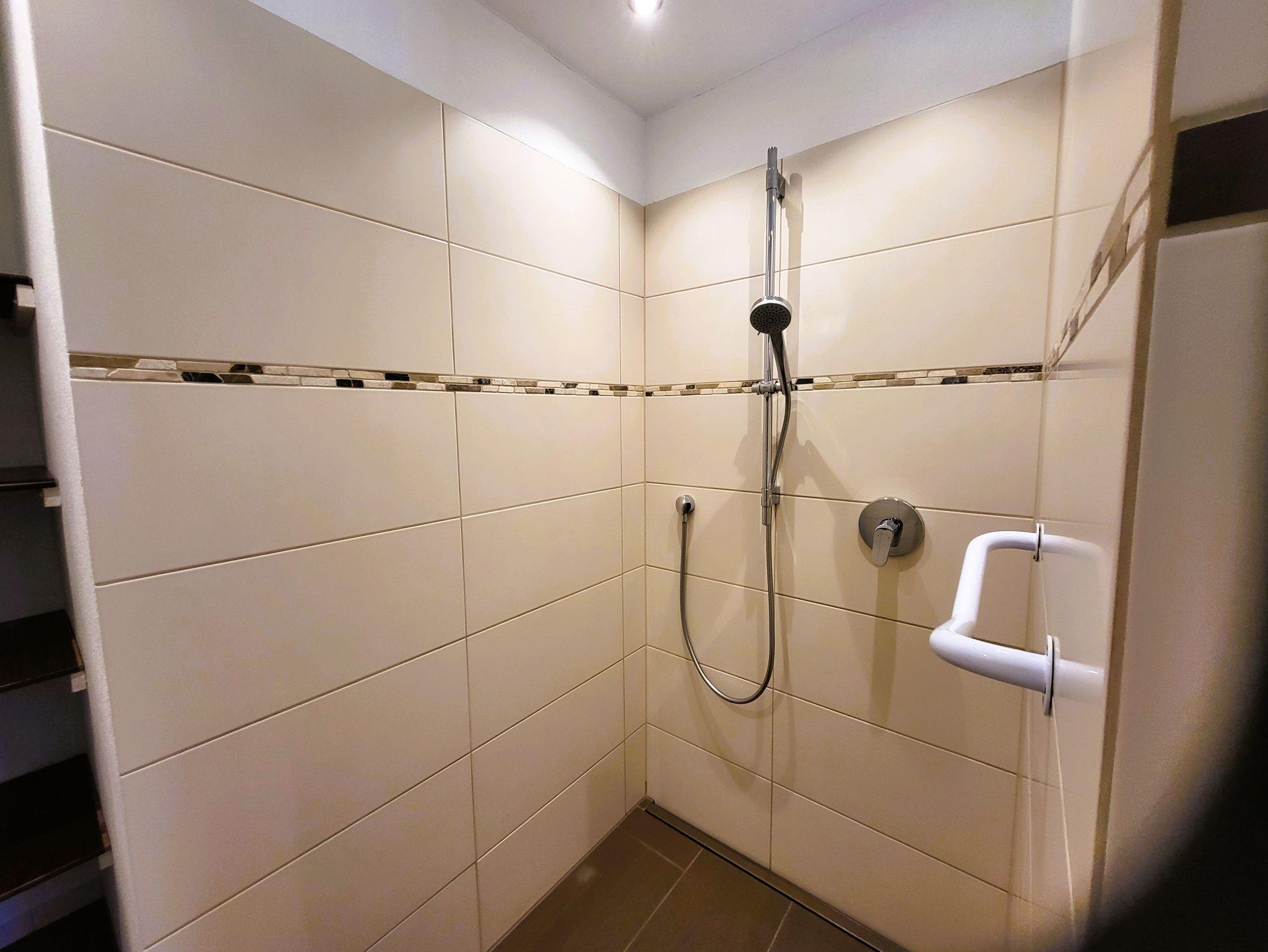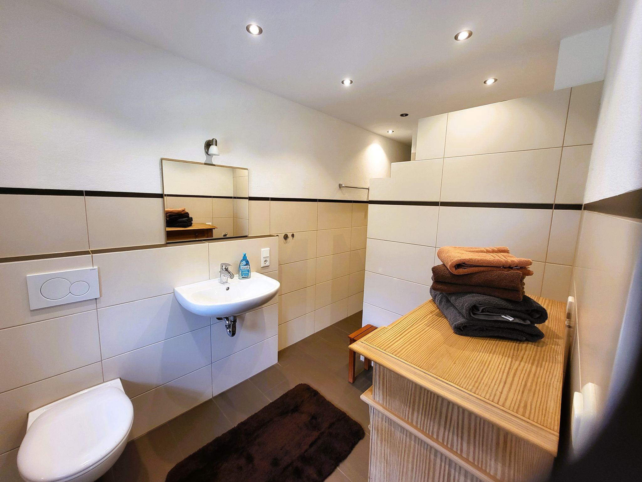 Badezimmer mit begehbarer großzügigen Dusche.