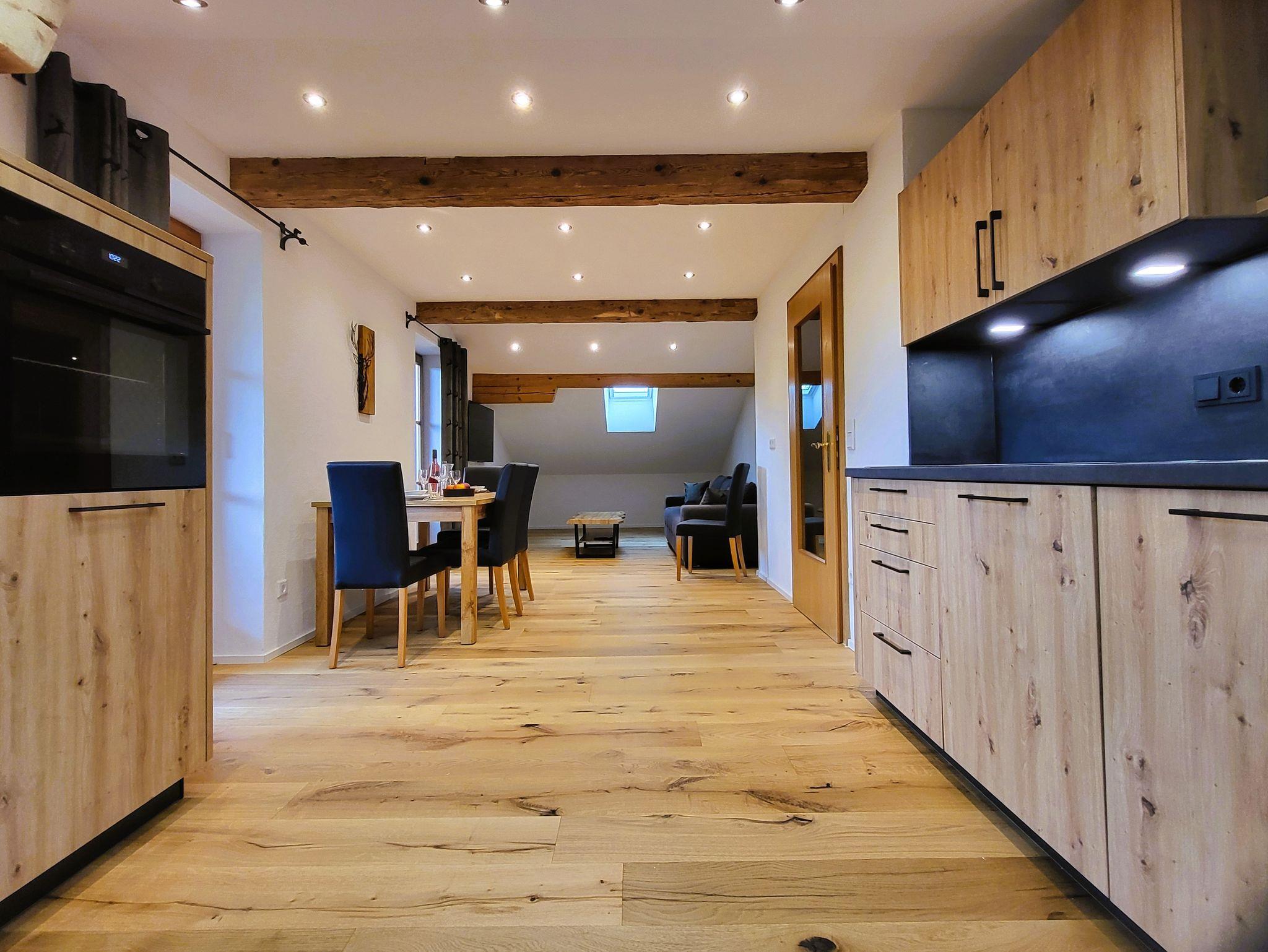 Die Ferienwohnung unter dem Dach ist mit einer großzügigen, gemütlichen Wohnküche im alpenländlichen modernen Stil. Ohne Frühstück!!!