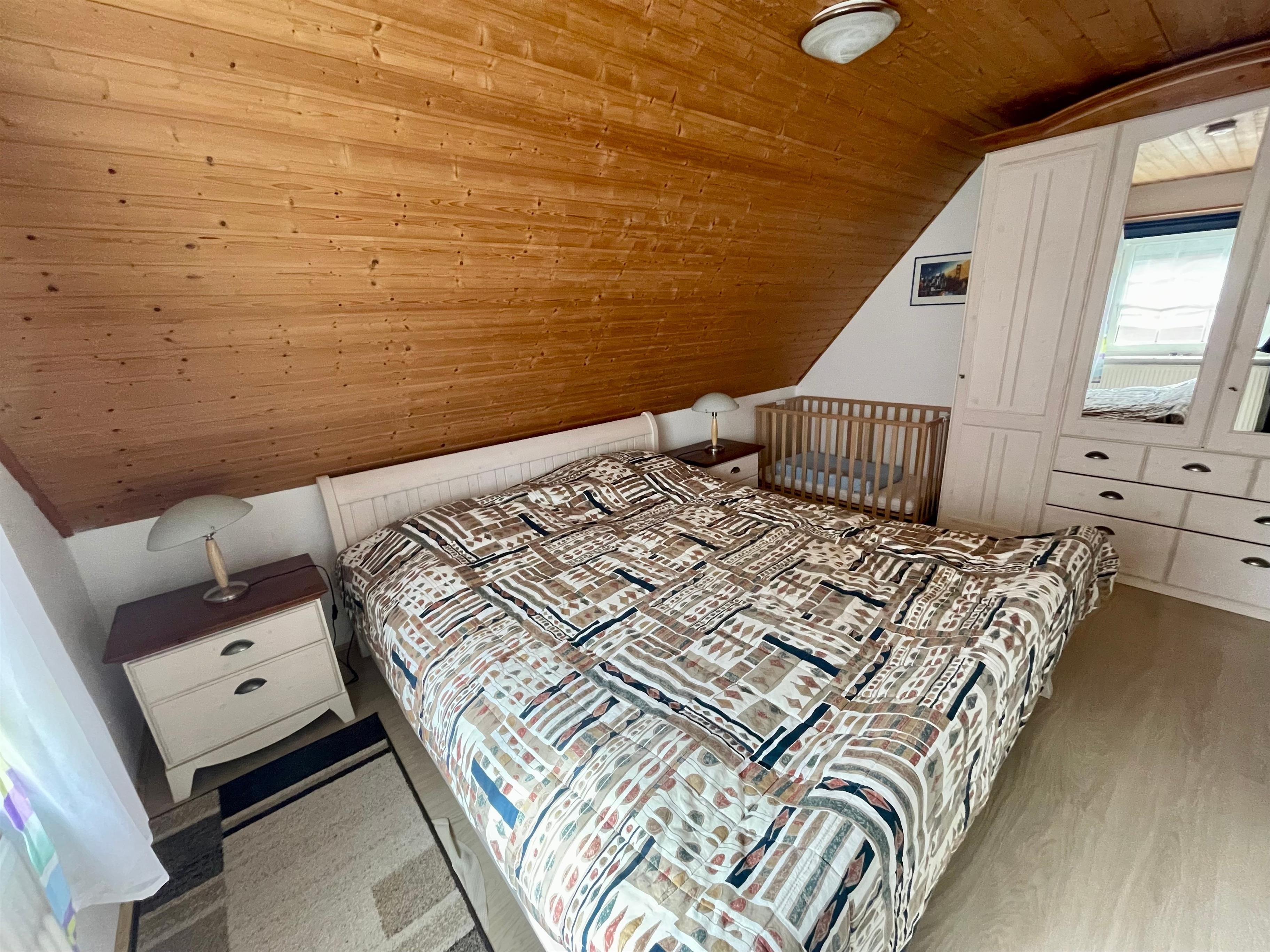 Im DG befindet sich das 3. Schlafzimmer mit einem Doppelbett.