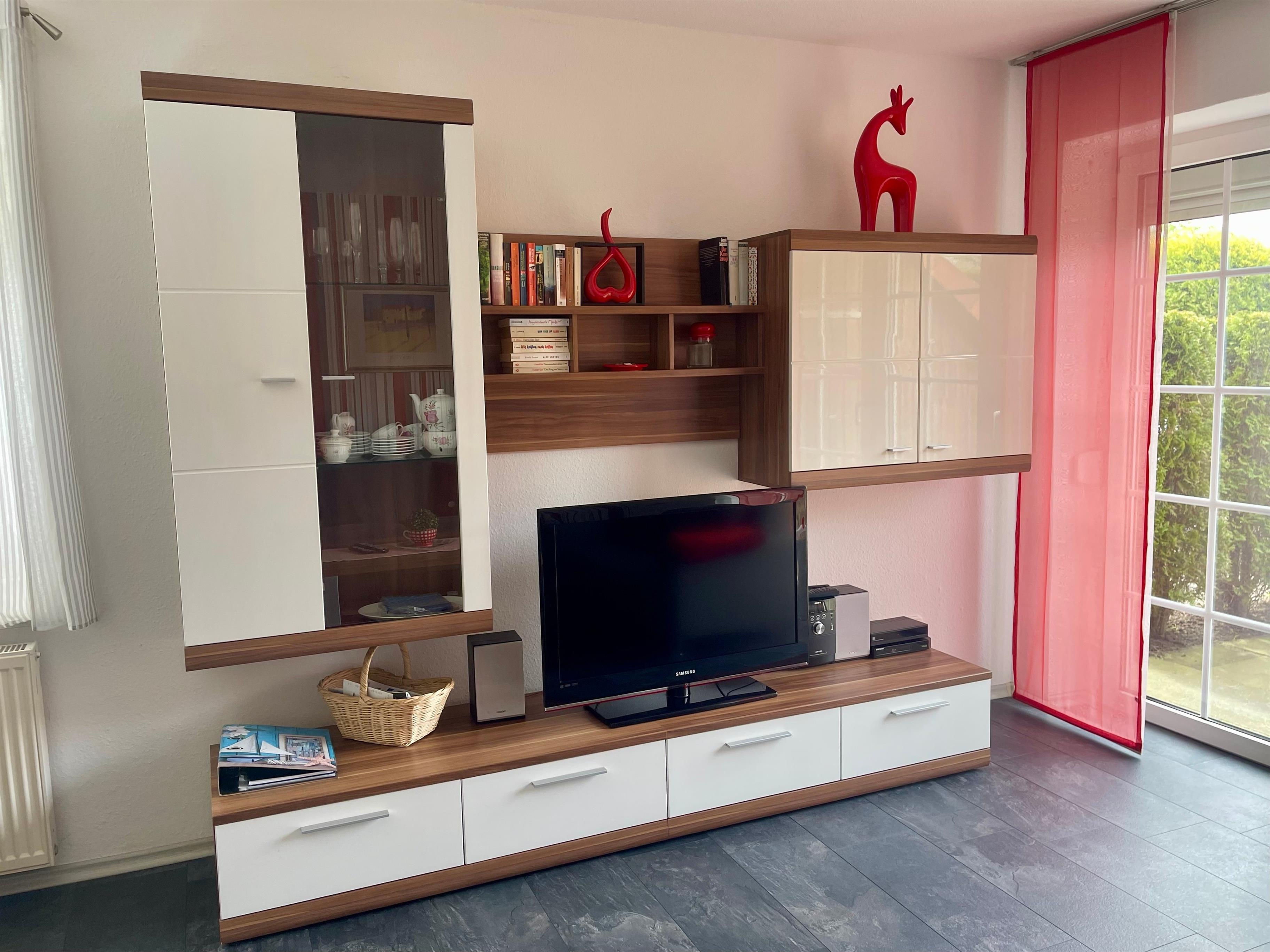 SAT TV, DVD Player, Flachbild TV u. eine Stereoanlage.