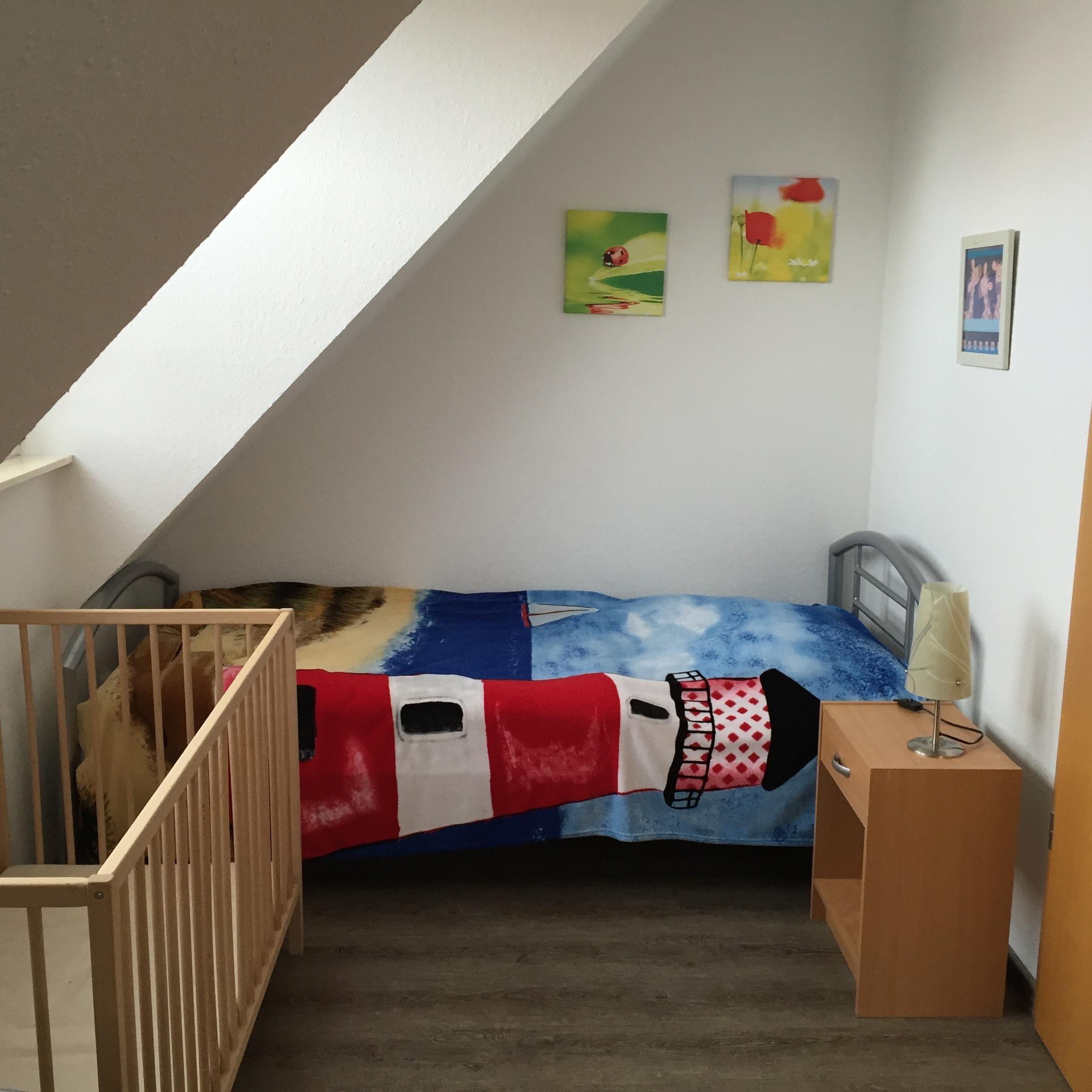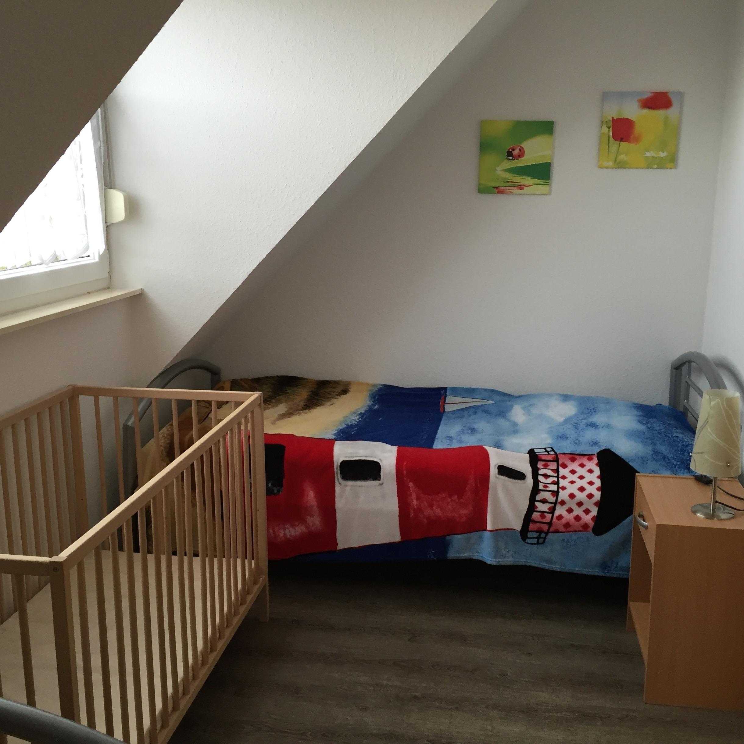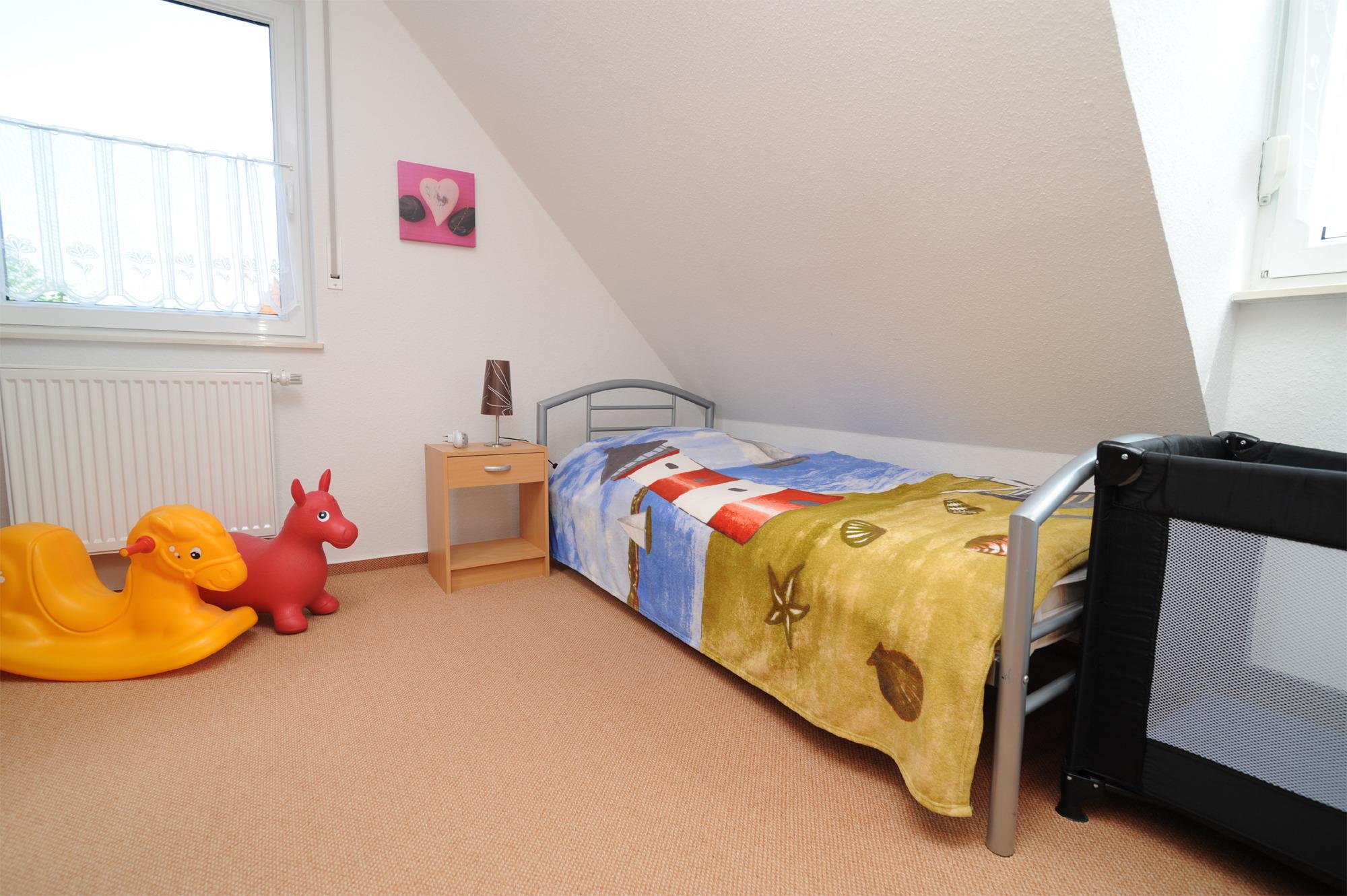 Auch in diesem Haus gibt es eine Kleinkindausstattung mit Kinderbett, Hochstuhl und Spielecke.