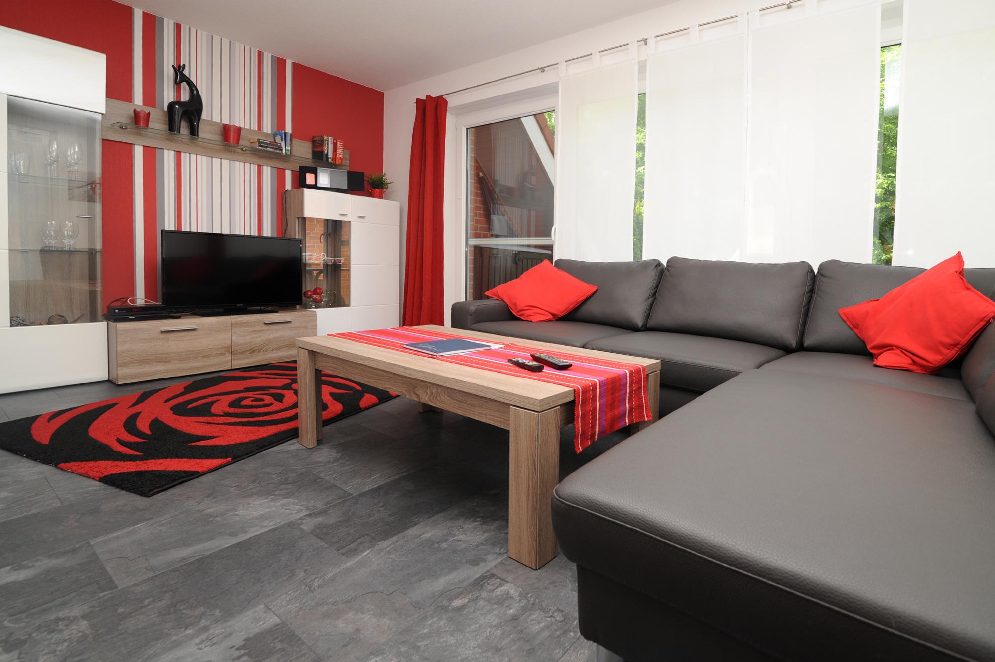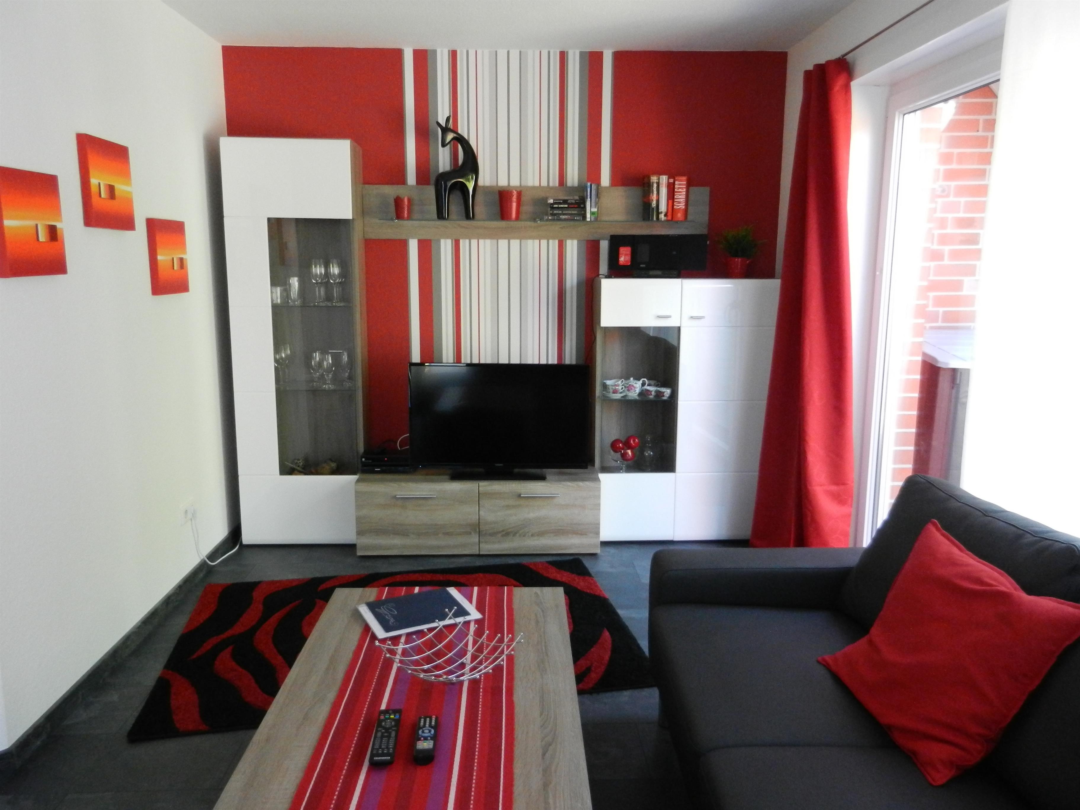 Natürlich stehen hier auch ein großes Fachbild TV, DVD Player und eine Stereoanlage.