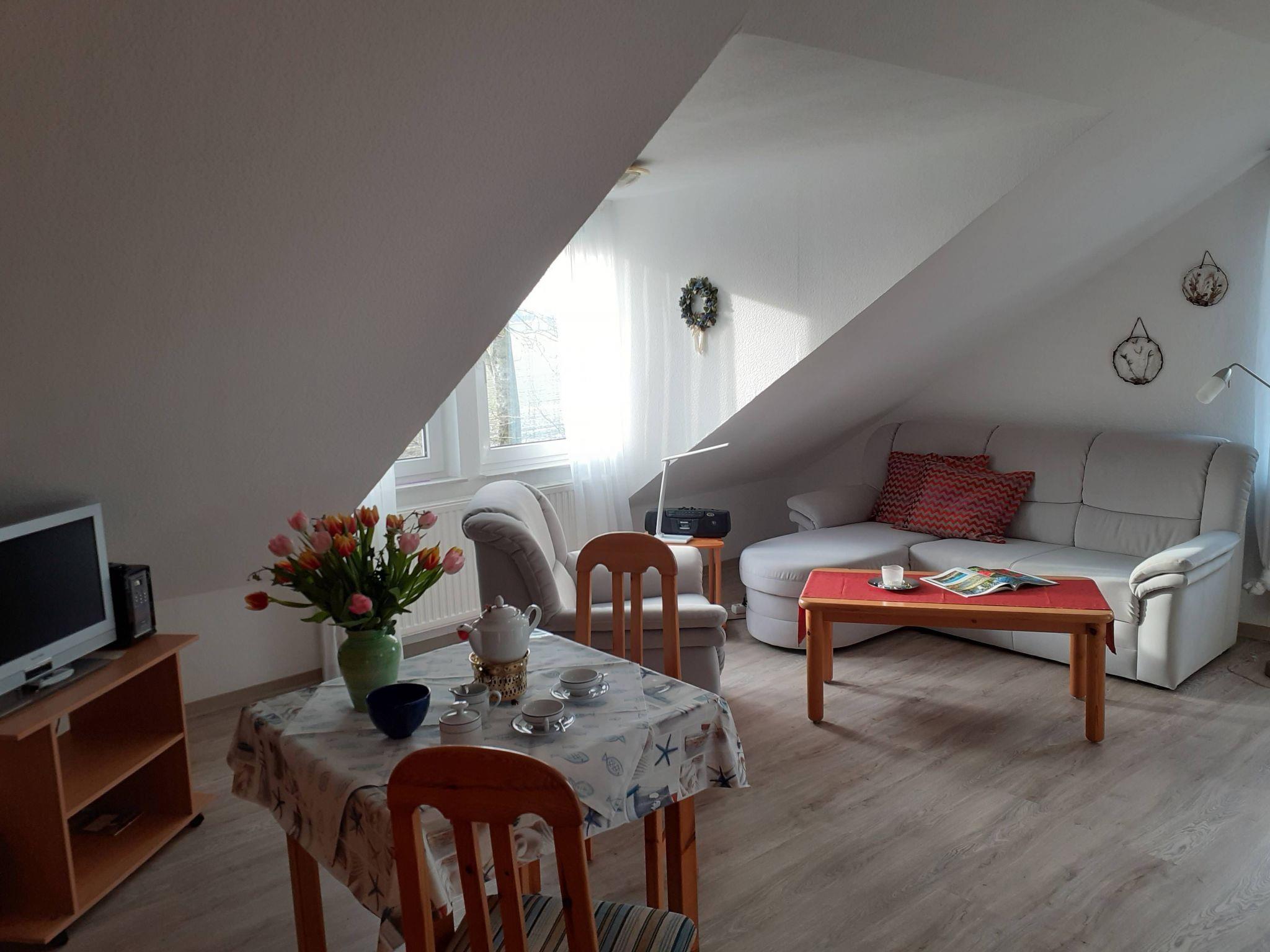 Modern und wohnlich eingerichtet, Waschmaschine im Bad, separater Küchenraum mit Spülmaschine, Mikrowelle, Backofen, wunderschöner Blick über die Landschaft, Terrassen- und Gartenmitbenutzung, kostenloses WLAN, kostenloser Brötchensercive auf Wunsch von April - Ende Oktober. Parkplatz am Haus. Abschließbarer, gemeinschaftlich genutzter Fahrradraum mit Auflademöglich für E - Bikes. Frühstück nach Absprache.
