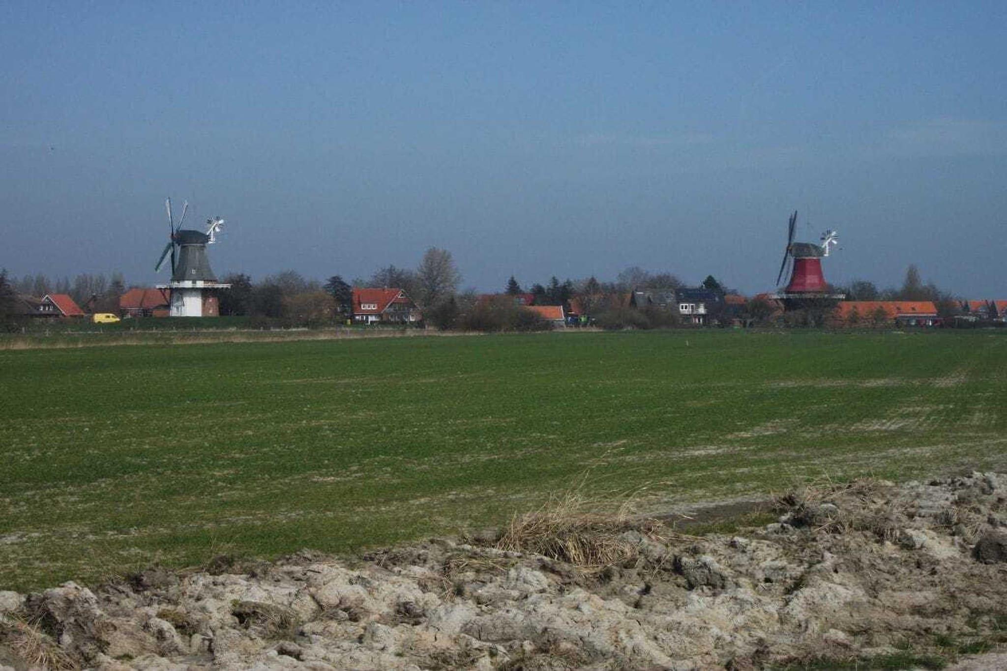 Gemütliche Nordseeferienwohnung Wilma in Greetsiel mit Blick auf Deich und Jachthafen, ideal für entspannte Tage zu zweit.