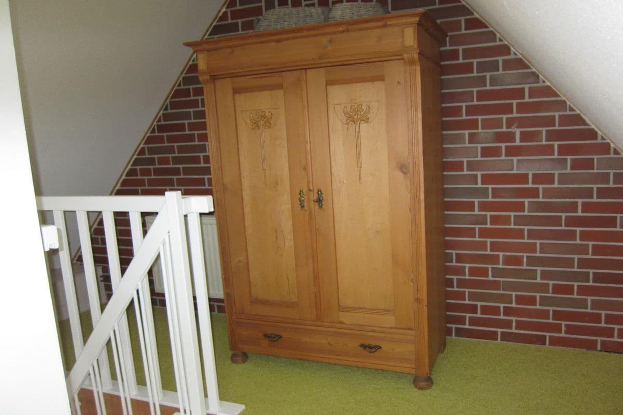 Gemütliche neu renovierte Ferienwohnung mit sep. Eingang und gutläufiger breiter Treppe. Die Ferienwohnung bietet eine geräumige Wohnküche mit behaglichem Kaminofen, großer Einbauküche, massiven Holzmöbeln und einer bequemen Wohnlandschaft. Das 1. Schlafzimmer liegt auf gleicher Ebene und präsentiert sich in trendigen weißen Massivholz. Das Bett bietet Komfortbreite (180x200) und der Kleiderschrank ausreichend Platz für Ihre Urlaubsgarderobe. Das neue moderne Bad ist mit Raindusche (80x120), Waschtisch, WC und Fenster ausgestattet. Die weitläufige Mansarde beherbergt ein weiteres gemütliches Schlafzimmer mit großem Doppelbett (180x200), Schreibtisch und Kleiderschrank. Zur Ferienwohnung gehört ein Gartentisch mit 4 Stühlen für sonnige erholsame Stunden.