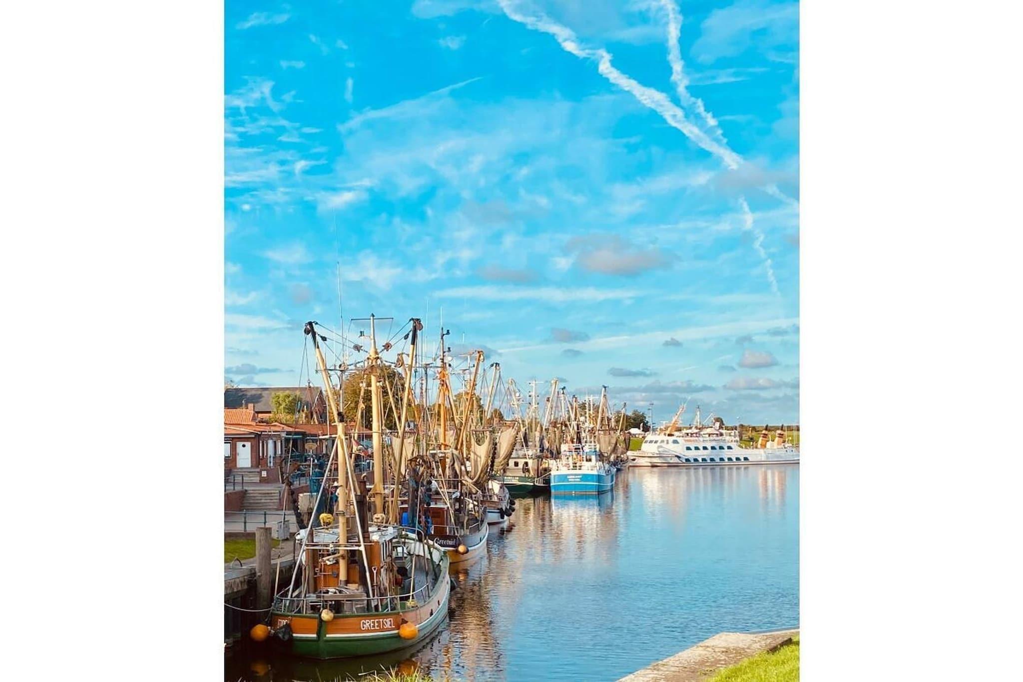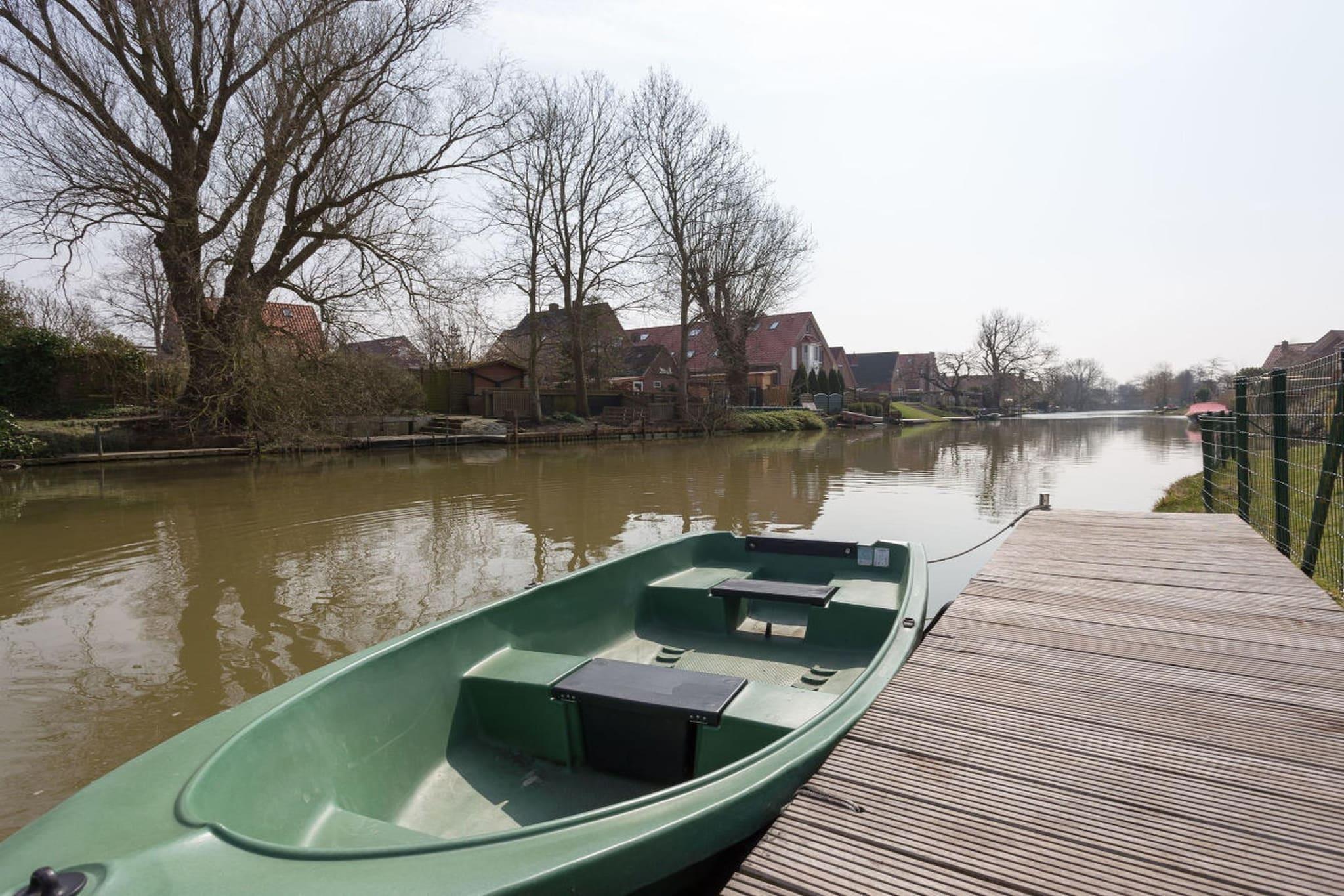 Großzügige Ferienwohnung in Greetsiel mit Terrasse am Kanal und kostenfreiem Ruderboot für entspannte Urlaubstage.