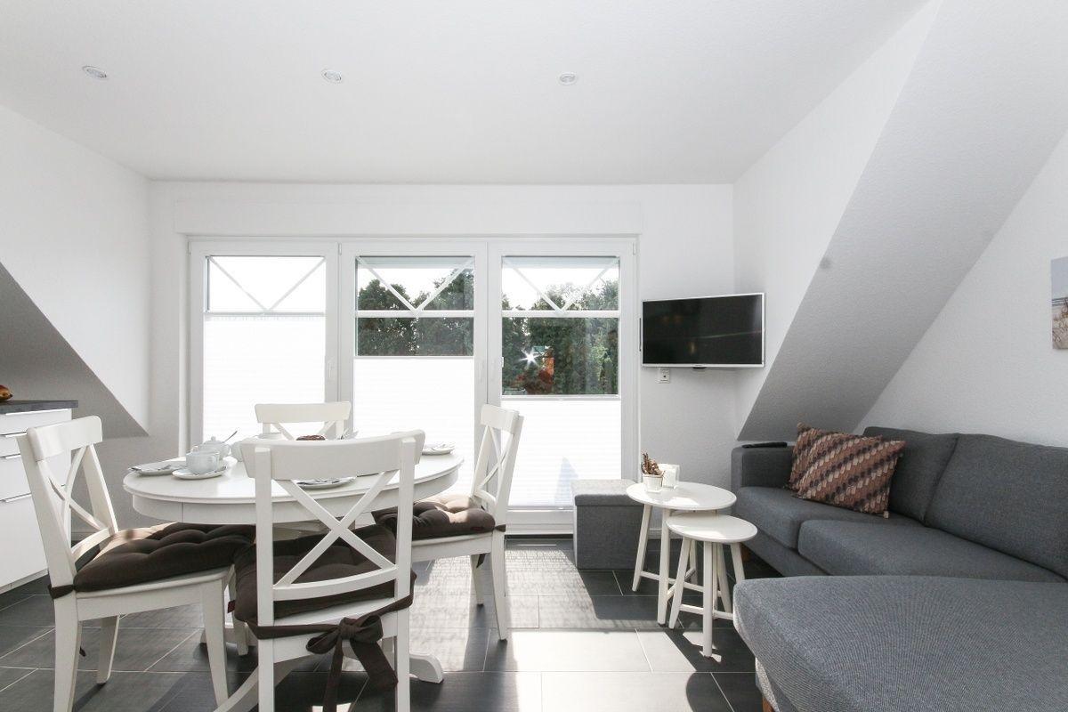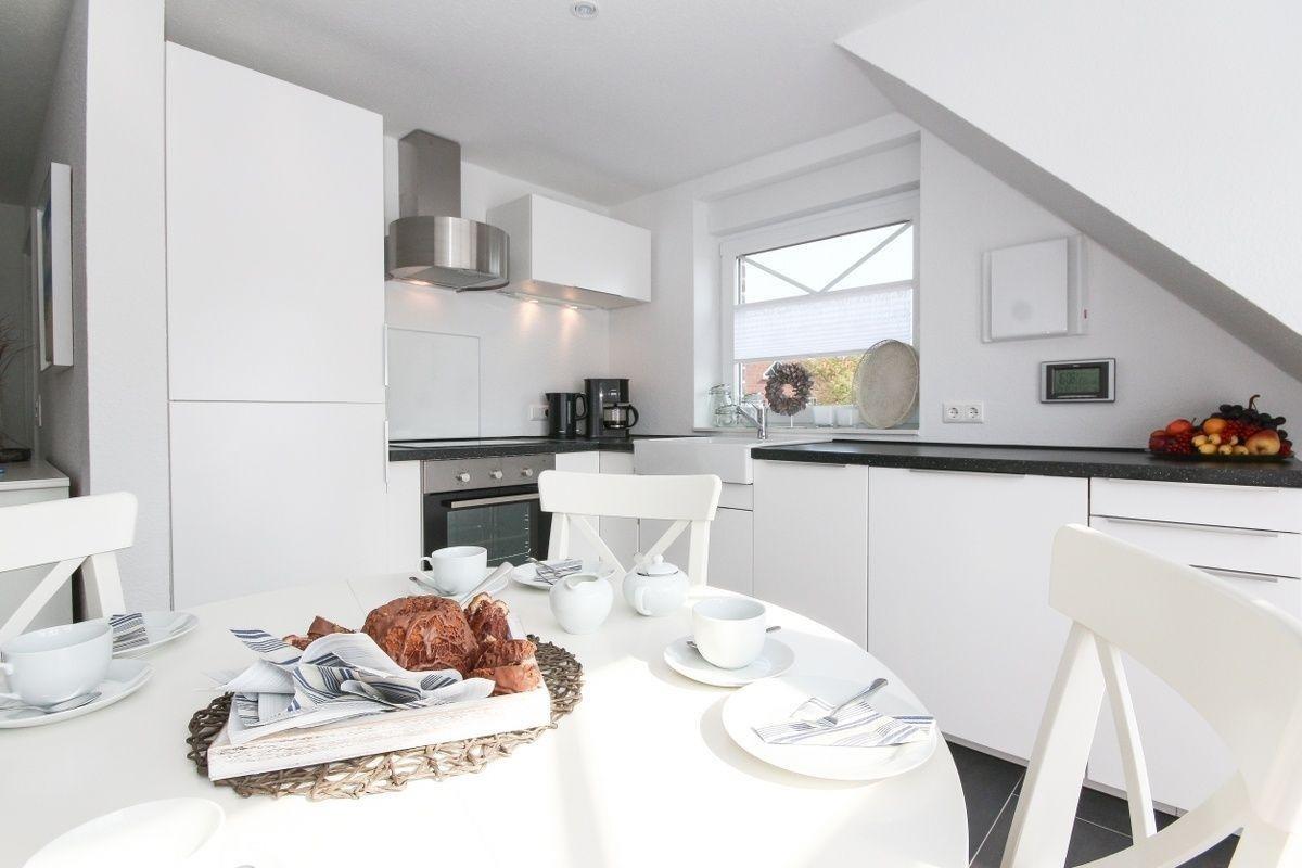 Die komfortabel eingerichtete Ferienwohnung Adams Kajüte erstreckt sich über zwei Ebenen (1.OG und DG) und bietet mit zwei separaten Schlafzimmern ausreichend Platz für einen erholsamen Urlaub an der Nordsee. Im Wohn- und Essraum befindet sich eine Küchenzeile, die alle benötigten Dinge beherbergt.