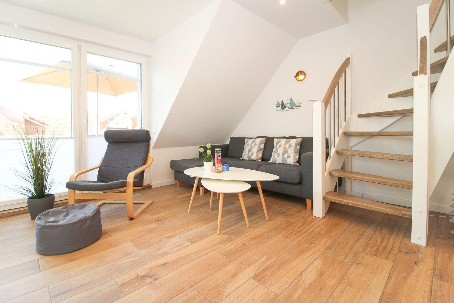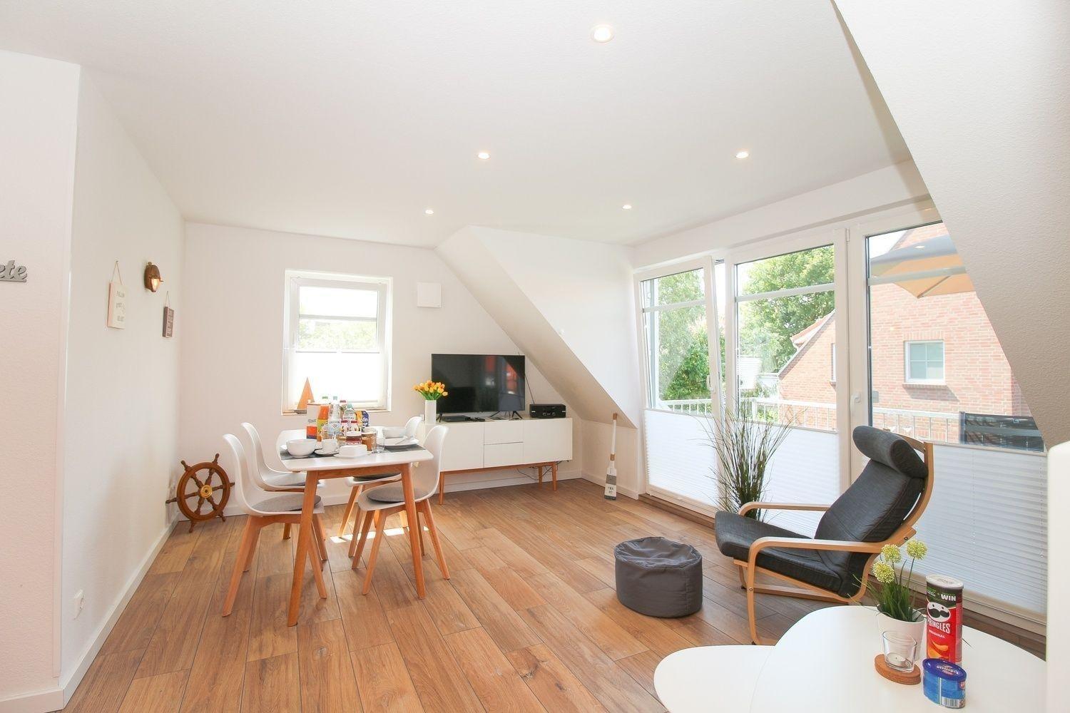 Moderne Ferienwohnung in Greetsiel mit Balkon, Garten und Fußbodenheizung für erholsame Tage.