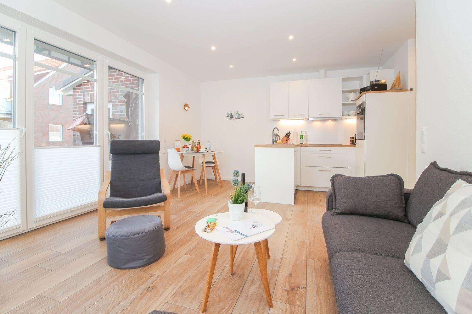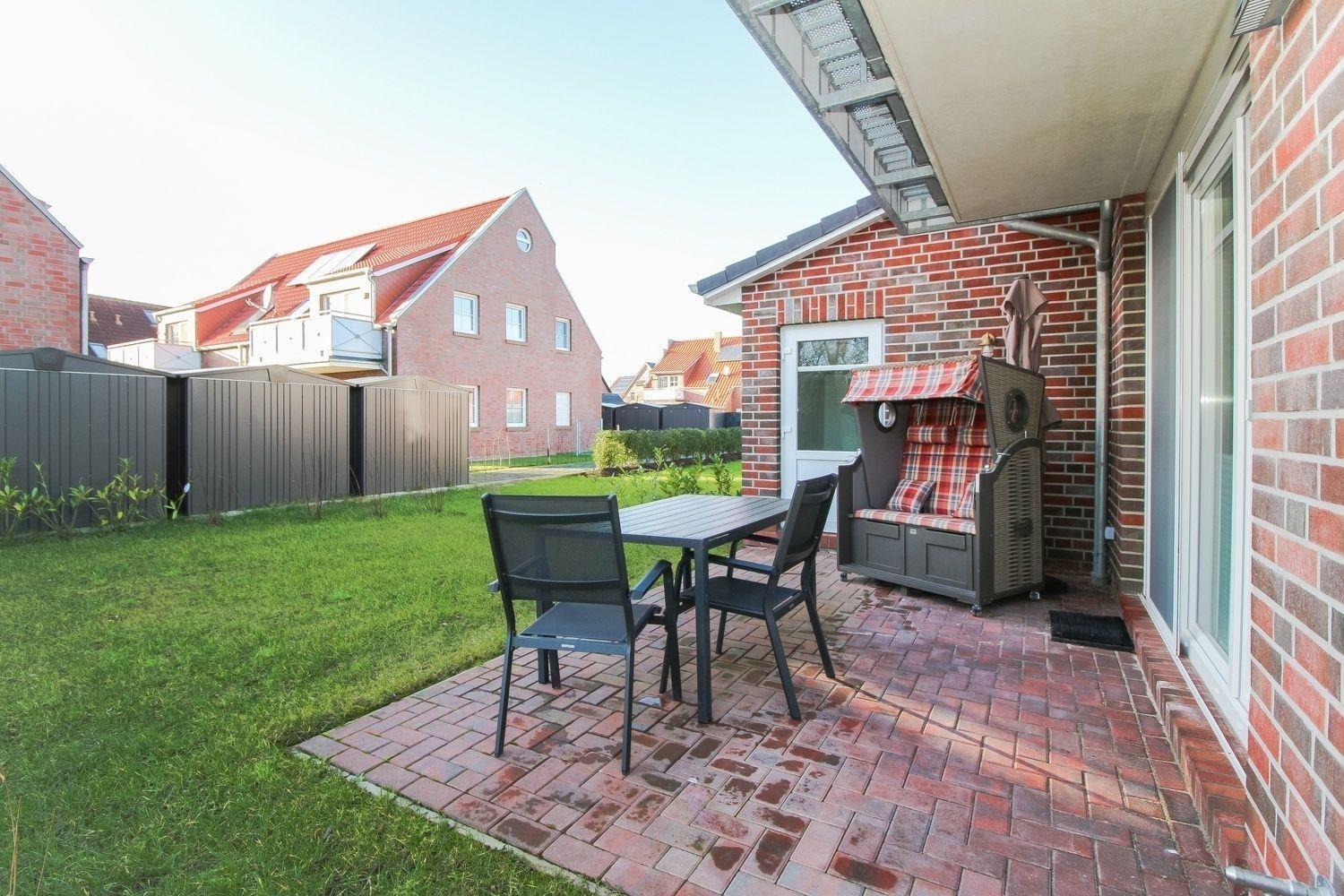 Komfortable Neubau-Ferienwohnung mit Garten und Terrasse in Greetsiel, ideal für 2 Personen, nur 600 m vom Hafen entfernt.