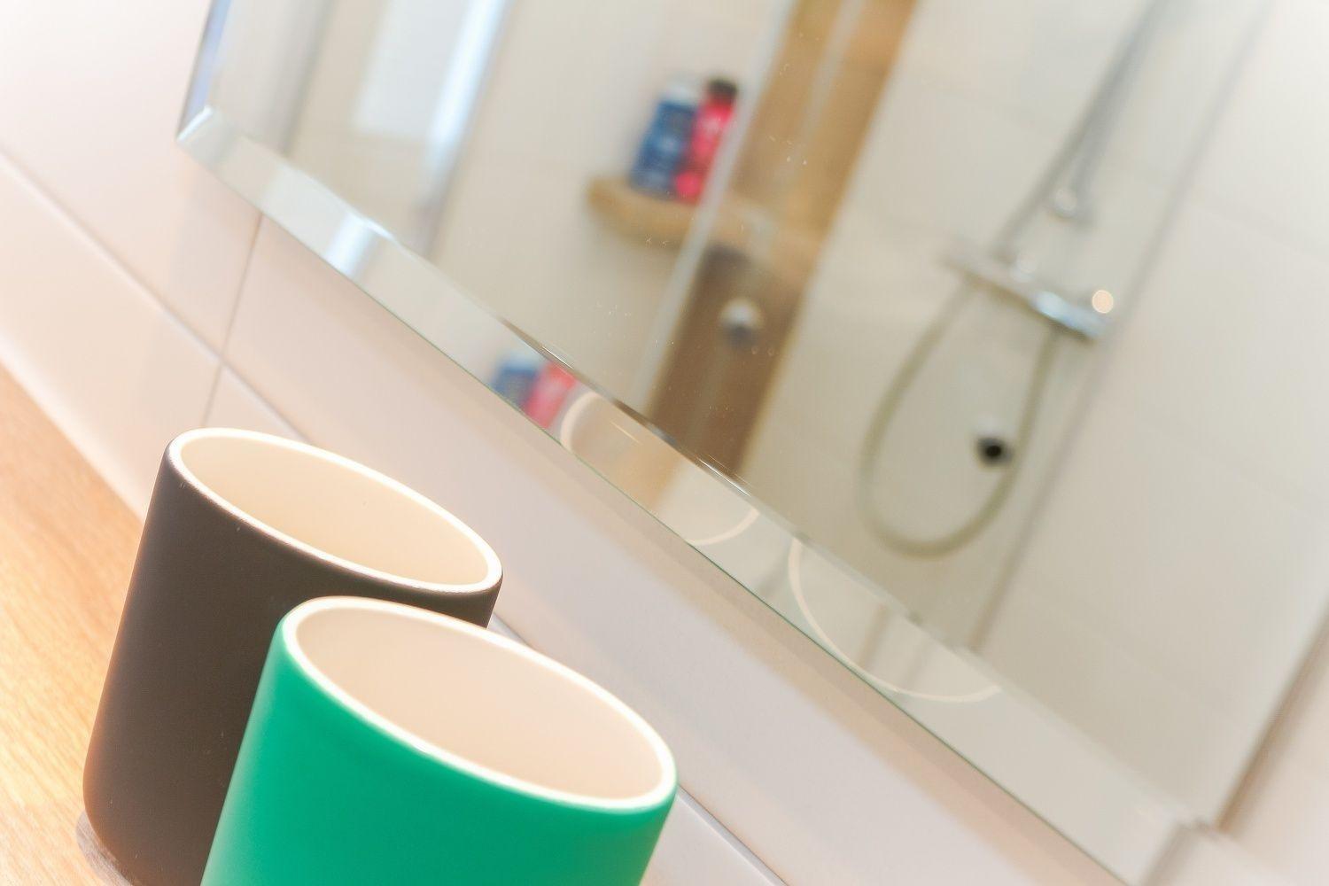 Im Bad befinden sich eine sehr große, bodentiefe Dusche, WC und Waschtisch mit Unterschrank - alles ist vorhanden. Der Handtuchwärmer schenkt an kalten Tagen warme Handtücher.