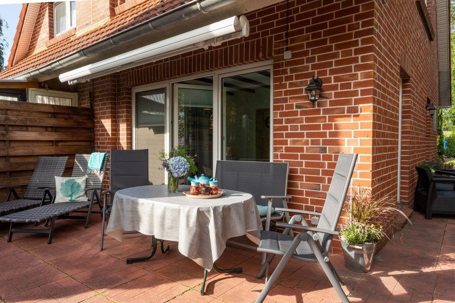 Modernes Domizil in Greetsiel mit Hafenblick, Terrasse und Wellnessbad für entspannte Tage zu zweit.