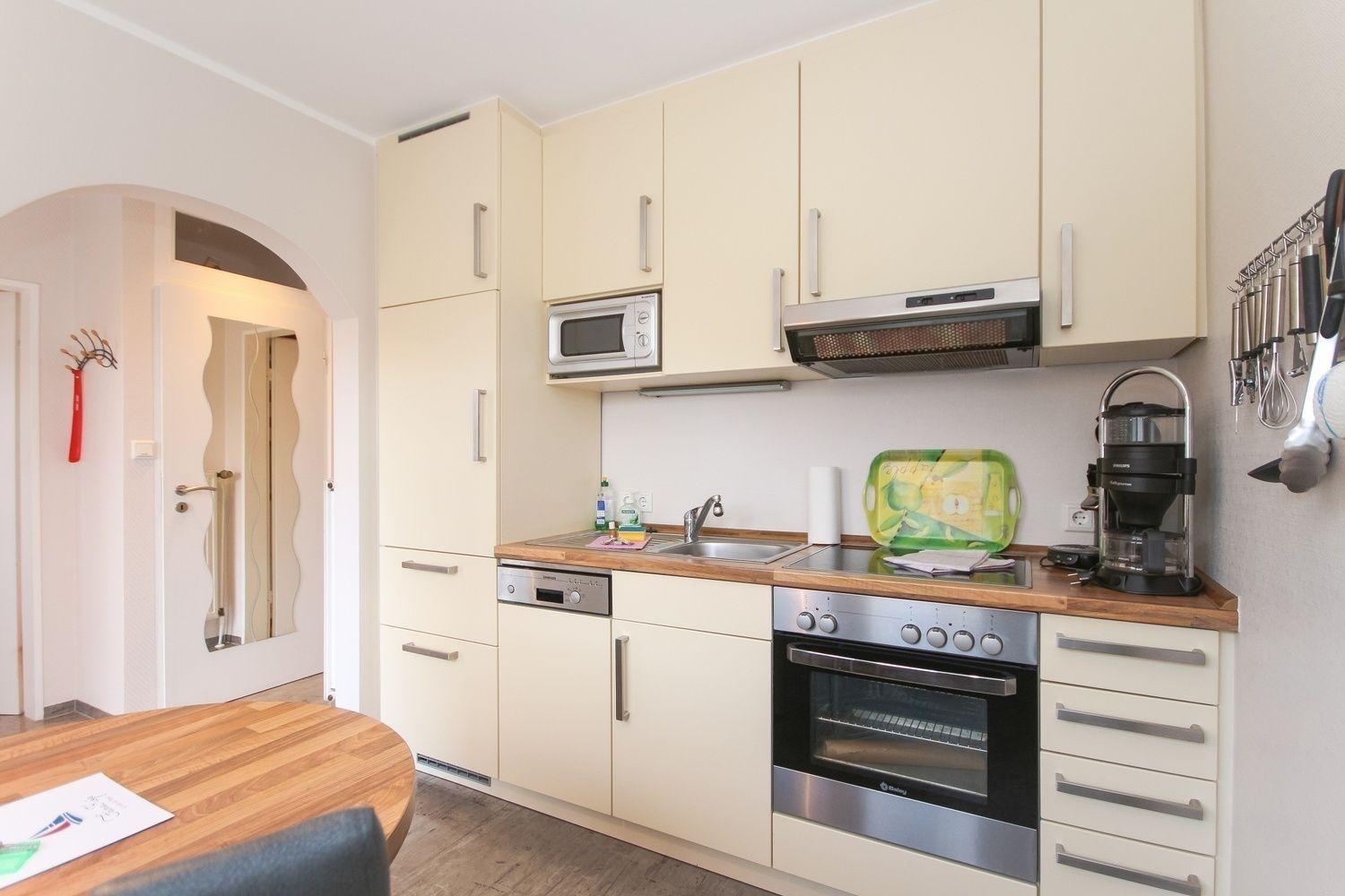 Eine Erstausstattung (Spülmaschinentab, WC-Papier, kl. Flasche Spülmittel, Spültuch und Topfschwamm) ist vorhanden.
