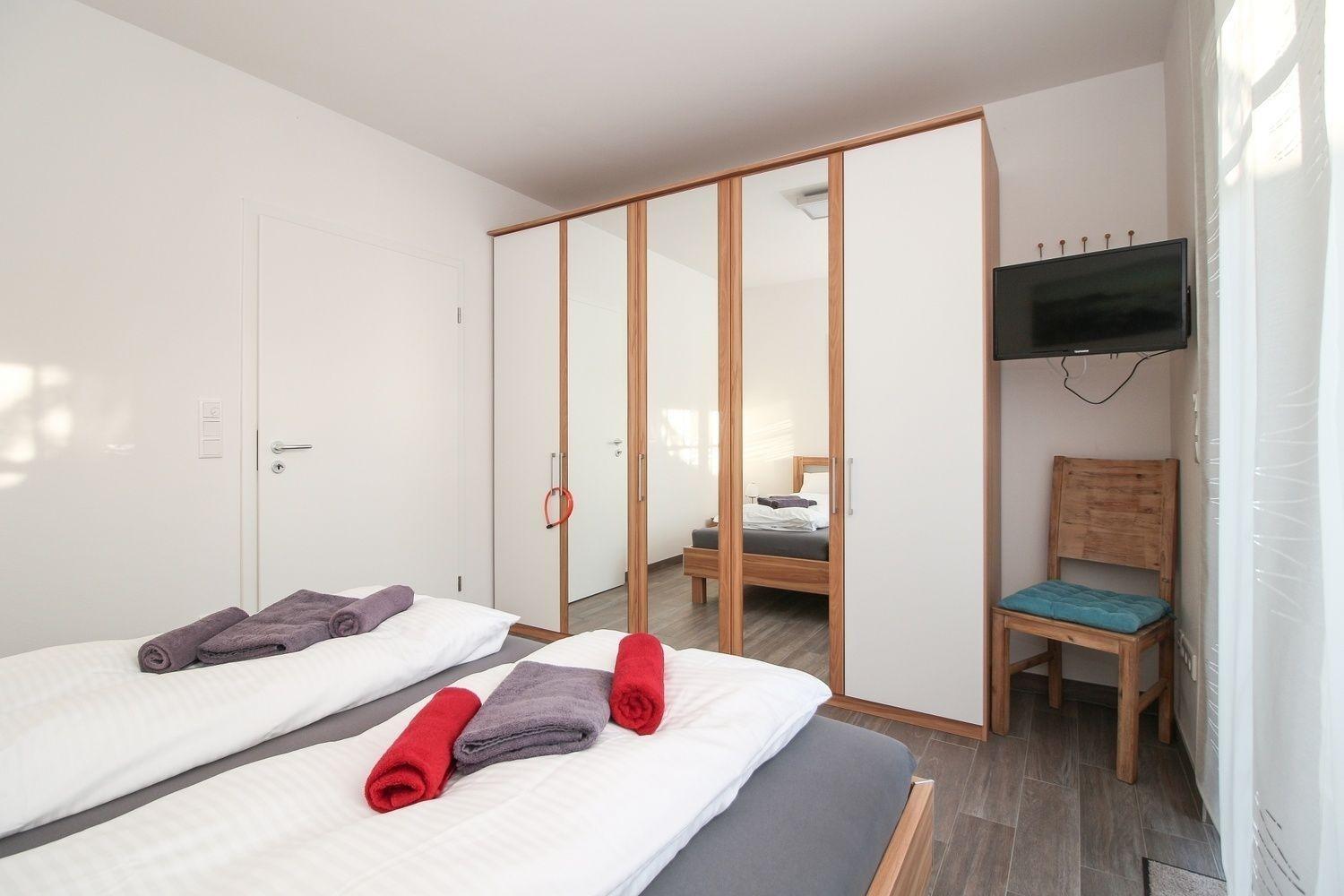 Sowohl im Wohn- als auch im Schlafzimmer befindet sich ein TV-Gerät.