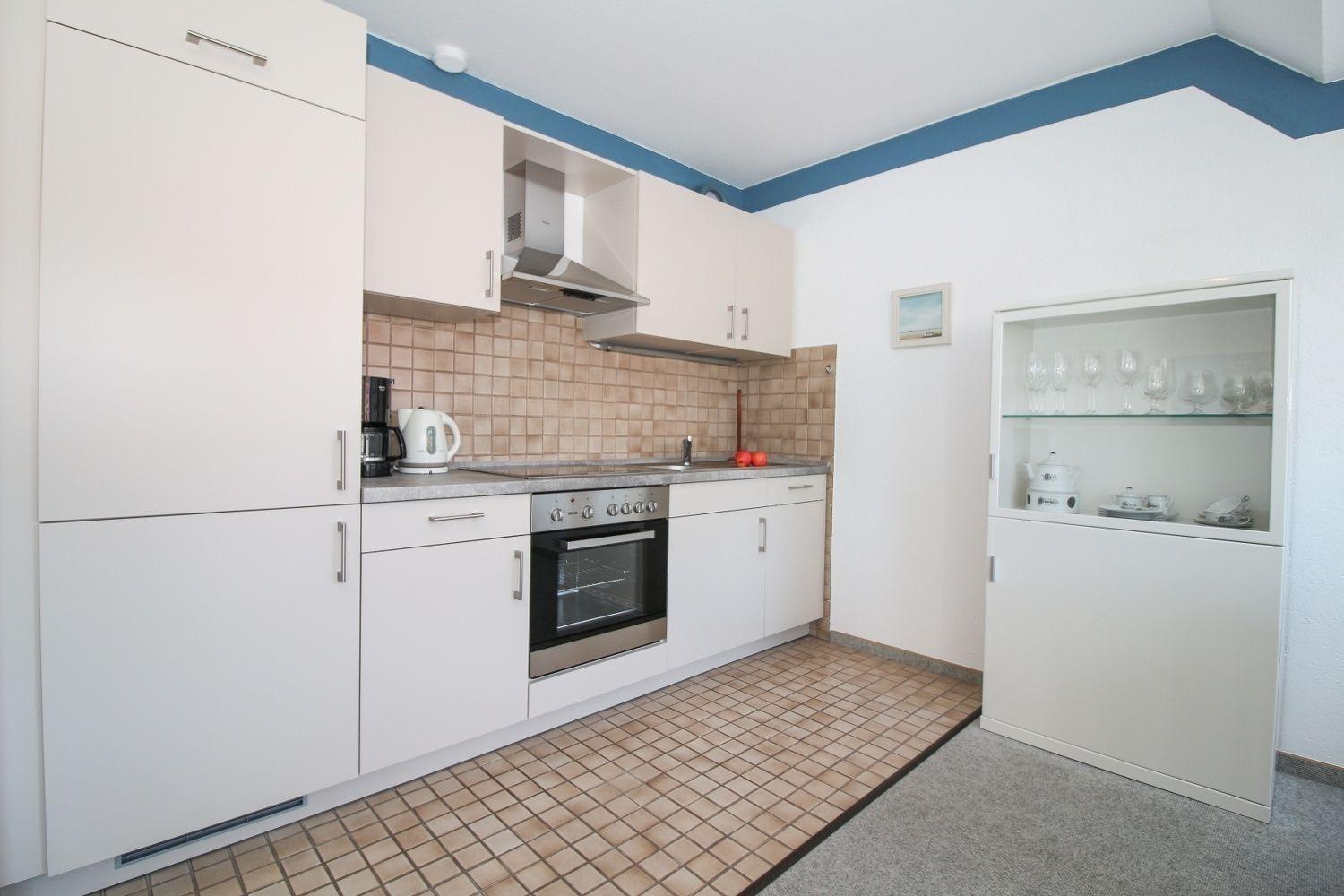 Im Wohn-/Essbereich befindet sich eine gut ausgestattete Küchenzeile. Im Schlafzimmer steht ein Doppelbett. Im zweiten Schlafzimmer sind zwei Einzelbetten vorhanden. Der Abstellraum im Flur bietet Platz für Ihre Koffer o.ä.. Die gesamte Ferienwohnung ist, bis auf das geflieste Badezimmer, mit Teppich ausgelegt.
