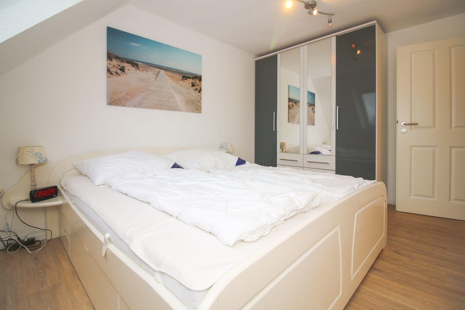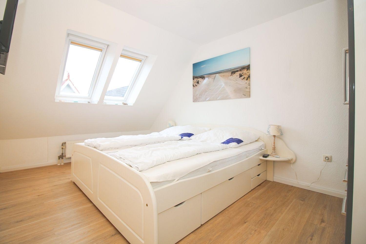 Sie besteht aus einem gemütlichen Wohn-Essbereich, einem Schlafzimmer mit Doppelbett im Obergeschoss, einem geräumigen Schlafzimmer mit zwei Einzelbetten im Dachgeschoss sowie einem Bad mit Dusche und WC und einem Aufgangsbereich zum Dachgeschoss.