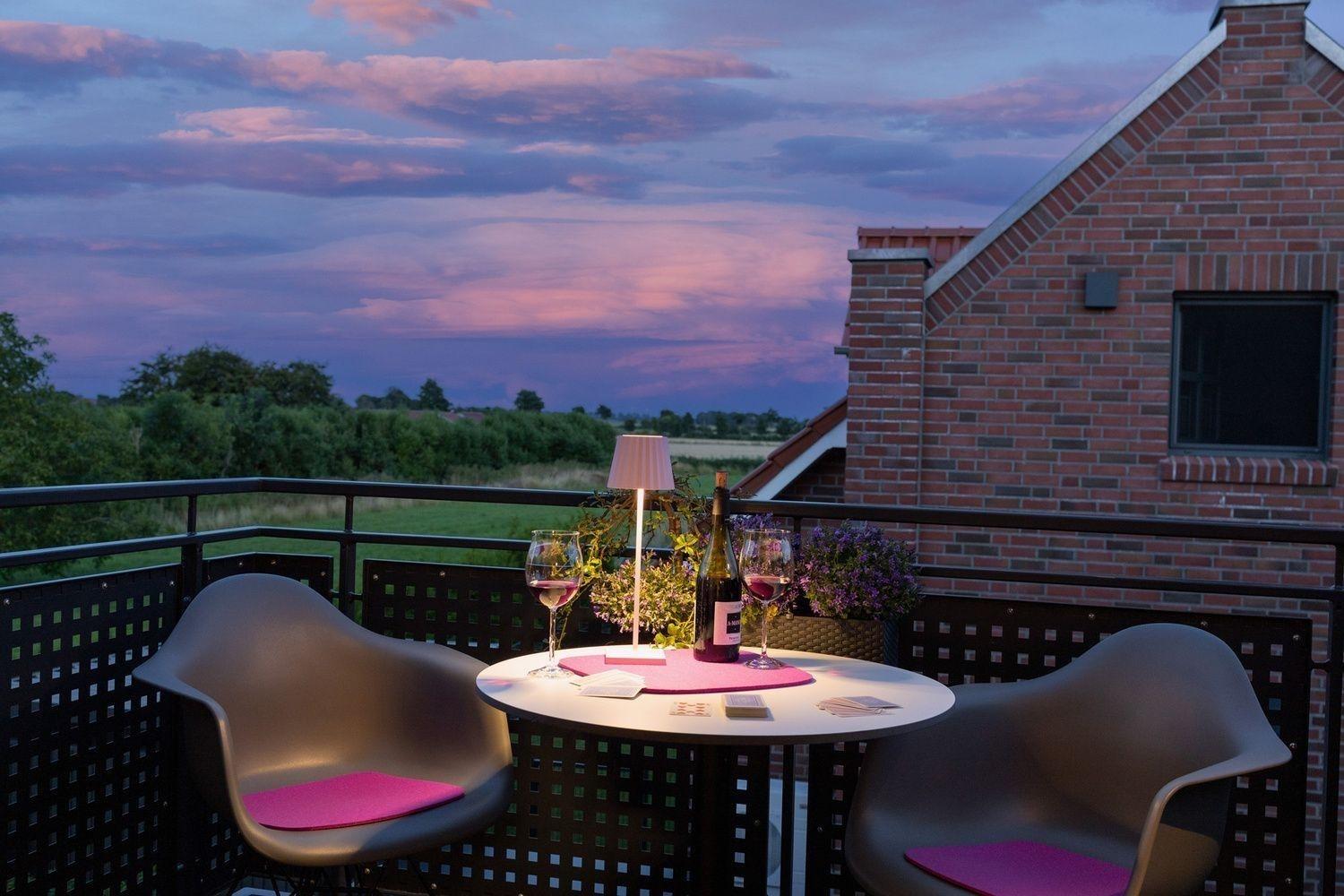 Exklusive Neubau-Ferienwohnung in Greetsiel mit Designerbad und Balkon, perfekt für einen erholsamen Urlaub zu zweit.