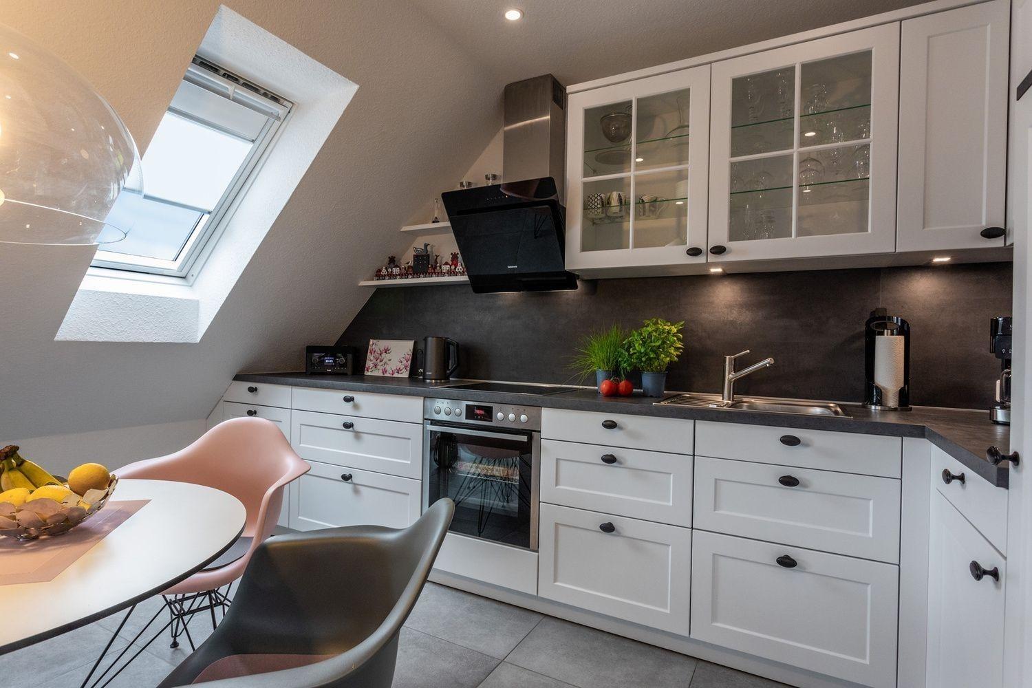 Ein offener, lichtdurchfluteter Wohn-/Essbereich mit vollständig ausgestatteter integrierter Küche führt über eine große Fensterfront auf den Balkon mit Gartenmöbeln und elektrischer Markise. Zur Unterhaltung steht ein Samsung Fernseher 55 Zoll, ein Blu-ray Disc Player und ein Teufel Premium-Digitalradio mit 1000 plus Radiosendern zur Verfügung.