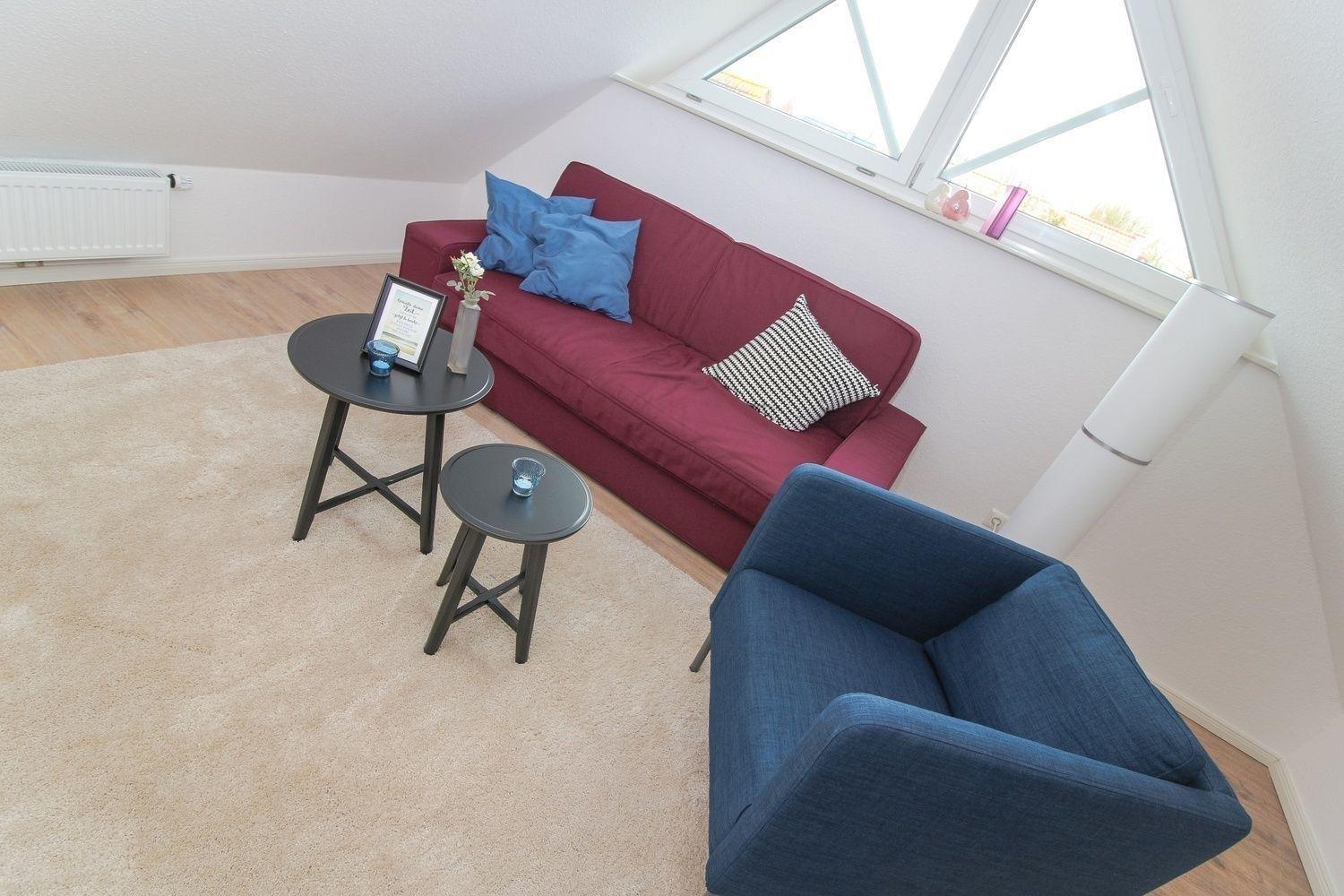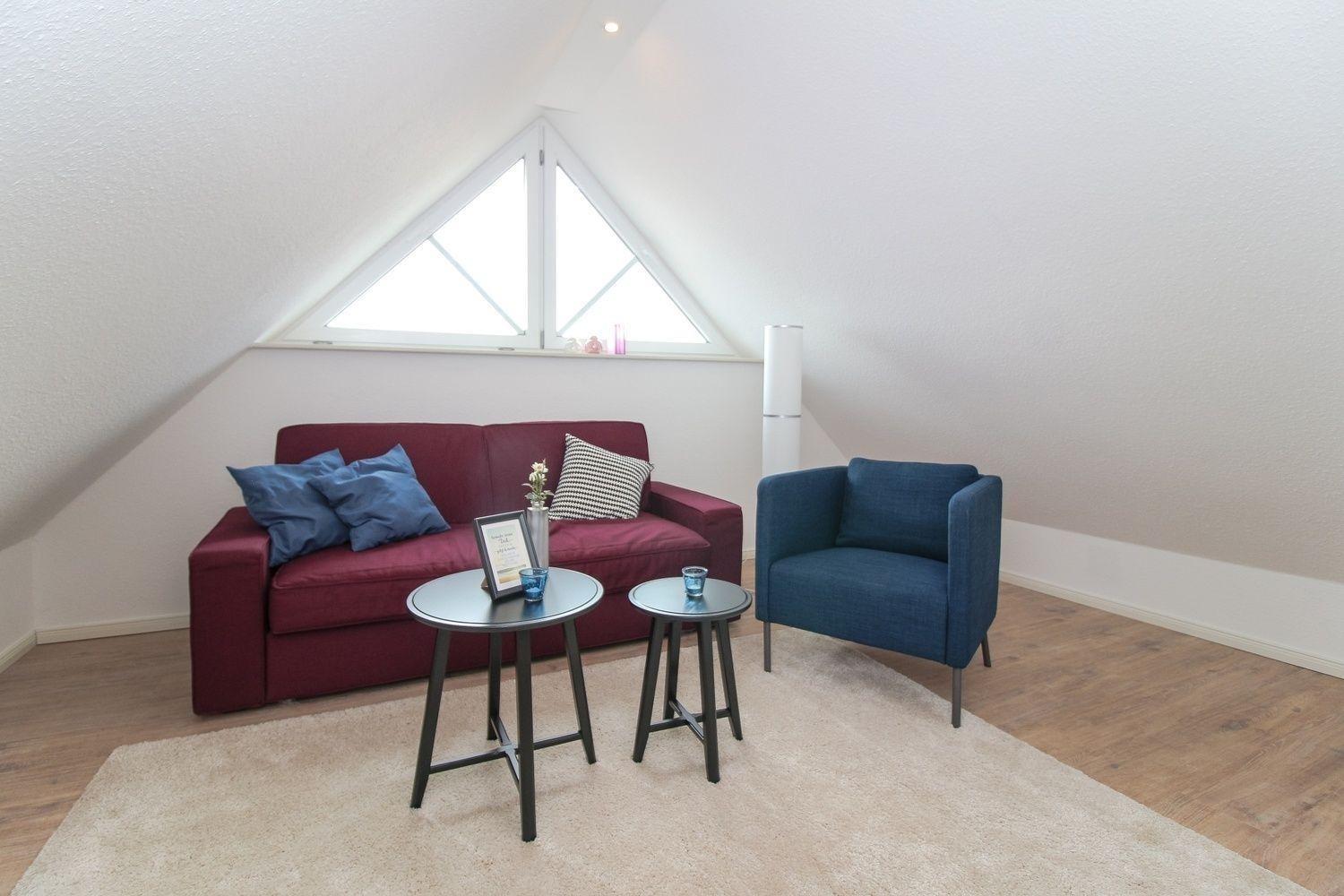 Im Dachgeschoss befindet sich ein weiterer Wohnraum inkl. TV-Gerät als Rückzugsmöglichkeit. Hier können Sie einfach mal Ihre Seele baumeln lassen.