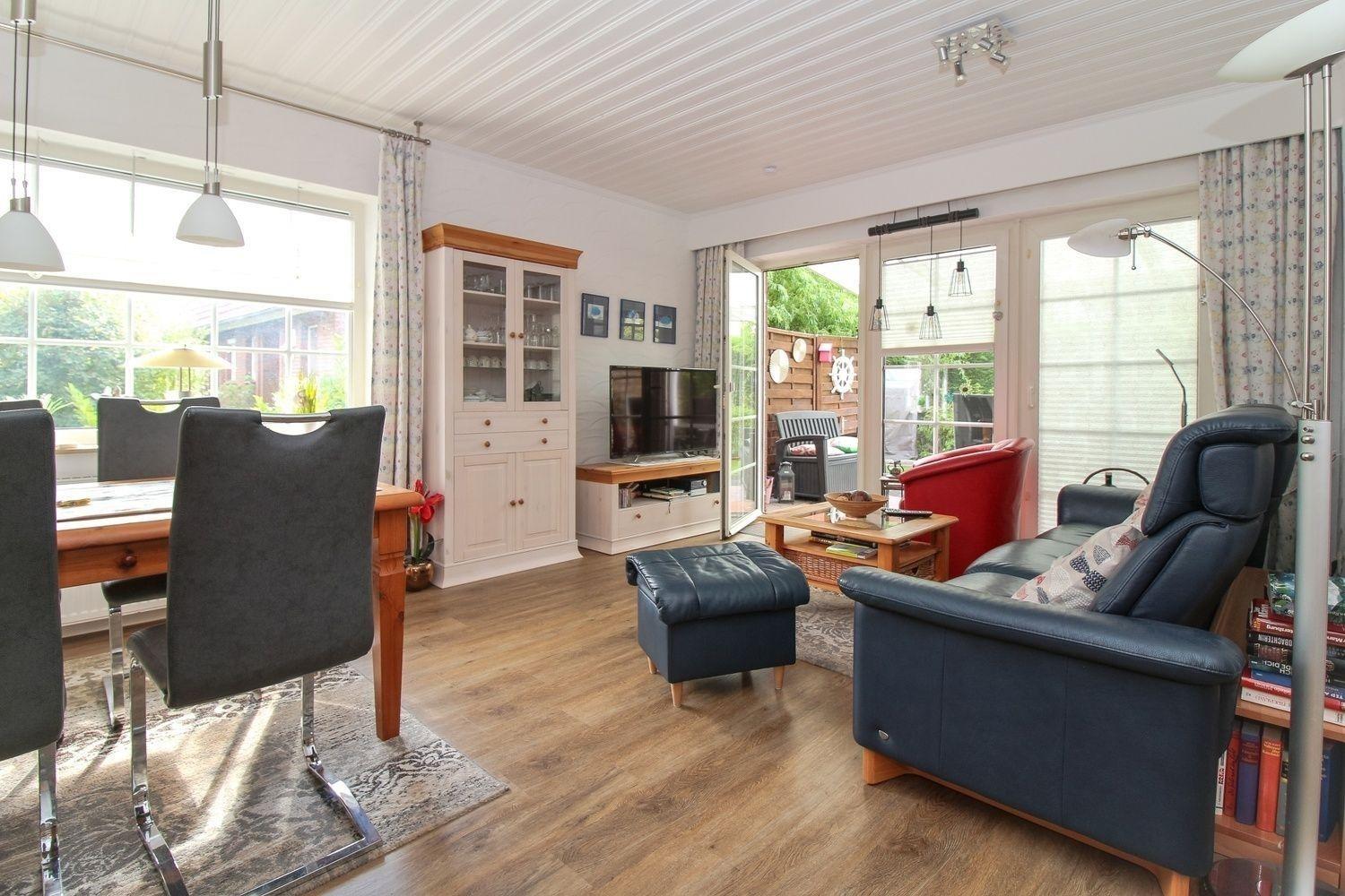 Gemütliche Ferienwohnung im Erdgeschoss in Greetsiel mit Terrasse, Garten und moderner Ausstattung für erholsame Tage.