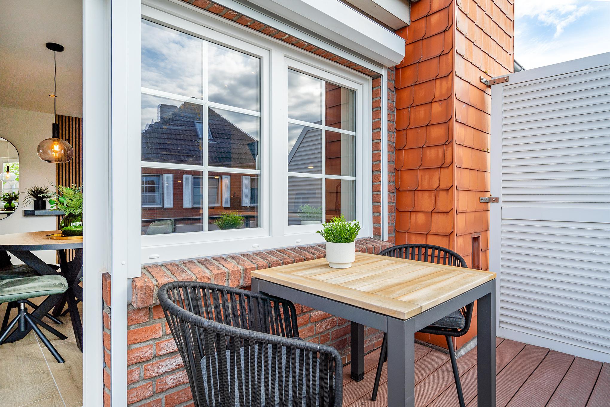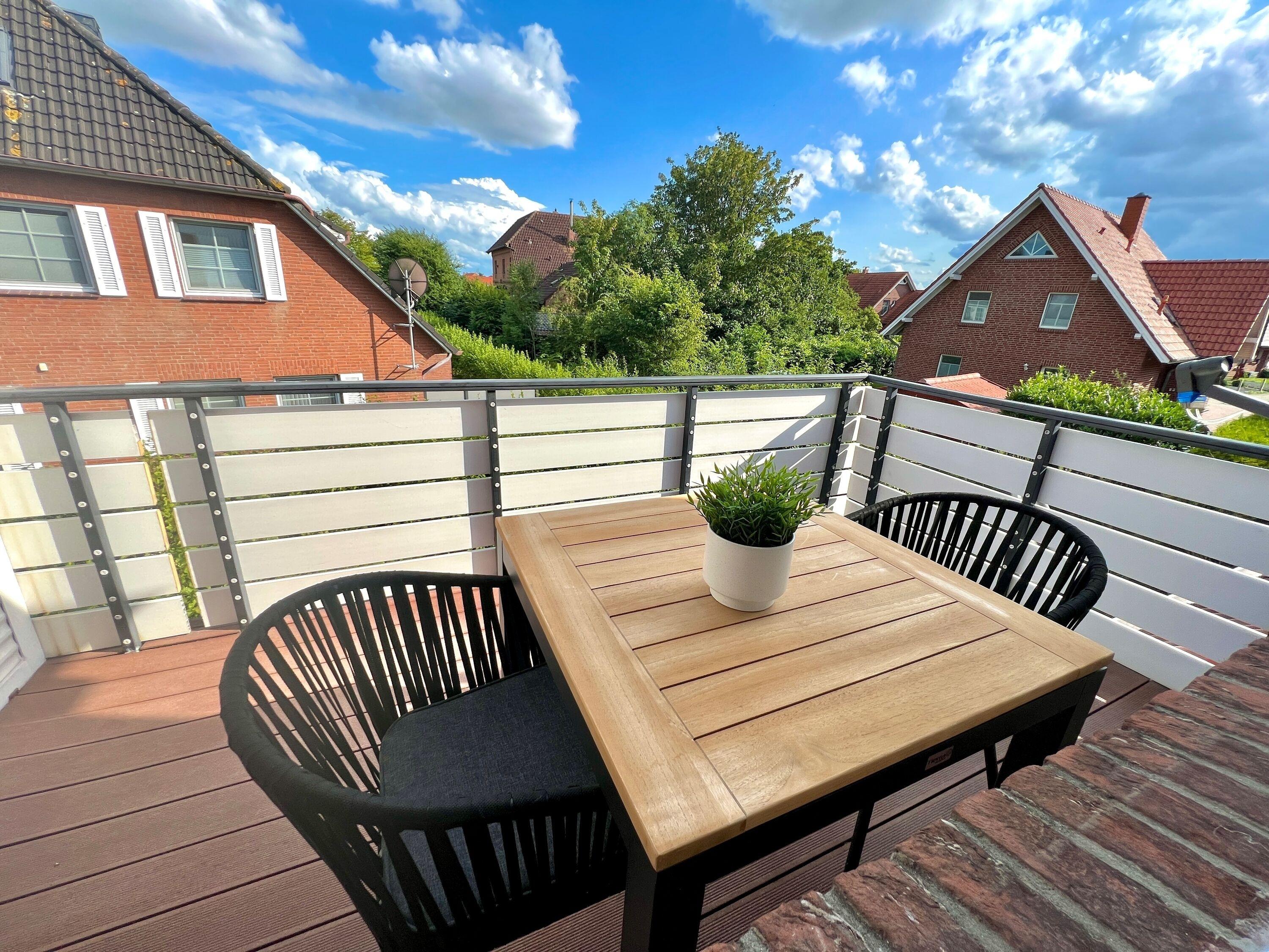 Moderne Ferienwohnung "Alina" in Greetsiel mit Balkon, hochwertiger Ausstattung und eigenem Parkplatz.