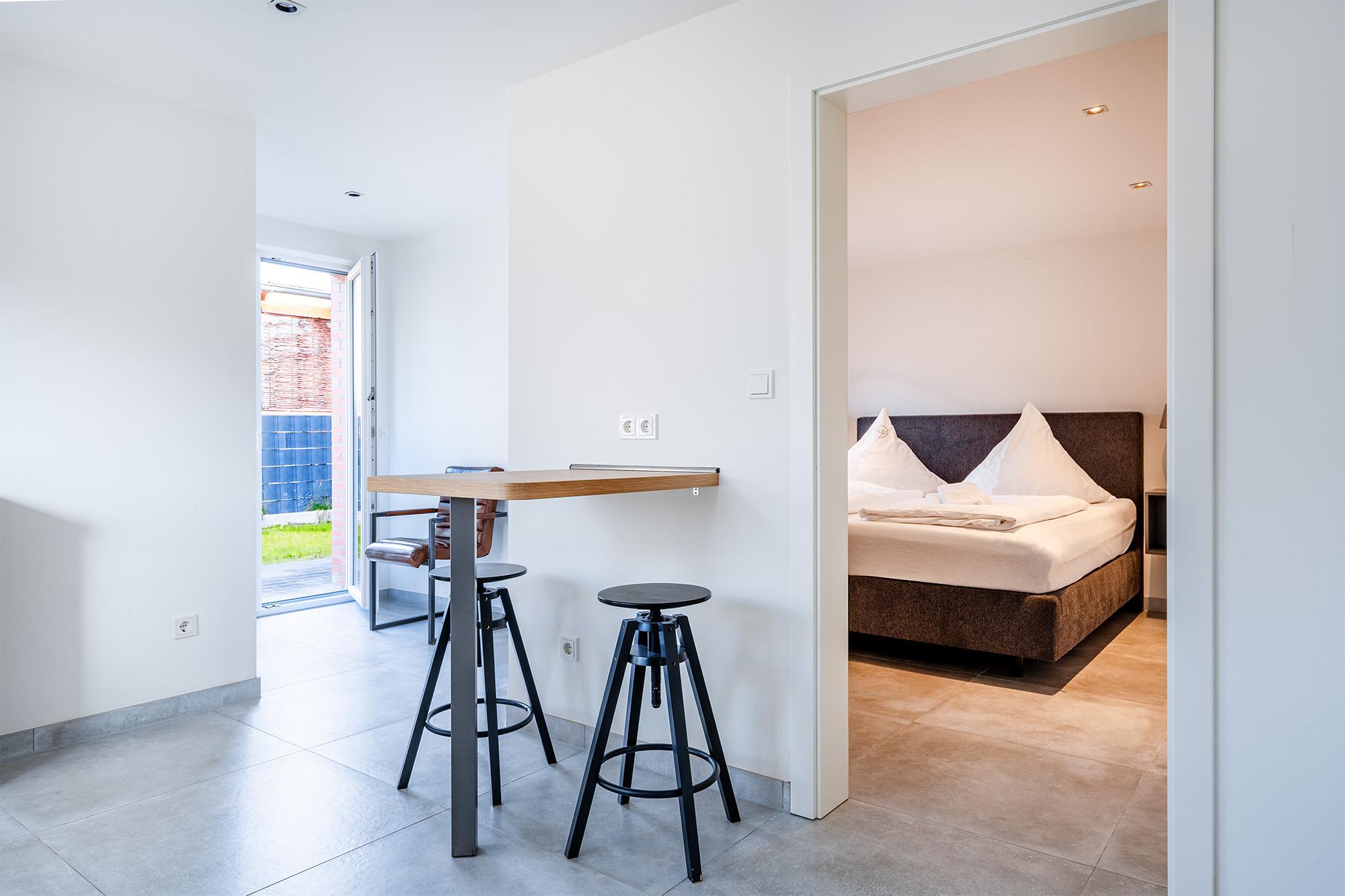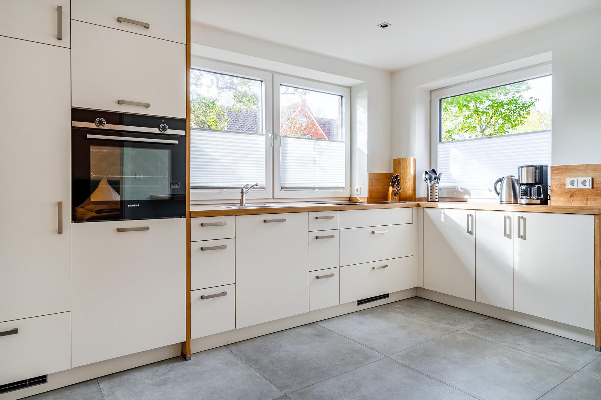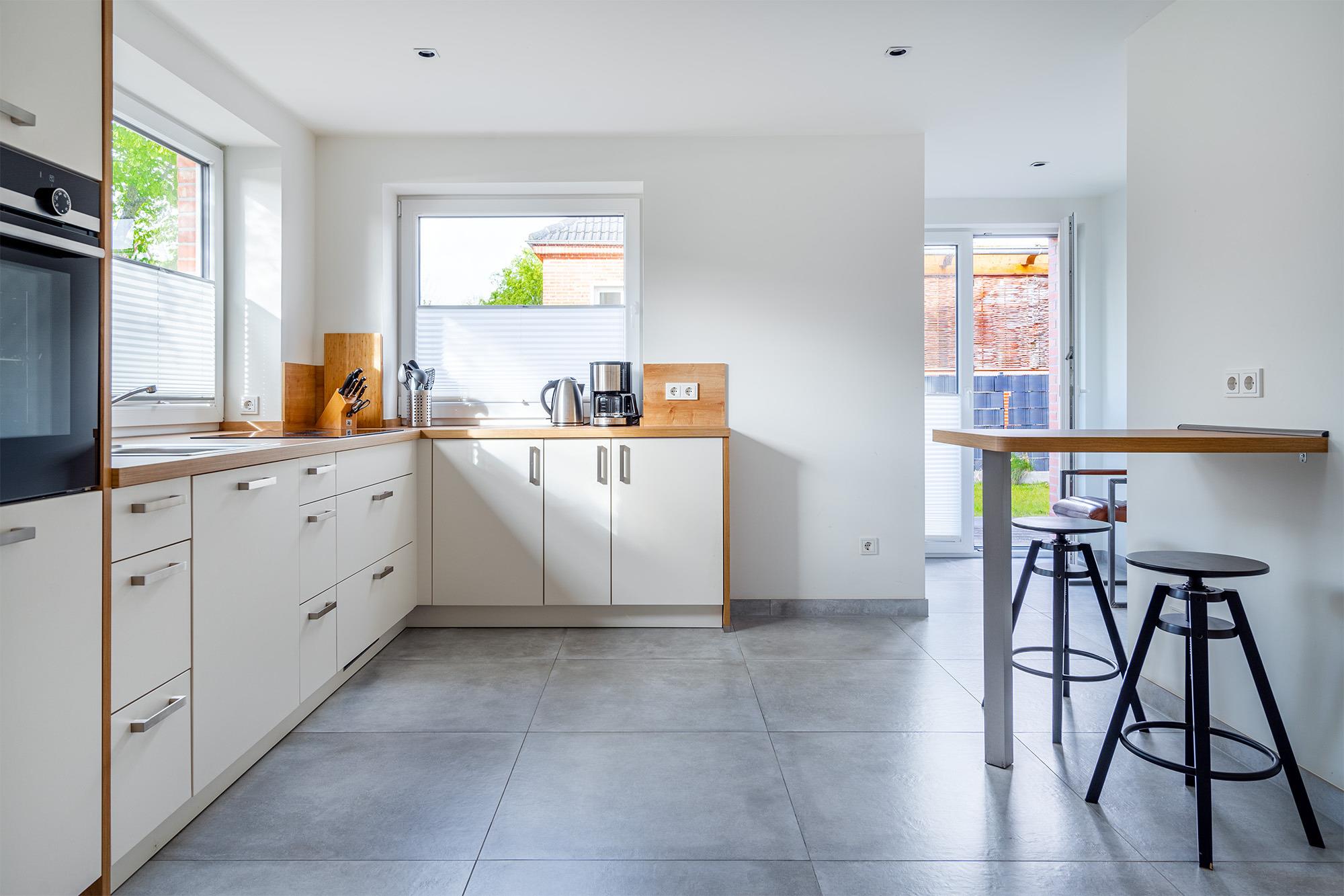 Verbringen Sie Ihren Greetsiel Aufenthalt in unserer kürzlich komplett sanierten Erdgeschoss Wohnung "Die Zimmerei 1". Auf etwa 70qm finden Sie in zentralster Lage einen hellen und geräumigen Wohn-Ess-Bereich mit einer voll ausgestatteten und großzügigen Küche, ausreichend Sitzmöglichkeiten für den gemeinsamen Urlaub mit Freunden oder der Familie, zwei Schlafzimmer mit hochwertigen Boxspringbetten und ausreichend Ablagefläche, sowie ein Badezimmer mit ebenerdiger Dusche. Auf der Terrasse, die Sie durch den Wohnbereich erreichen lässt es sich nach ereignisreichen Tagen entspannen und die frische Luft genießen. Auch Ihr Vierbeiner wird sich hier wohlfühlen. Durch die ausgezeichnete zentrale und dennoch ruhige Lage erreichen Sie alles gut zu Fuß. Selbstverständlich steht Ihnen ein eigener Parkplatz am Haus zur Verfügung. Sollten Sie mit einem E-Auto anreisen, verfügt das Objekt auch über eine Ladesäule, die Sie hinzu buchen können.
