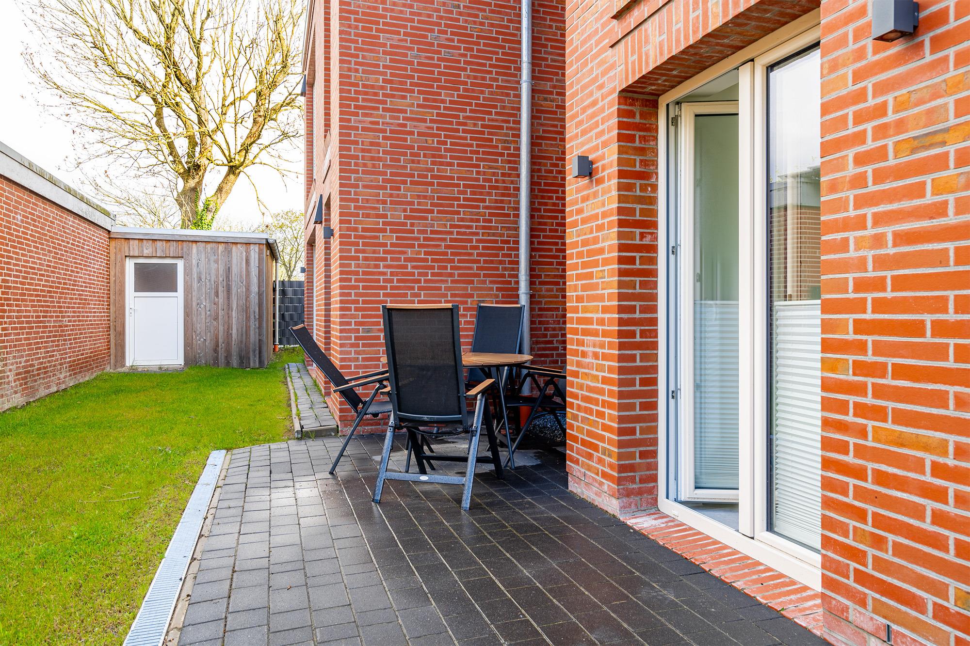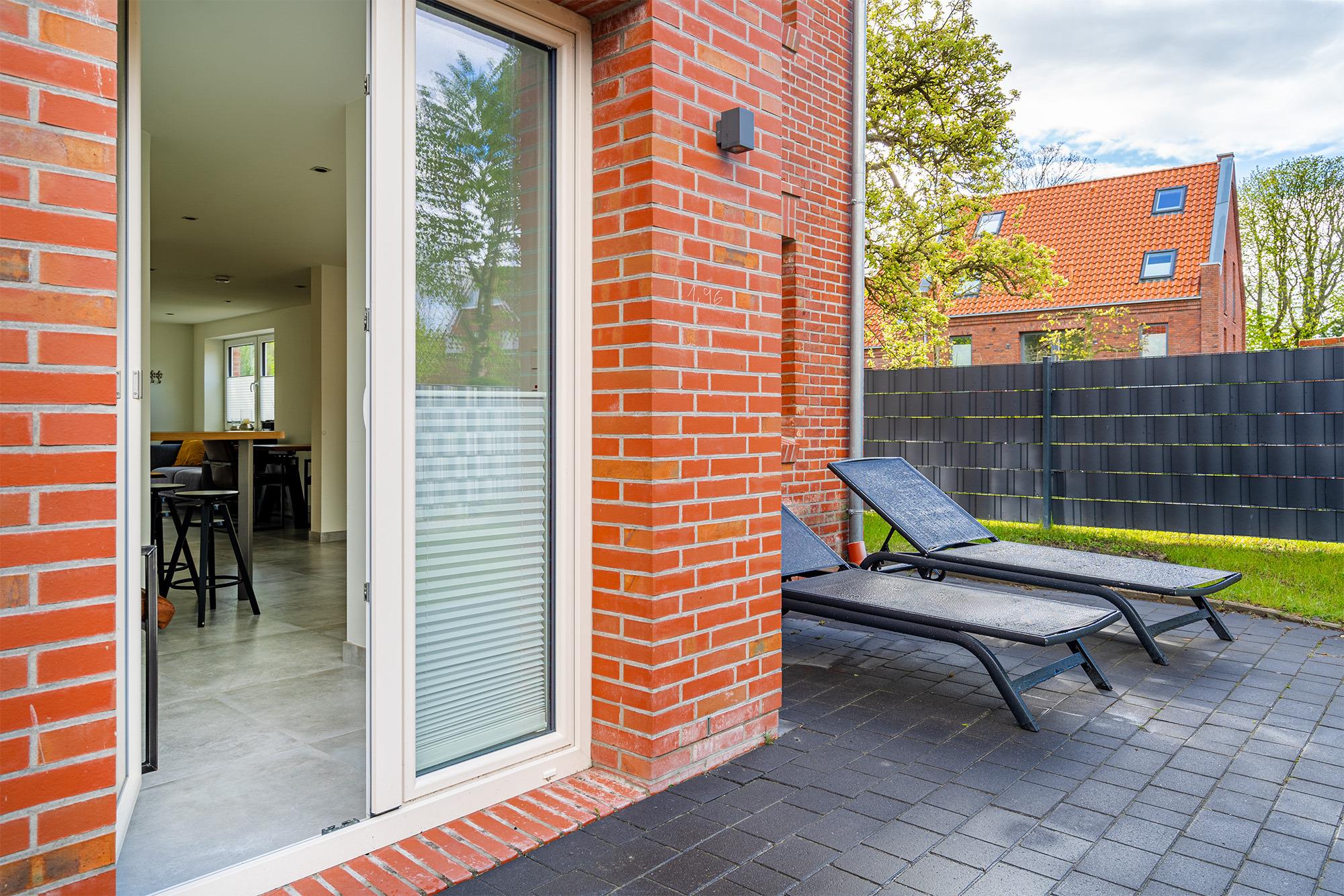 Moderne Erdgeschosswohnung in Greetsiel mit Terrasse, Garten, E-Auto-Ladestation und hundefreundlicher Ausstattung.