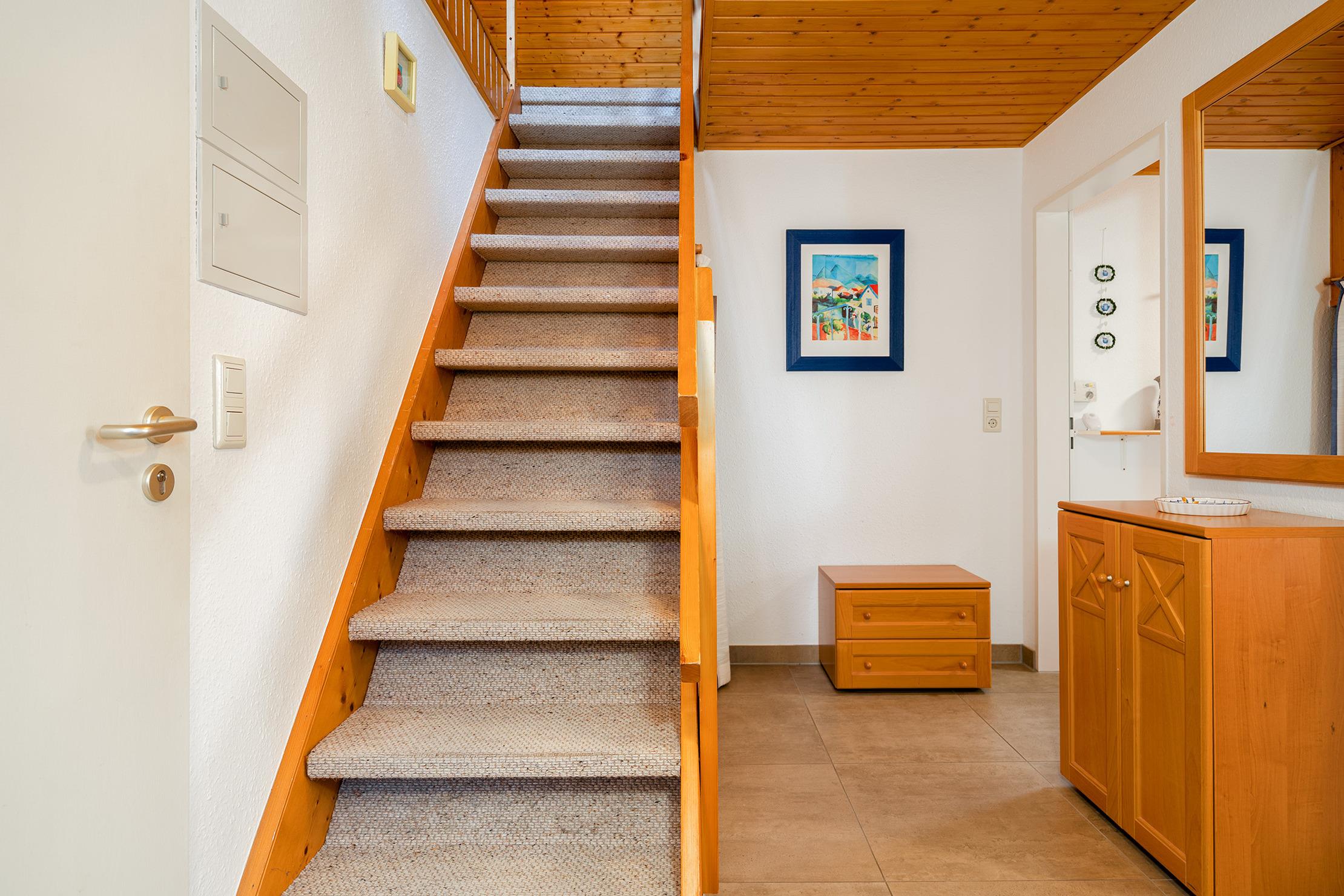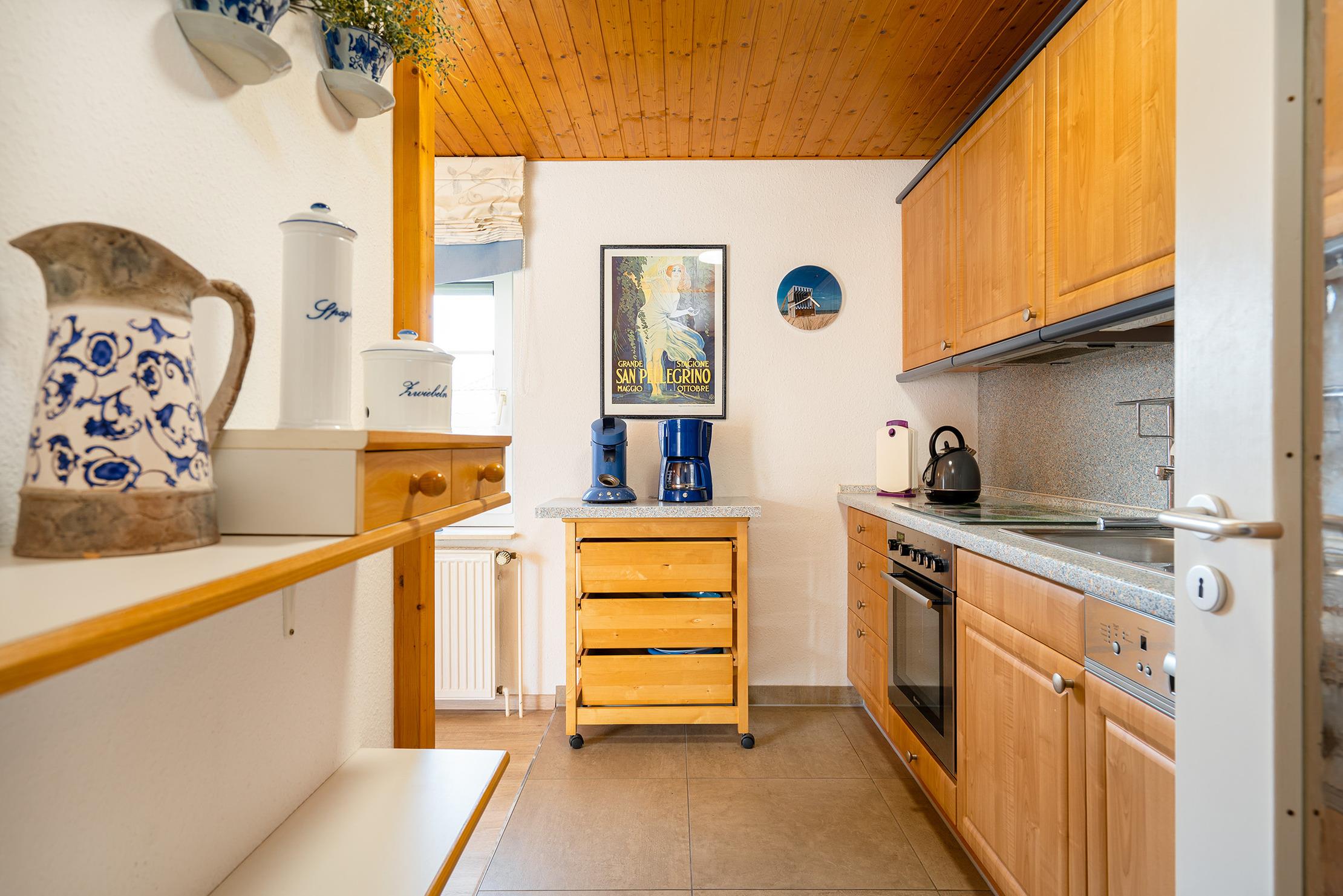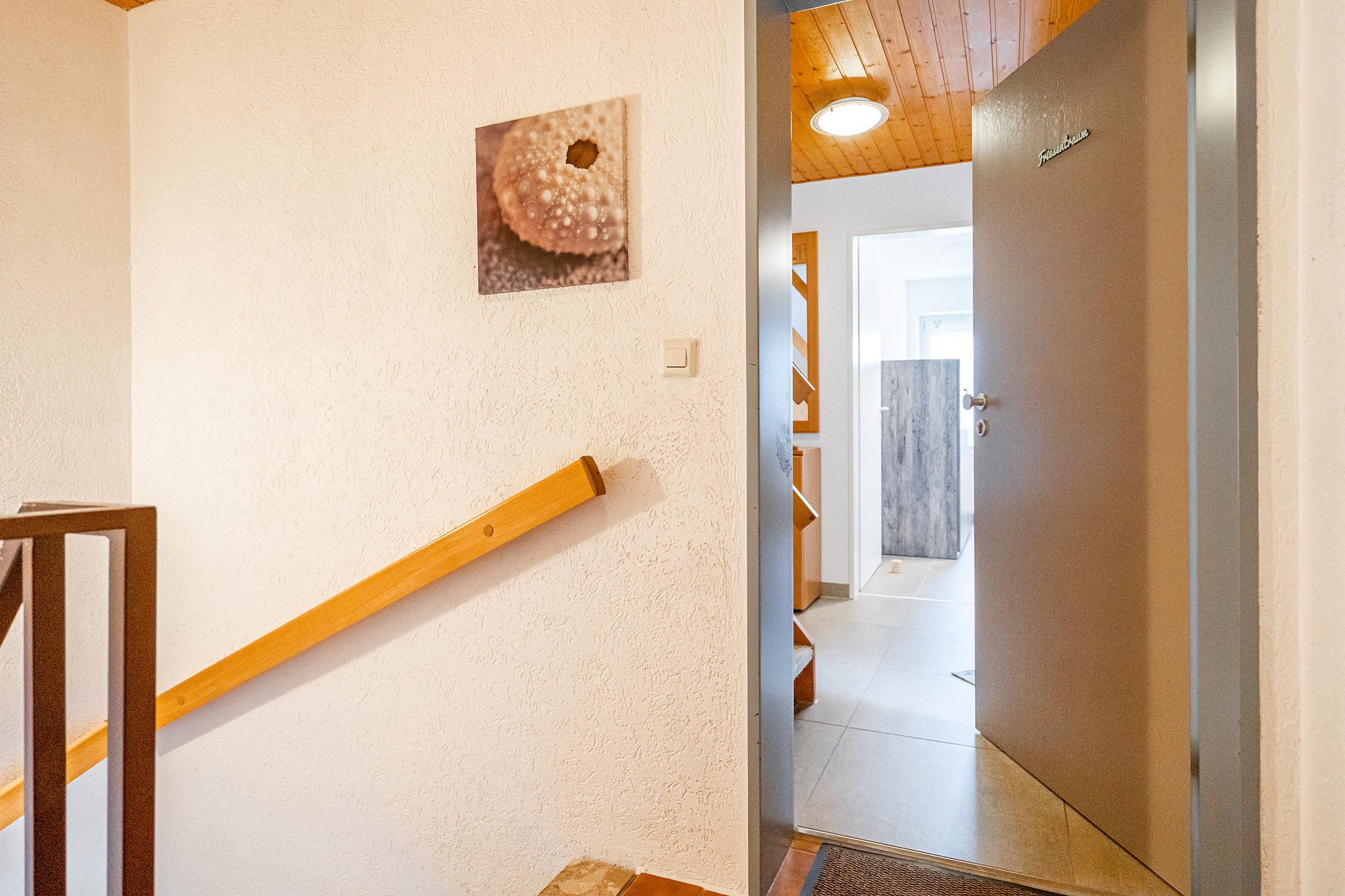 Die Ferienwohnung "Friesentraum" befindet sich in einem traditionellen Ferienhausgebiet im Obergeschoss eines Hauses mit vier Wohneinheiten. Sie vereint auf charmante Weise ostfriesische Tradition mit modernem Wohnkomfort. Beim Betreten der Wohnung fällt sofort die liebevolle, traditionelle Einrichtung ins Auge: rustikale Holzmöbel, gemütliche Stoffe und typisch friesische Dekorationen schaffen eine warme, heimelige Atmosphäre. Der Wohnbereich und die Küche strahlen den gemütlichen Charakter eines klassischen Landhauses aus – ideal, um zur Ruhe zu kommen. Gleichzeitig überzeugt die Wohnung mit modernen Akzenten: Das renovierte Tageslichtbad mit der ebenerdigen Dusche ist zeitgemäß ausgestattet. Auch eines der beiden Schlafzimmer wurde modernisiert und strahlt mit klaren Linien, hochwertigen Materialien und angenehmer Farbgestaltung eine frische, zeitlose Ruhe aus. Das zweite, traditionell gestaltete Schlafzimmer erreichen Sie durch eine Treppe und ist offen als Galerie gestaltet. Es bietet neben einem Schlafbereich auch einen Sessel. Die Wohnung bietet weiterhin einen Balkon, auf dem sich die frische Luft genießen lässt. Neben einem Fahrradabstellraum gibt es außerdem einen reservierten PKW-Stellplatz vor dem Haus.