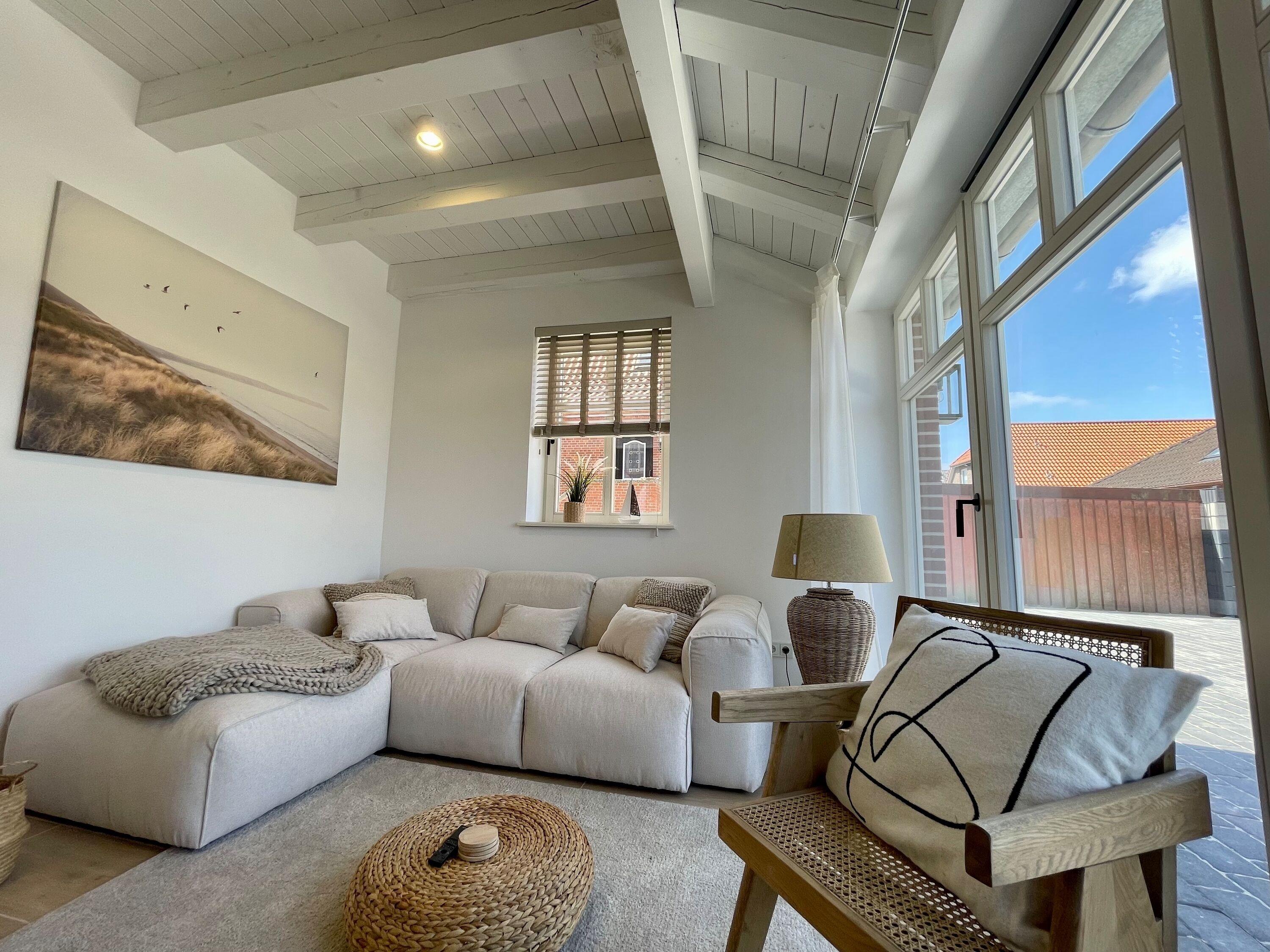 Modernes Ferienhaus "HafenKISTE" in Greetsiel, 150 m vom Hafen, mit privatem Garten und Terrasse.