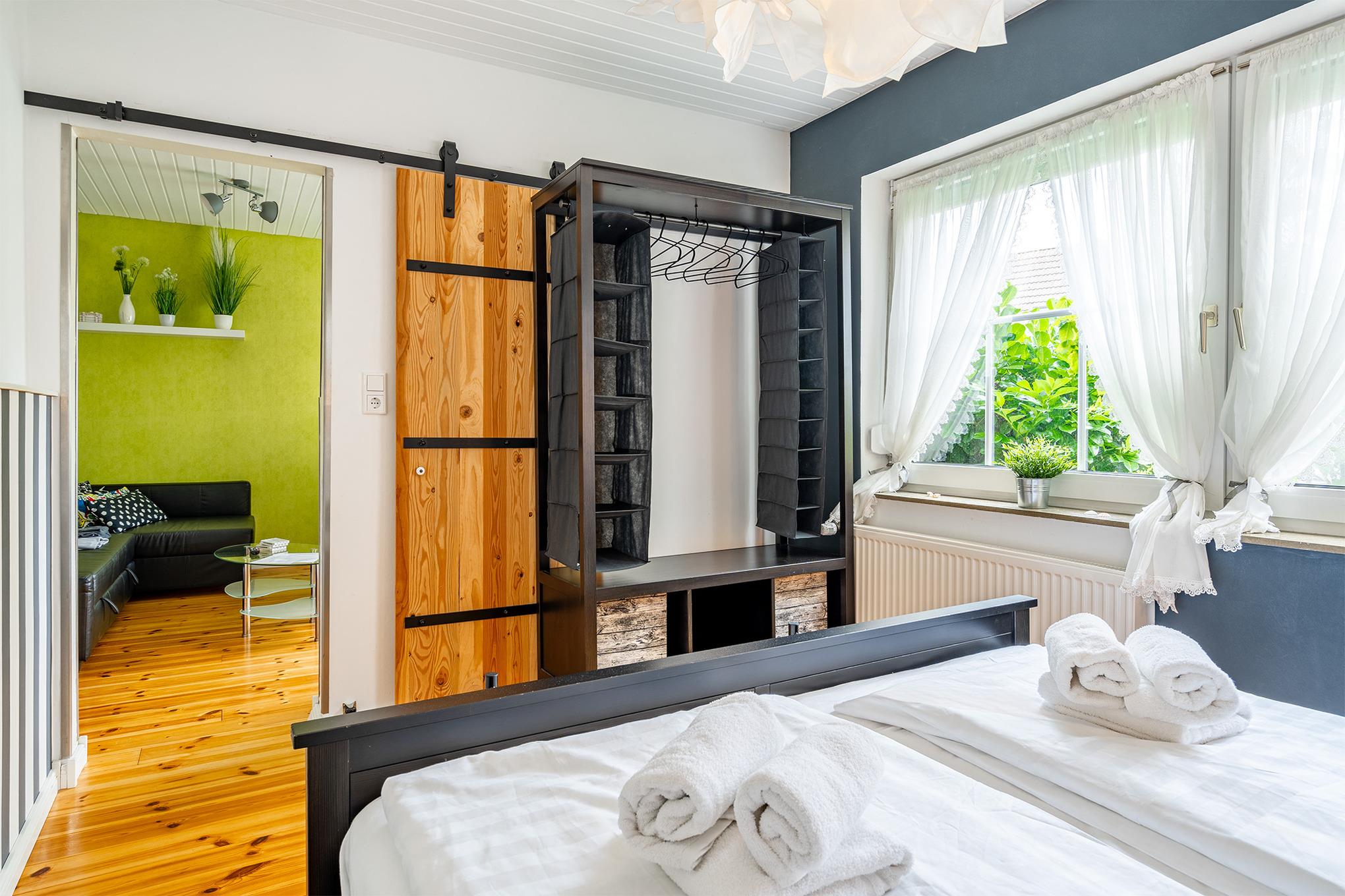 Willkommen im "Kunst Apartment" – einer Ferienwohnung, die weit mehr ist als ein gewöhnlicher Rückzugsort. Auf großzügigen 70qm erwartet Sie ein inspirierendes Ambiente voller kreativer Details und einzigartigem Charme. Die Wohnung liegt im Erdgeschoss und verfügt über zwei gemütliche Schlafzimmer, wovon eines über ein Boxspringbett und ein weiteres über ein normales Doppelbett verfügt. Besonderes Highlight ist das Tageslichtbad im fantasievollen Hundertwasserstil – ein echtes Kunstwerk, das Ihren Aufenthalt unvergesslich macht. Farben, Formen und verspielte Mosaike verschmelzen hier zu einem außergewöhnlichen Wohlfühlerlebnis. Besonders komfortabel ist das zur Verfügung stehende separate WC. Der Wohnbereich wurde ebenso wie das Badezimmer erst kürzlich renoviert und verfügt über eine große Wohnlandschaft sowie einen Esstisch. Jedes Element in dieser Wohnung wurde mit Blick fürs Detail ausgewählt und unterstreicht den einzigartigen Charakter der Unterkunft, wie z.B. die individuell gestaltete Garderobe. Somit ist das "Kunst Apartment" die perfekte Wahl für alle, die das Außergewöhnliche lieben – stilvoll, individuell und mit viel Herz gestaltet. Ein weiteres Plus ist die hervorragende Lage, denn die berühmten Zwillingsmühlen sind nur einen Katzensprung entfernt. Neben einer großzügigen und möbilierten Terrasse bietet die Wohnung außerdem einen abschließbaren Fahrradabstellplatz sowie einen reservierten PKW-Stellplatz.