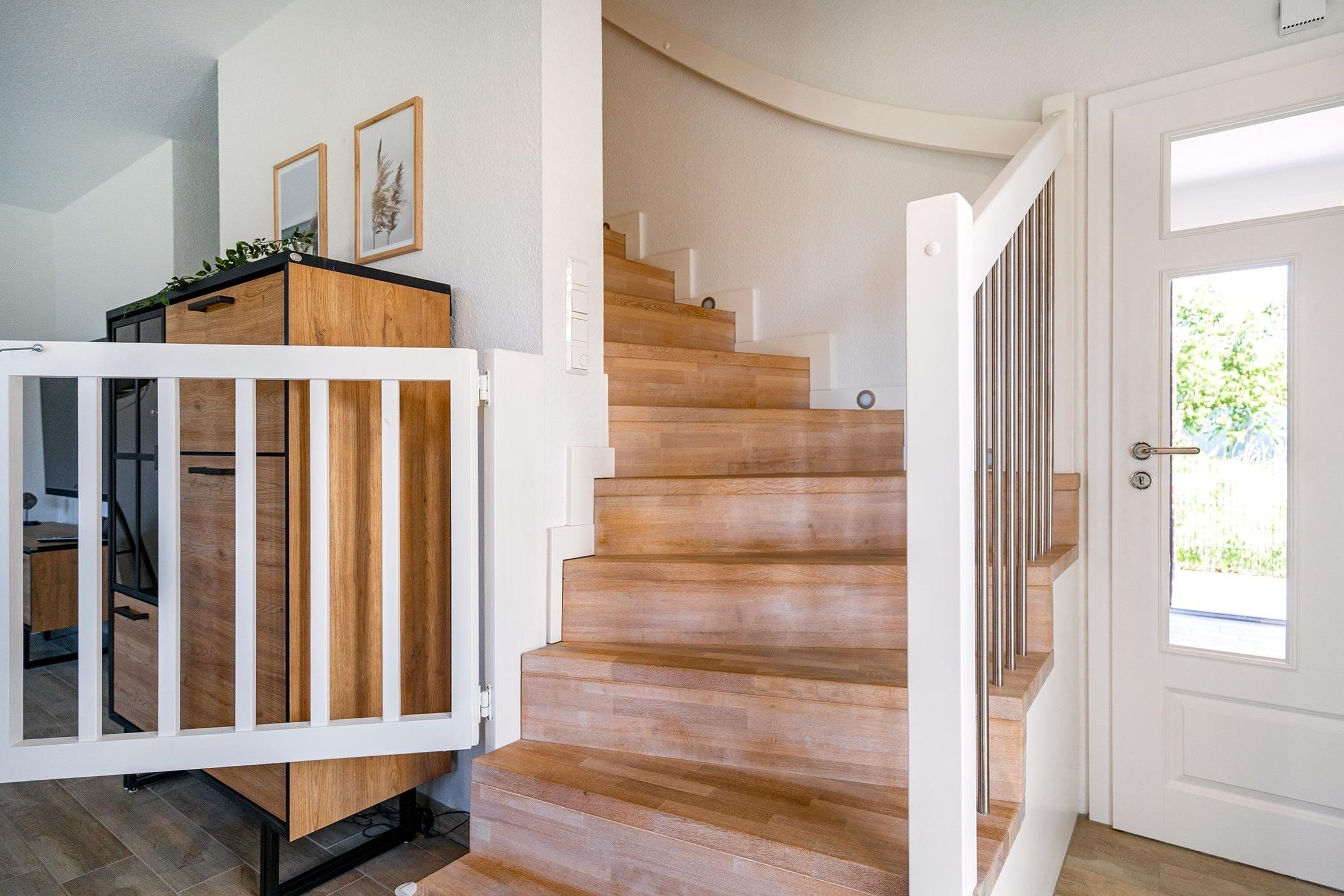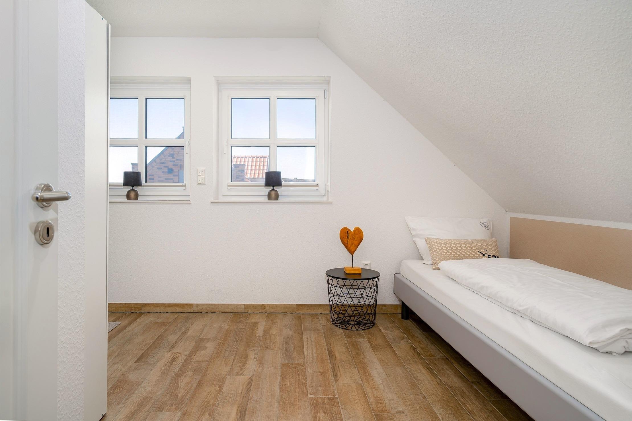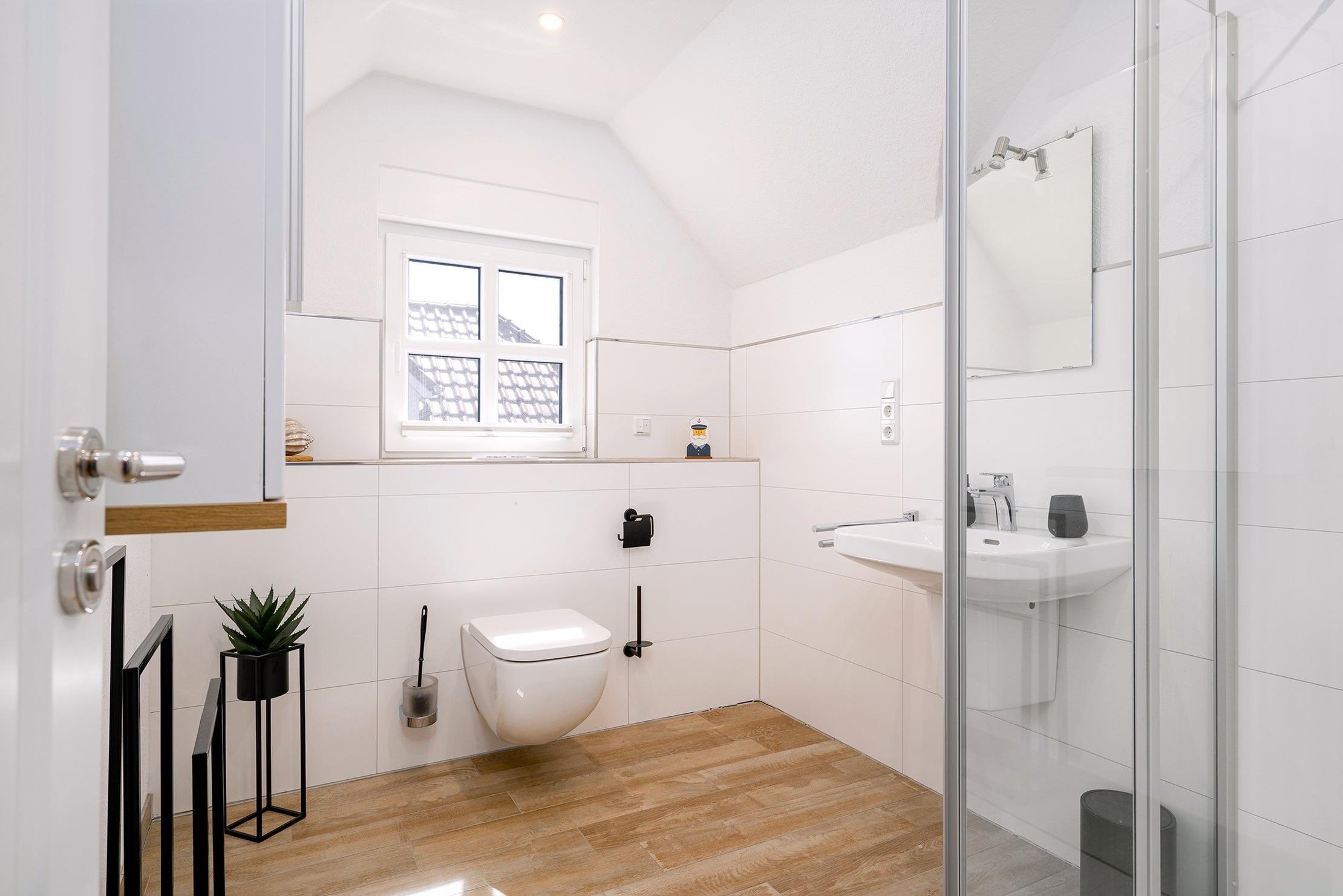 Unser Ferienhaus "Leni" liegt in idyllischer und ruhiger Lage am Feldrand in Greetsiel. Auf etwa 100qm bietet es ausreichend Platz für Familien, Freunde oder Paare, die gemeinsam Erholung suchen. Hierfür eignen sich die drei gemütlich eingerichteten Schlafzimmer, wovon sich eines im Erdgeschoss und zwei im Obergeschoss befinden. Besonders komfortabel sind außerdem die zwei vorhandenen Tageslichtbäder, die sich ebenfalls auf beide Etagen verteilen. Der helle und offene Wohnbereich bietet eine voll ausgestattete und hochwertige Einbauküche, einen großen Esstisch und eine einladende Sofalandschaft, sodass genügend Platz für gesellige Stunden vorhanden ist. Von hier aus haben Sie Zugang zum großen eingezäunten Garten, der ein besonderes Highlight des Hauses ist. Auf der möbilierten Terrasse mit Markise lassen sich entspannte Stunden bei frischer Nordseeluft genießen. Neben einem Fahrradabstellraum steht Ihnen selbstverständlich ein eigener PKW-Stellplatz zur Verfügung.