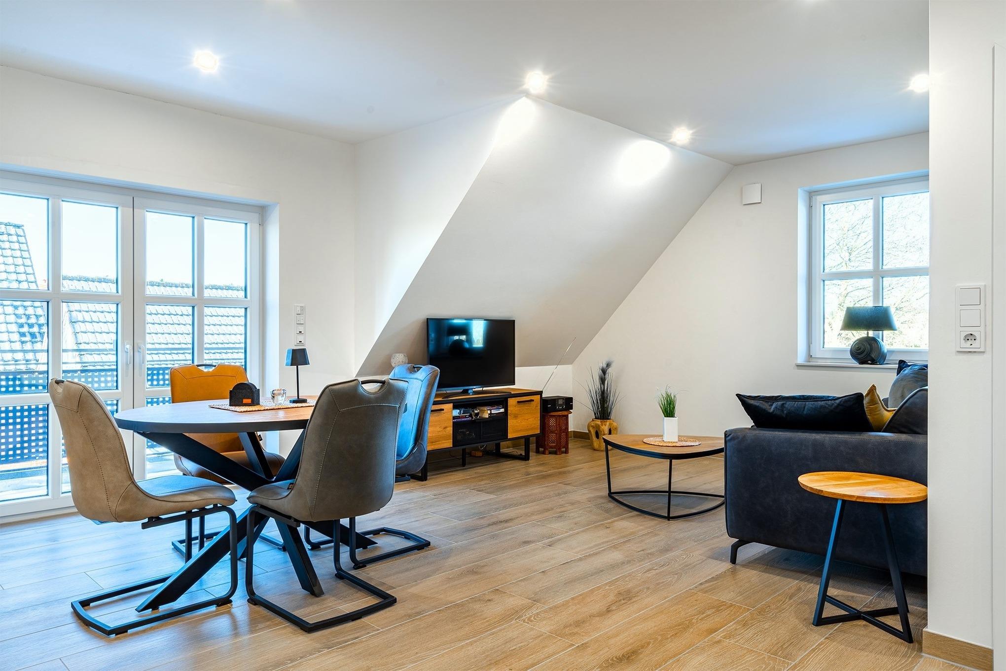 Herzlich Willkommen in unserer Ferienwohnung "Paula". Sie liegt ruhig in einer Sackgasse direkt am Feld und bietet vom Dachgeschoss aus einen perfekten Blick auf die bekannten Greetsieler Zwillingsmühlen. Der geräumige und lichtdurchflutete Wohn-Ess-Bereich bietet viel Platz zum gemeinsamen Entspannen und Zugang zum möbilierten Balkon, auf dem Sie den Tag ausklingen lassen können. Neben einem großen und hellen Schlafzimmer bietet das als Gallerie gestaltete, ausgebaute Dachgeschoss zwei weitere Schlafmöglichkeiten. In diesen Bereich kann man sich wunderbar zurückziehen um ein gutes Buch zu lesen und den Blick auf die Greetsieler Zwillingsmühlen zu genießen. Besonders an dieser Wohnung sind vorallem die zwei Tageslichtbäder, die besonders für den Urlaub mit der Familie oder Freunden geschätzt werden. Selbstverständlich steht auch ein eigener Parkplatz sowie eine Abstellmöglichkeit für Ihre Fahrräder zur Verfügung.