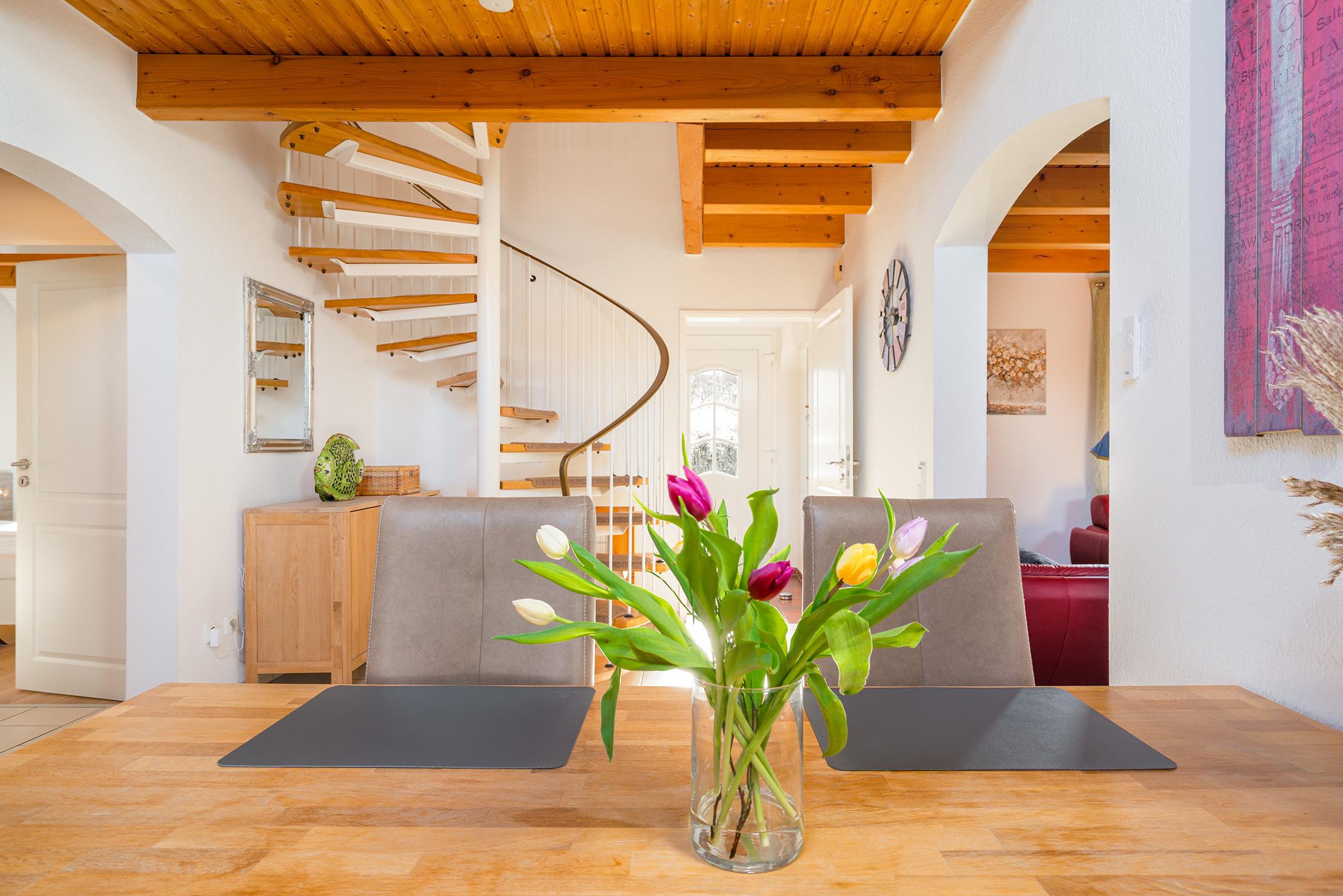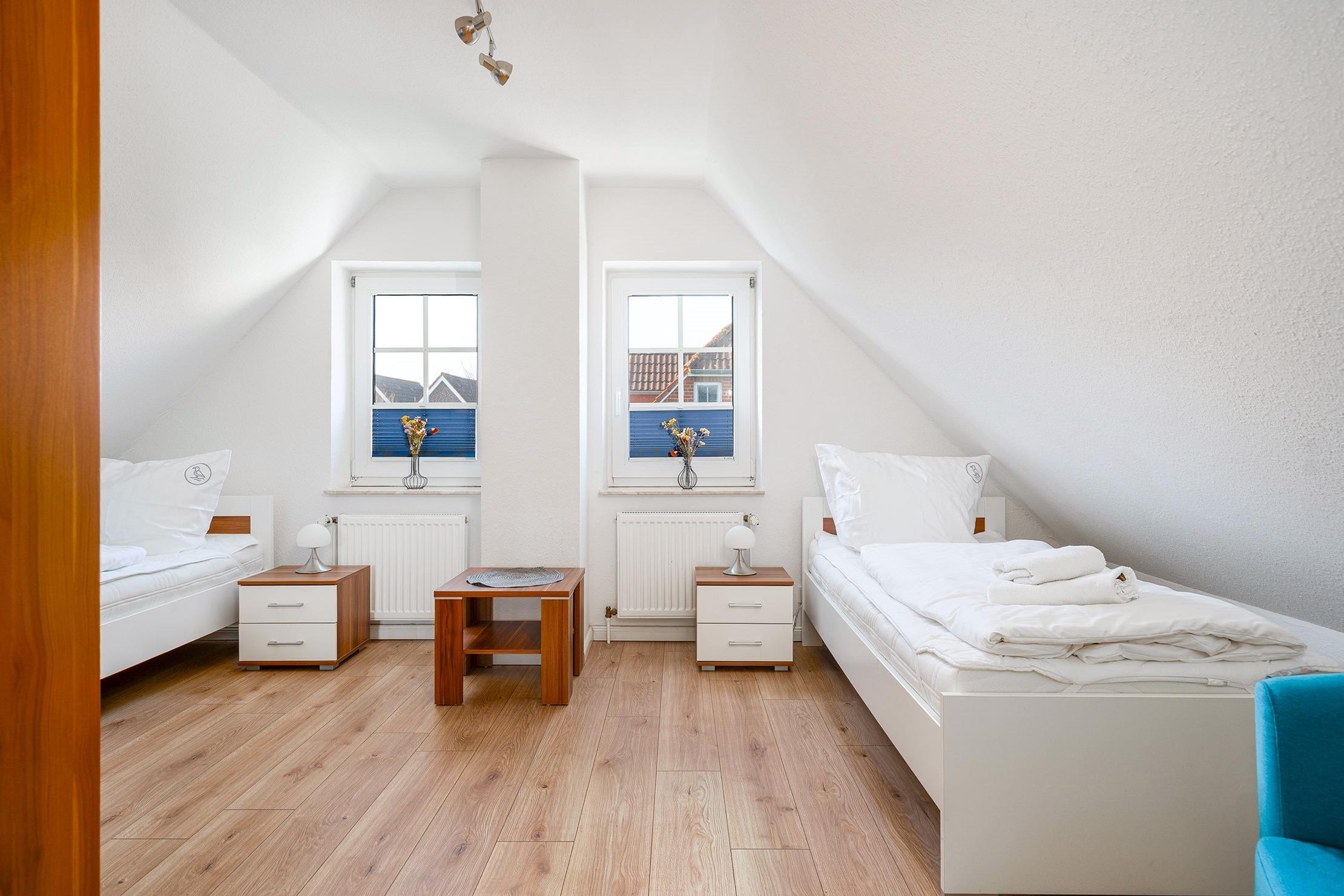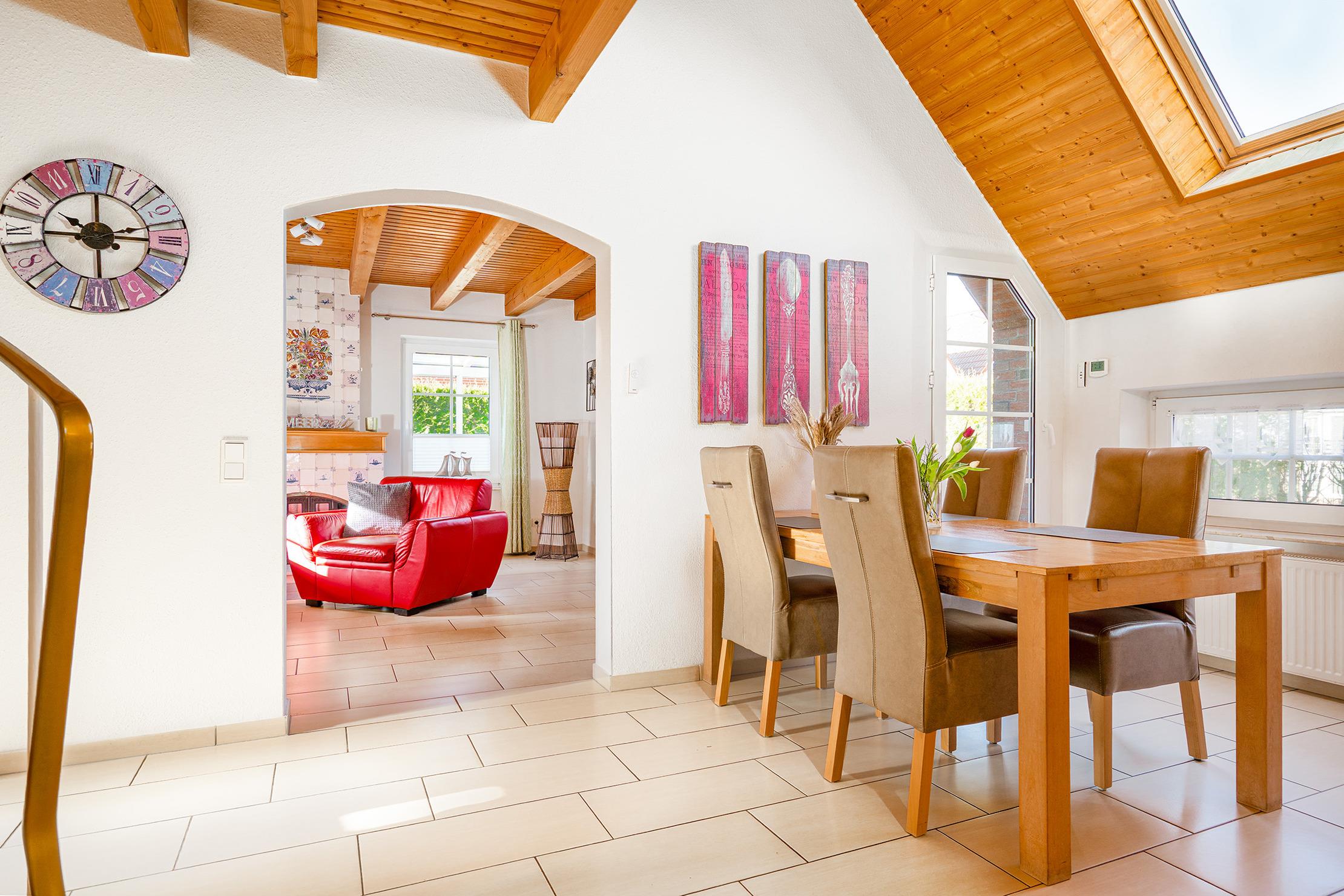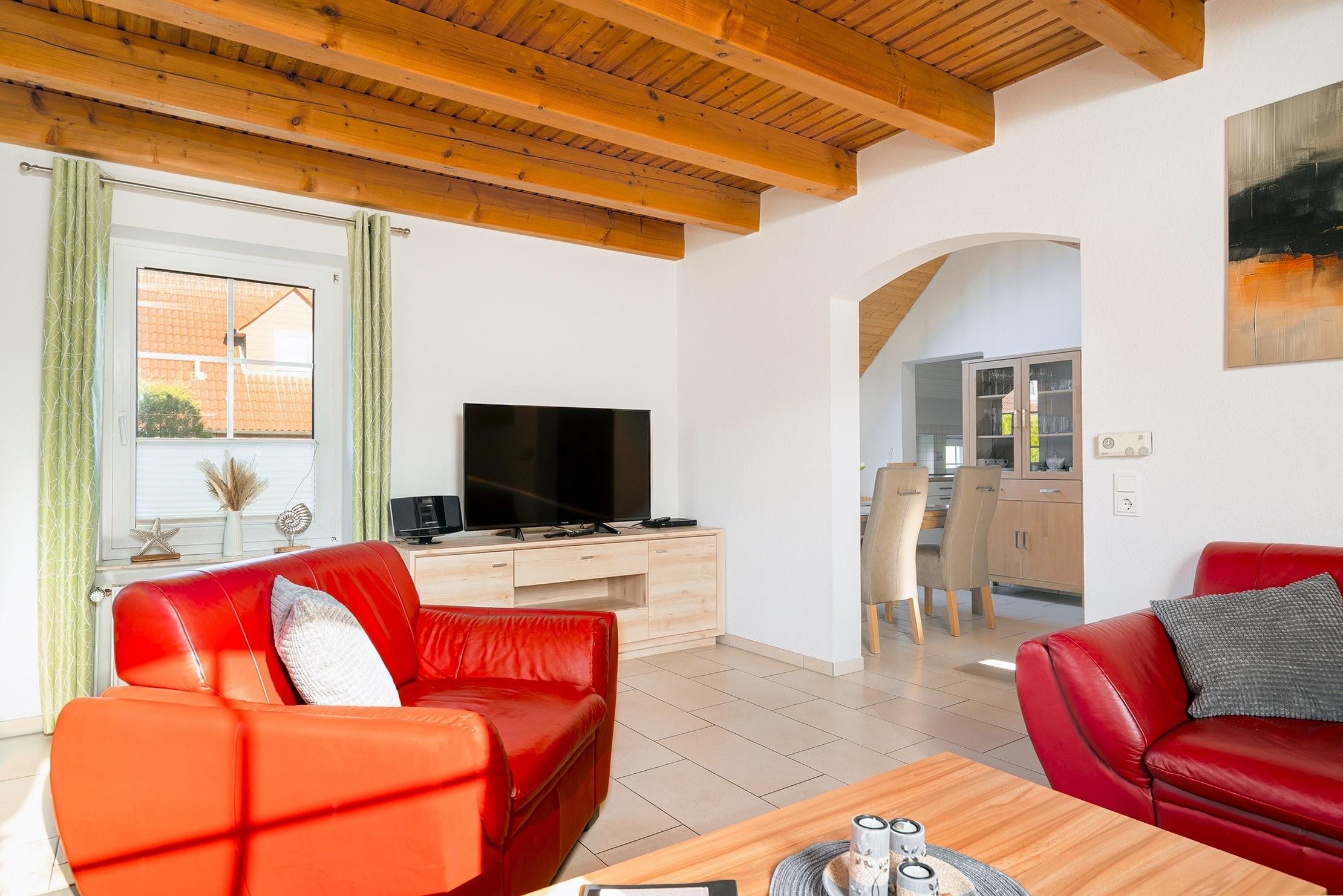 Das Ferienhaus "Skipper" erwartet Sie mit 105qm als traumhaftes, helles und gemütliches Feriendomizil mit viel Platz und Komfort für den gemeinsamen Urlaub mit der Familie oder Freunden. Der Wohnbereich mit großer Sofalandschaft und Kamin verspricht behagliche Abende bei knisterndem Feuer. Die separate und voll ausgestattete Küche mit Fußbodenheizung, der helle und geräumige Essbereich, das Schlafzimmer mit Doppelbett sowie das Tageslichtbad mit ebenerdiger Dusche und Fußbodenheizung runden die Ausstattung im Erdgeschoss ab. Im Obergeschoss bietet das Haus ein weiteres Schlafzimmer mit zwei Einzelbetten, ein zweites Tageslichtbad sowie einen Relax-Raum, in dem es sich in gemütlichen Sesseln bei einem guten Film entspannen lässt. Das ganze Haus überzeugt durch großzügige und helle Räume. Ein absolutes Highlight ist der weitläufige, eingezäunte Garten mit einer überdachten Terrasse und elektrischen Markise – ideal für laue Sommerabende mit einem Glas Wein oder frischer Nordseeluft bei einer heißen Tasse Tee. Hier kommt jeder auf seine Kosten, egal ob Kinder oder Ihr Vierbeiner. Auch die beiden vorhandenen PKW-Stellplätze und die ruhige Lage in einer Sackgasse unweit des Greetsieler Hafens machen das Haus zu einem idealen Rückzugsort für die gemeinsame Zeit mit Freunden oder der Familie.