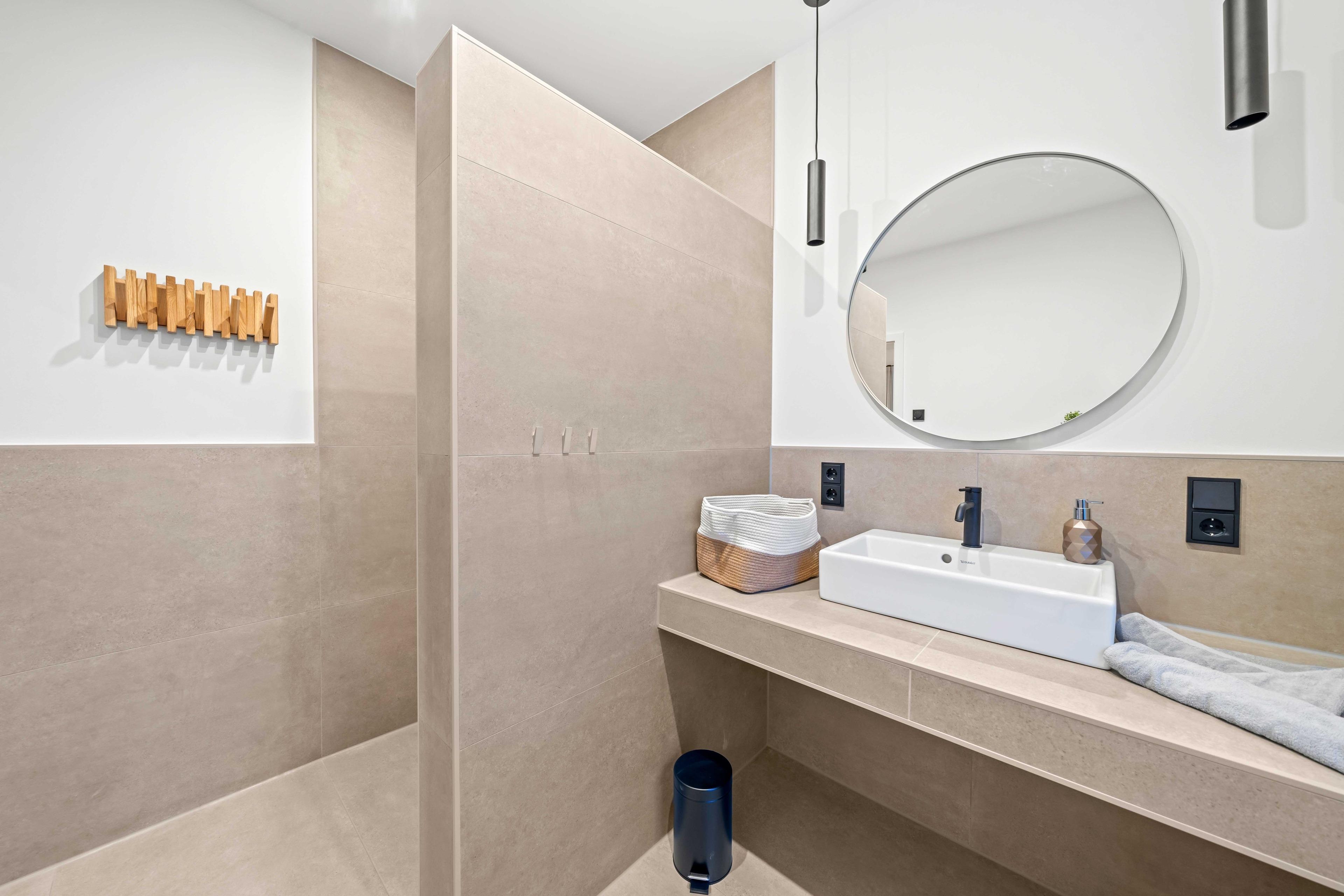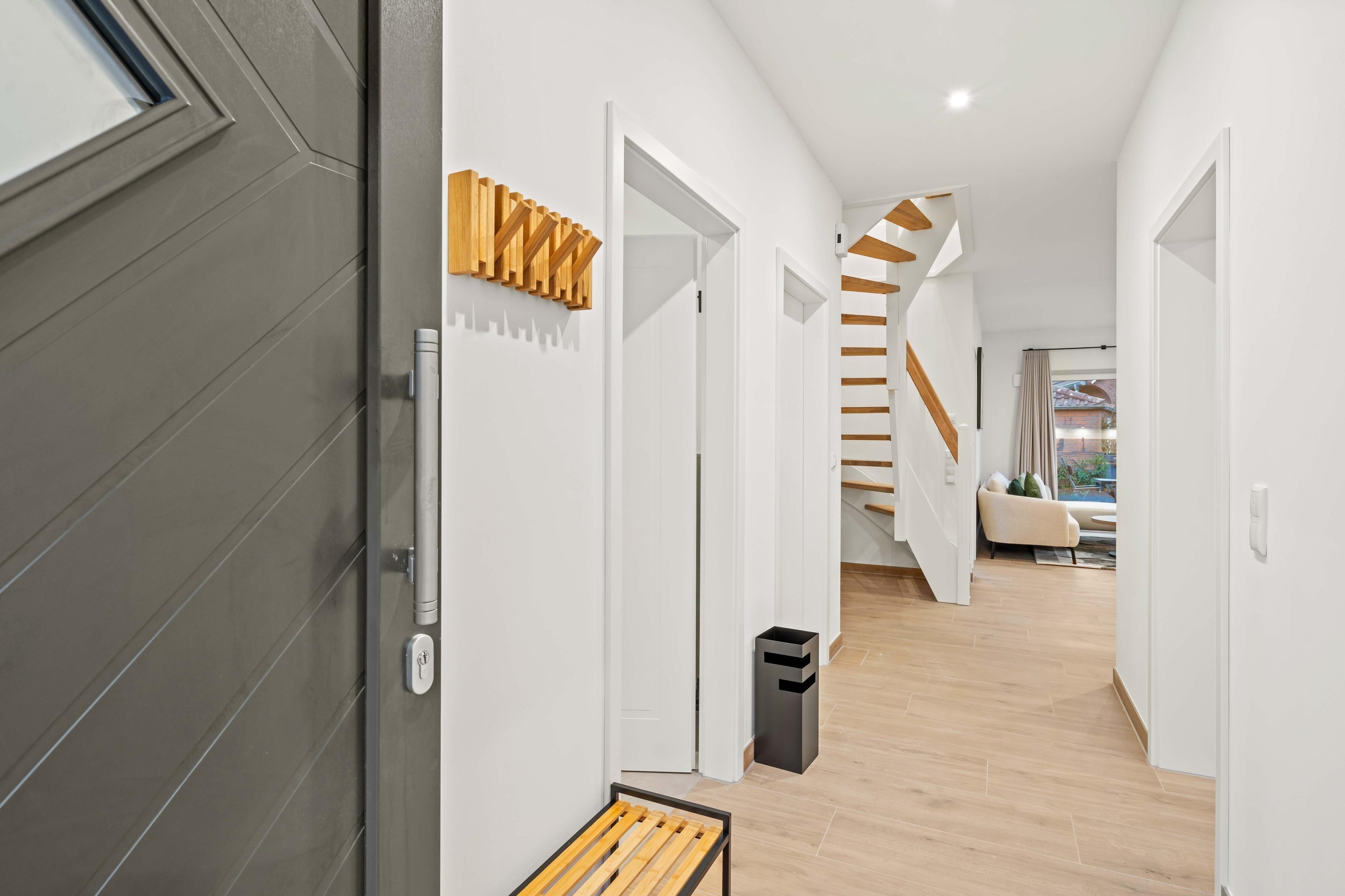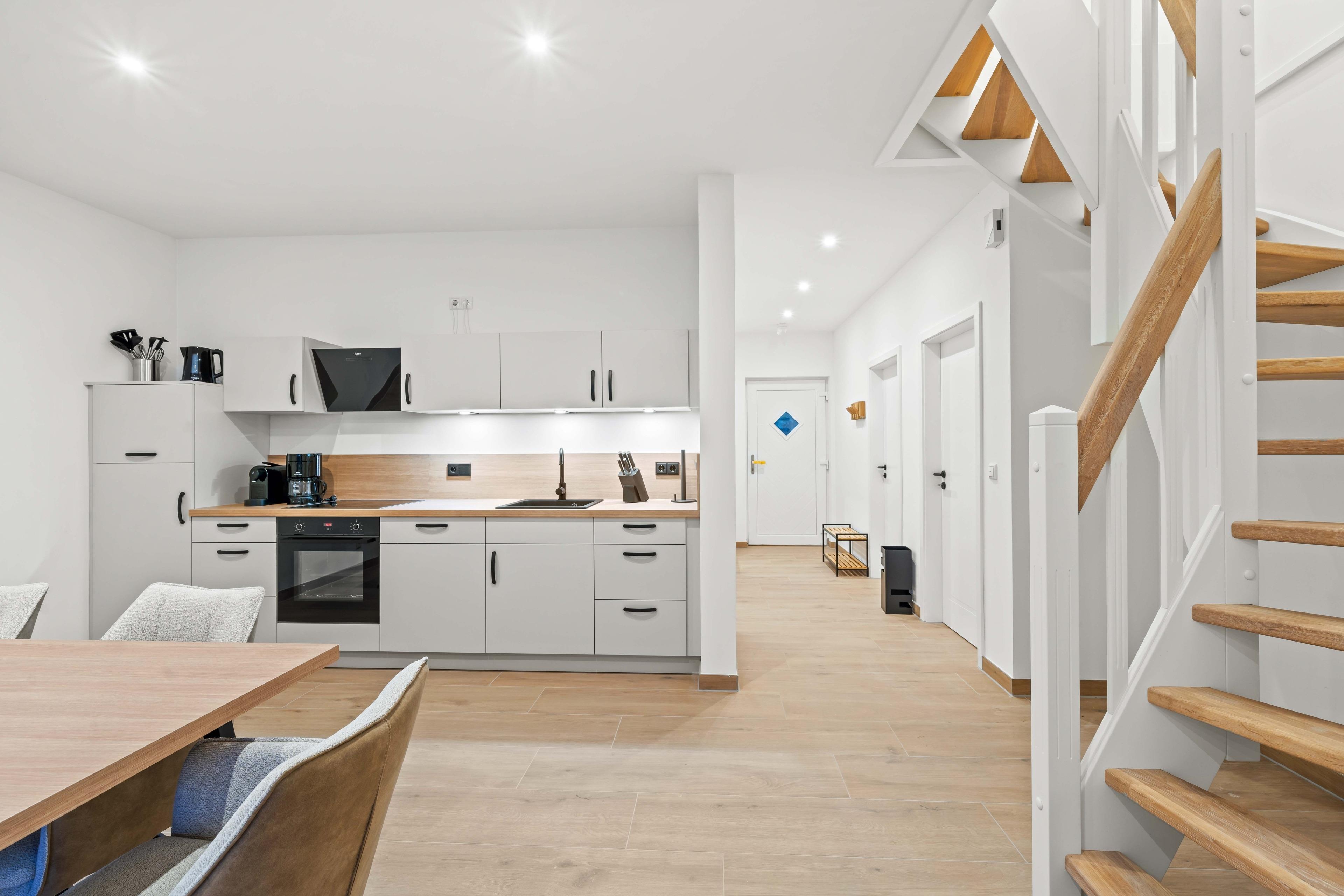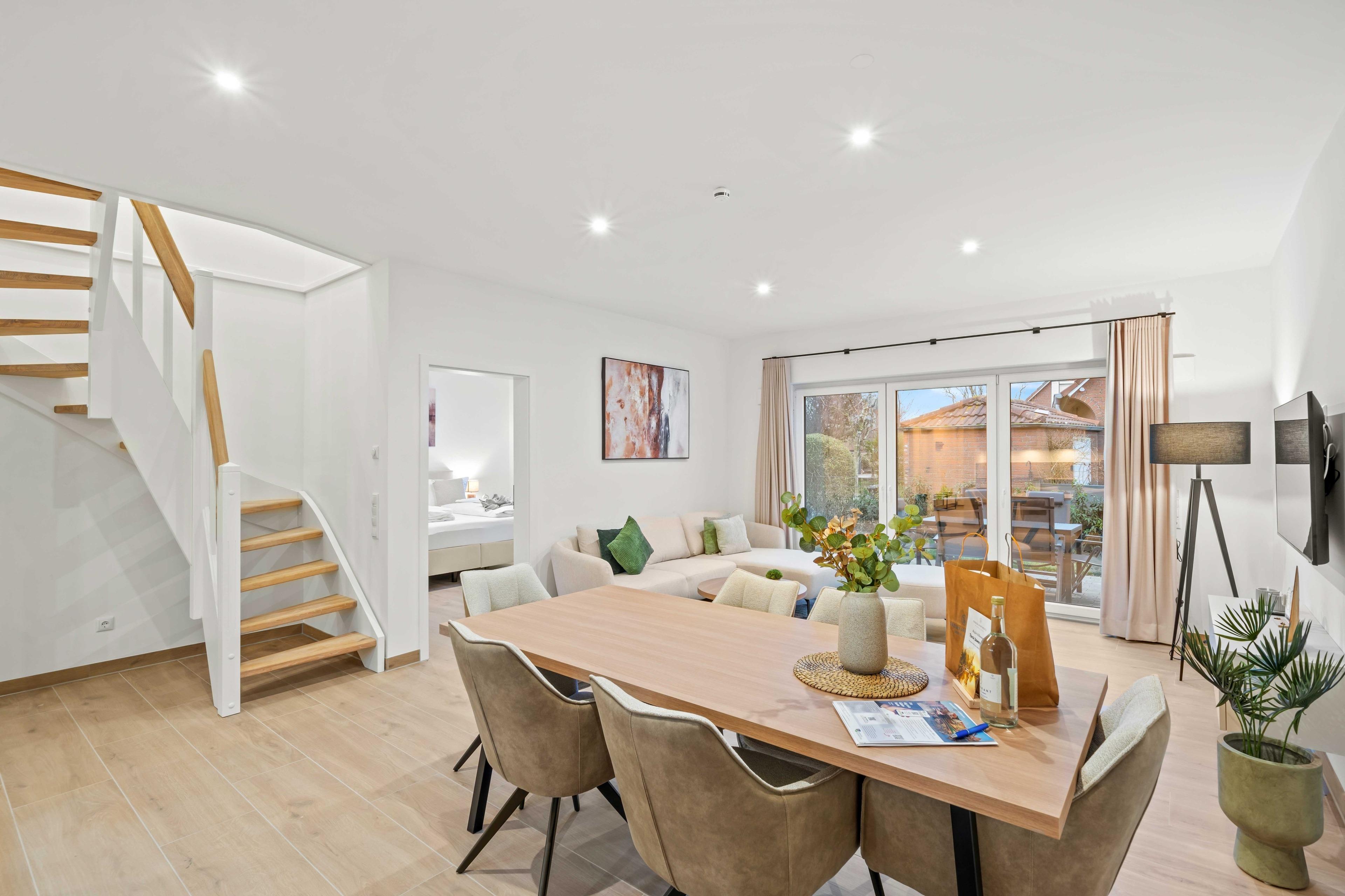 Unser neues Ferienhaus "Vista 12" befindet sich in sehr ruhiger Lage in einem traditionellen Ferienhausgebiet im Schollenweg. Auf etwa 110qm bietet es sich als stilvolles und hochwertig ausgestattetes Urlaubsdomizil für den gemeinsamen Urlaub mit der Familie oder Freunden an. Hierfür eignen sich besonders die drei Schlafzimmer mit bequemen Boxspringbetten, wovon sich zwei im Erdgeschoss und eins im Dachgeschoss befinden. Auch die beiden modernen Tageslichtbäder mit ebenerdigen Duschen bieten zusätzlichen Komfort. Das Herzstück des Hauses ist der lichtdurchflutete und großzügige Wohn- und Essbereich mit Sofalandschaft und einer erstklassigen Einbauküche, ideal für gesellige Abende. Auch ein Abstellraum mit Waschmaschine steht zur Verfügung. Der eingezäunte Garten mit großer Terrasse lädt zum Verweilen bei frischer Nordseeluft ein und auch Ihre vierbeinigen Begleiter sind hier herzlich willkommen! Im Außenbereich befindet sich außerdem ein Abstellraum für Fahrräder sowie ein PKW-Stellplatz.
