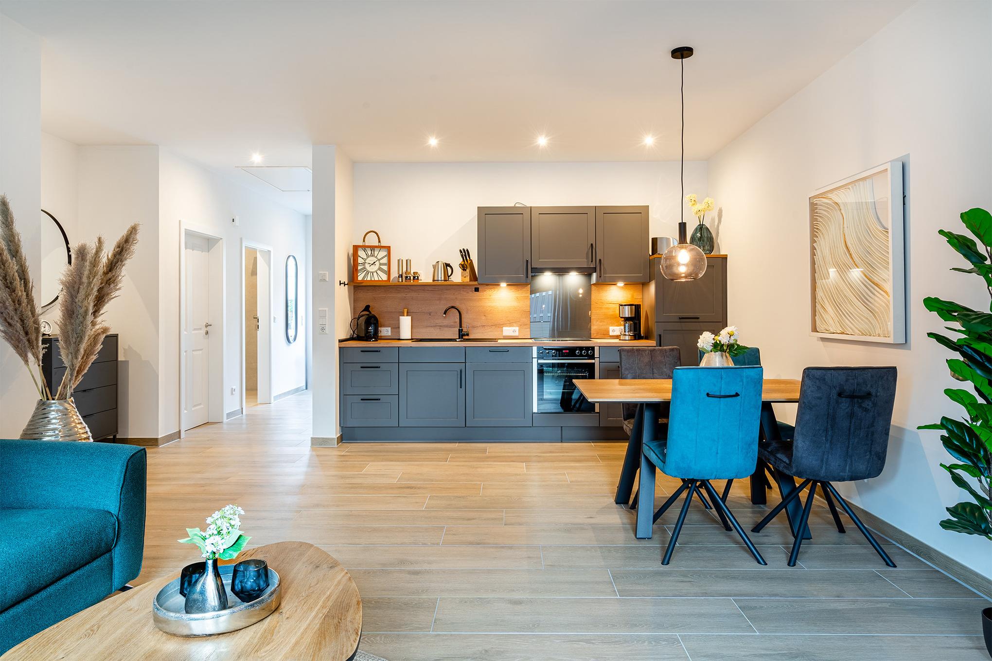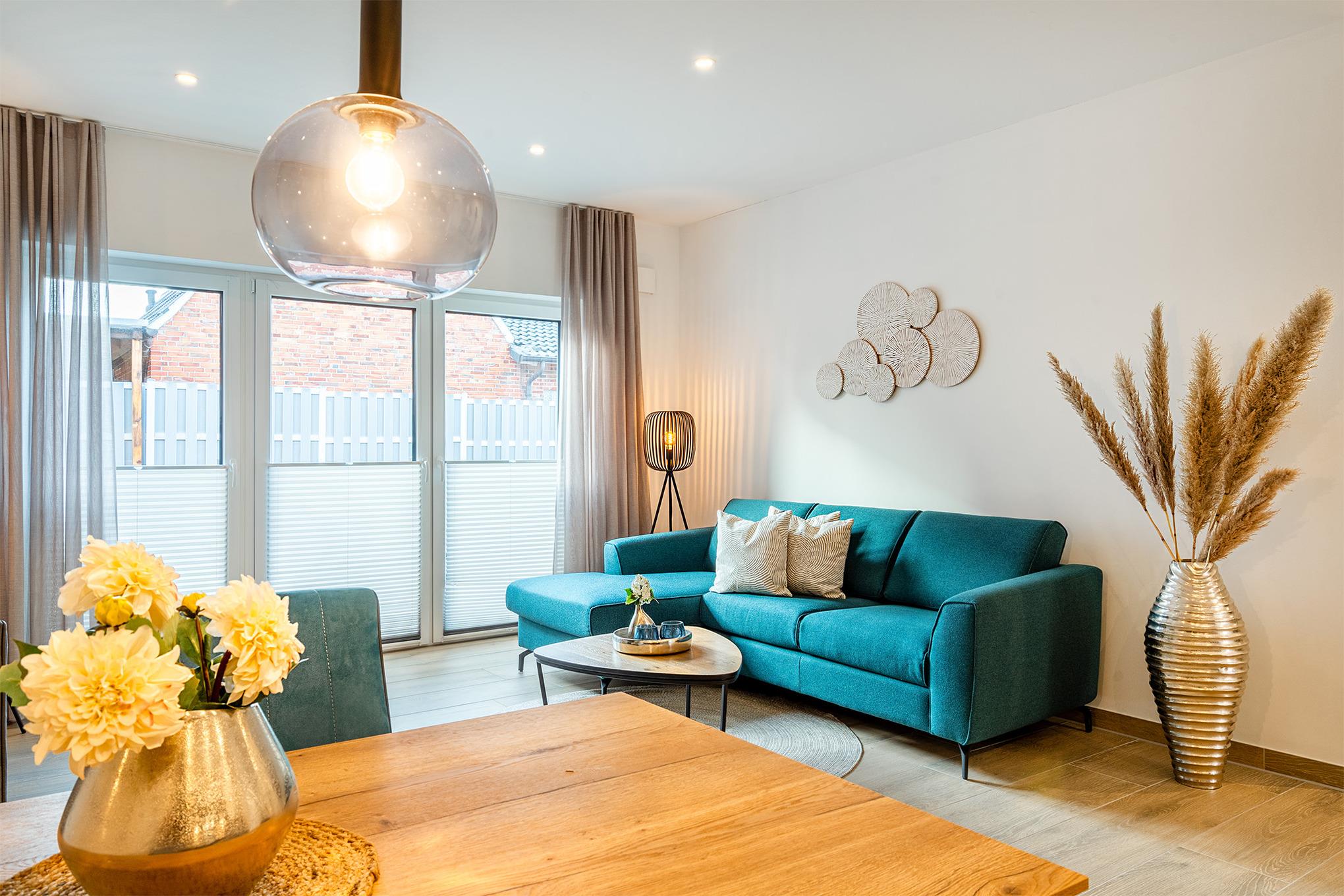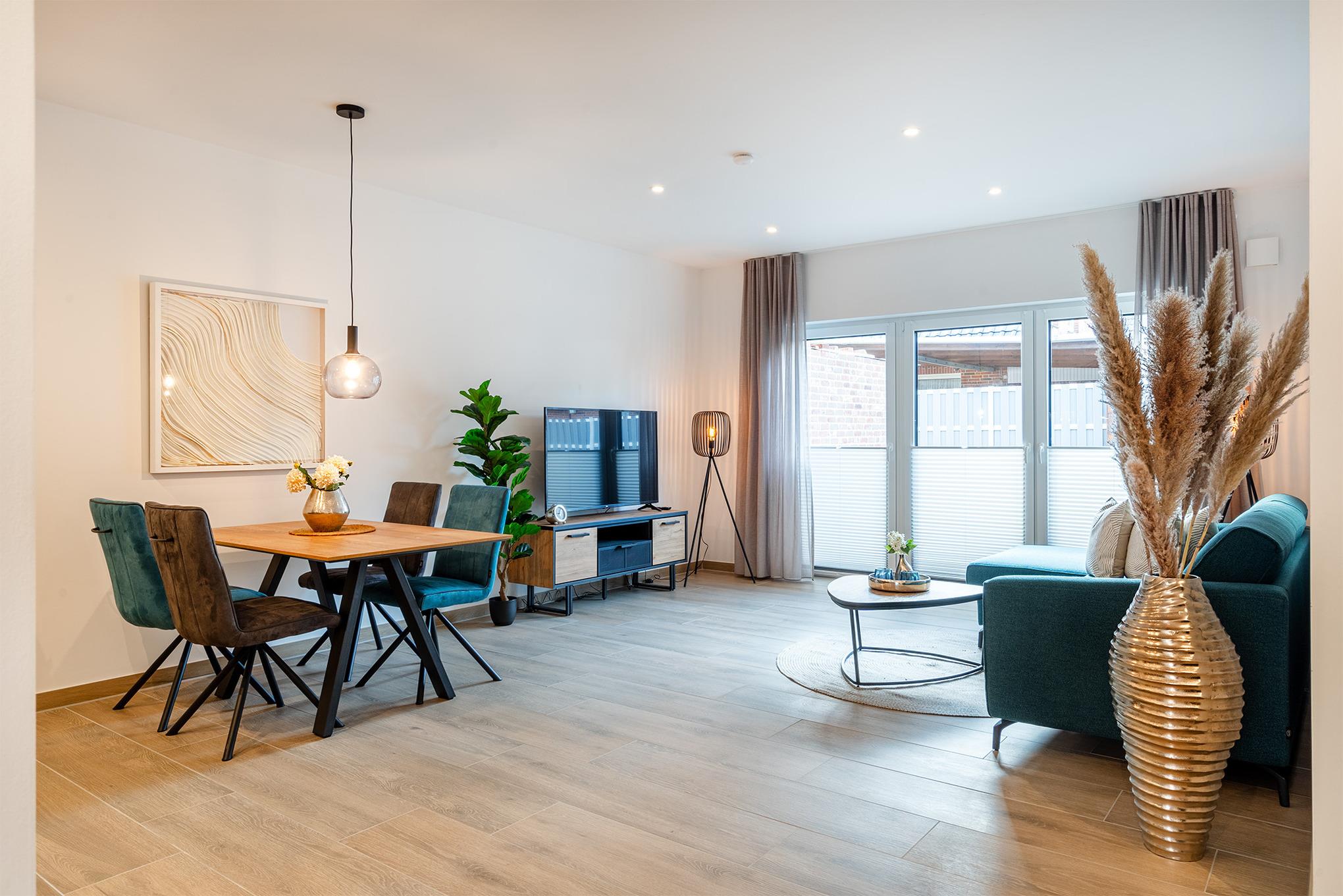 Vom Emsweg aus sind es nur wenige hunderte Meter bis zu den Geschäften, Restaurants oder dem bekannten Greetsieler Hafen. Ihr Feriendomizil verfügt über einen geräumigen und hellen Wohn-Ess-Bereich, eine voll ausgestattete Küche, zwei Schlafzimmer mit bequemen Boxspringbetten, sowie zwei Tageslichtbäder. Auch ein Abstellraum und vor allem ein großzügiger Außenbereich mit Terrasse und eingezäuntem Garten steht zur Verfügung. Ihr Vierbeiner wird sich in diesem Garten sicher wohl fühlen! Außen finden Sie weiterhin einen PKW-Stellplatz, sowie einen Abstellraum für Fahrräder. Für den gemeinsamen Urlaub mit Freunden oder der Familie bietet sich unser Ferienhaus "Vista 7" an, das direkt an "Vista 8" grenzt.