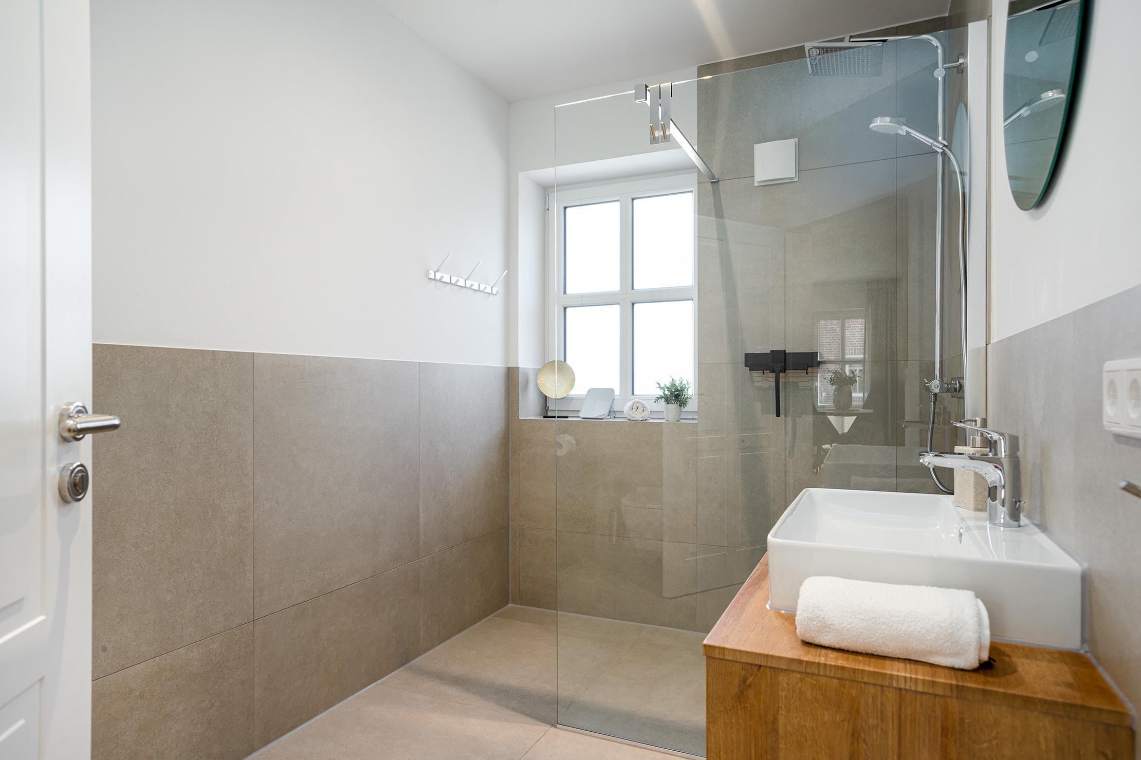 In unserer Erdgeschoss Wohnung "Windhuus 3" mit rund 55qm Wohnfläche erwartet Sie ein modernes Zuhause für entspannte Urlaubstage. Der offene Wohn- und Essbereich ist lichtdurchflutet und verfügt über eine voll ausgestattete Küchenzeile sowie eine gemütliche Sitzecke. Zwei Schlafzimmer bieten ausreichend Platz: ein Zimmer mit Doppelbett lädt zu erholsamen Nächten ein, während im zweiten mit einem Einzelbett besonders kleine Gäste auf ihre Kosten kommen. Das Tageslichtbad ist mit einer komfortablen, ebenerdigen Dusche ausgestattet. Ein besonderes Plus ist der direkte Zugang vom Wohnbereich auf die eigene Terrasse mit angrenzendem Garten – der ideale Ort, um die frische Nordseeluft zu genießen. Die Lage ist zentral und dennoch ruhig: Der malerische Hafen von Greetsiel, charmante Boutiquen und gemütliche Restaurants sind fußläufig erreichbar. Ob Sie durch die Gassen bummeln, mit dem Rad die Umgebung erkunden oder einfach die Weite Ostfrieslands auf sich wirken lassen – hier wird jeder Tag zu einem kleinen Erlebnis.