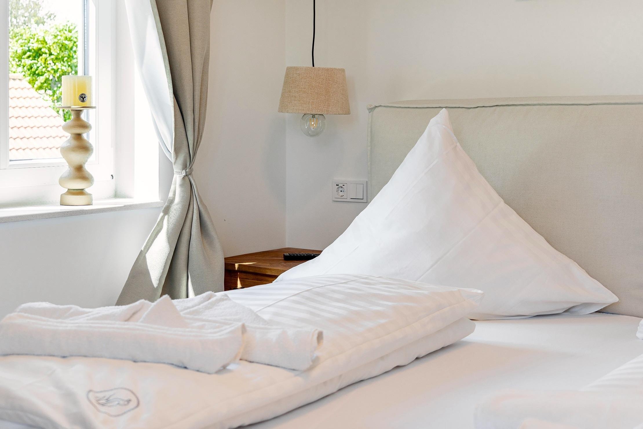 * Gerne bieten wir Ihnen unser Wäschepaket für Ihren Aufenthalt an, welches bezogene Betten, sowie Handtücher (Duschtuch, zwei Handtücher, Duschvorleger und ein Geschirrtuch) umfasst und € 19,50 p.P. kostet. Sie können dieses in der Buchungsstrecke unter dem Punkt "Ihr Mietpreis" hinzu buchen. *
