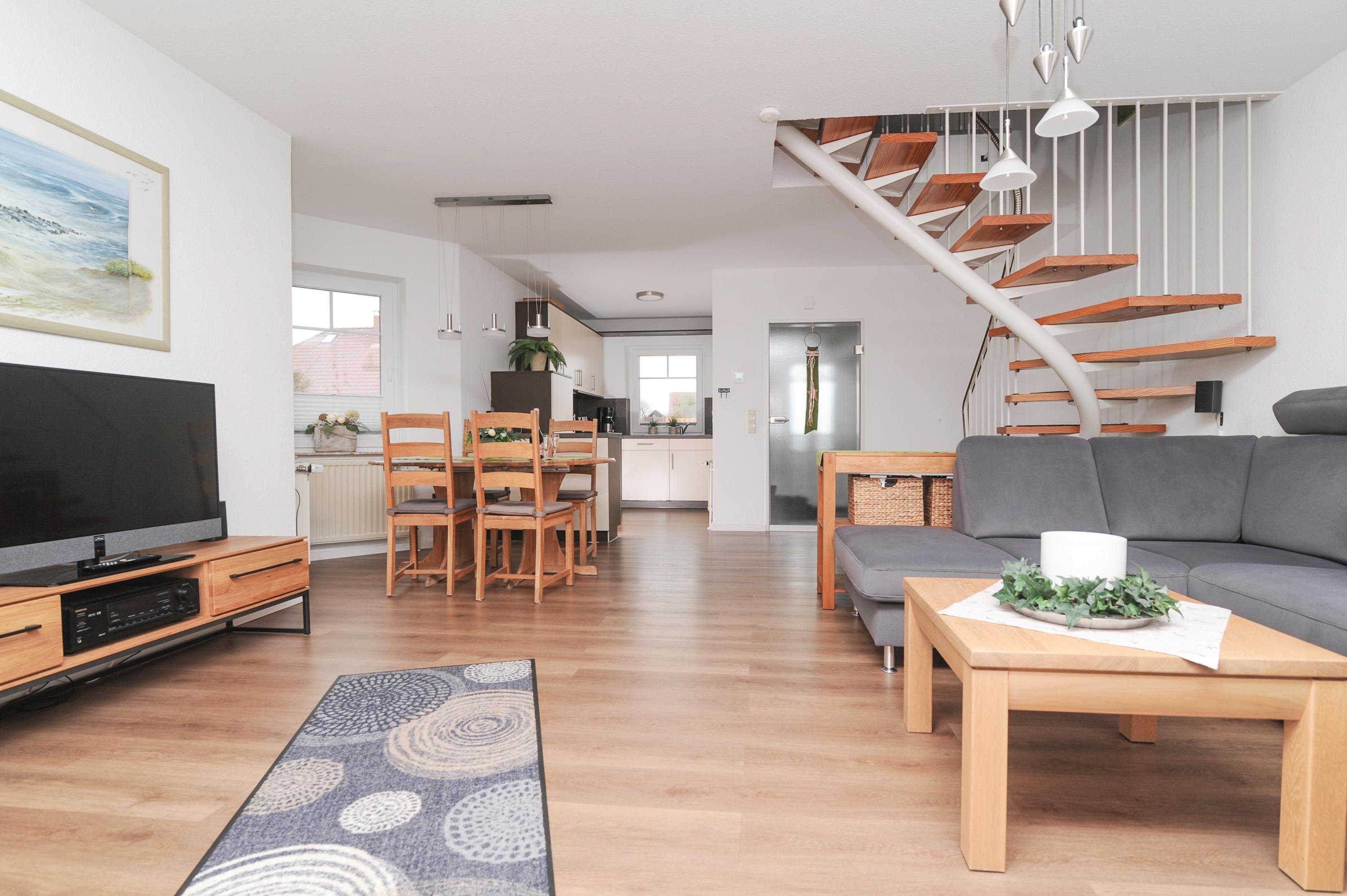 Das Haus bietet auf 2 Etagen einen angenehmen Komfort für die ganze Familie. Der geschmackvoll eingerichtete Wohnraum mit 42"Metz Full-HD LCD TV (Mediathek), bequemem Ecksofa, Stereoanlage, Essplatz für 4 Personen sowie ein DAB+ Radio, kostenlosem Glasfaser WLAN-Gastzugang und Telefon stehen für Sie bereit. Die offene Einbauküche ist komplett ausgestattet: Herd mit Cerankochfeld, Dunstabzugshaube, Geschirrspüler, Kühlschrank mit Gefrierfach, Filterkaffeemaschine, Toaster und vielem mehr bietet Ihnen alle Annehmlichkeiten für einen erholsamen Urlaub.