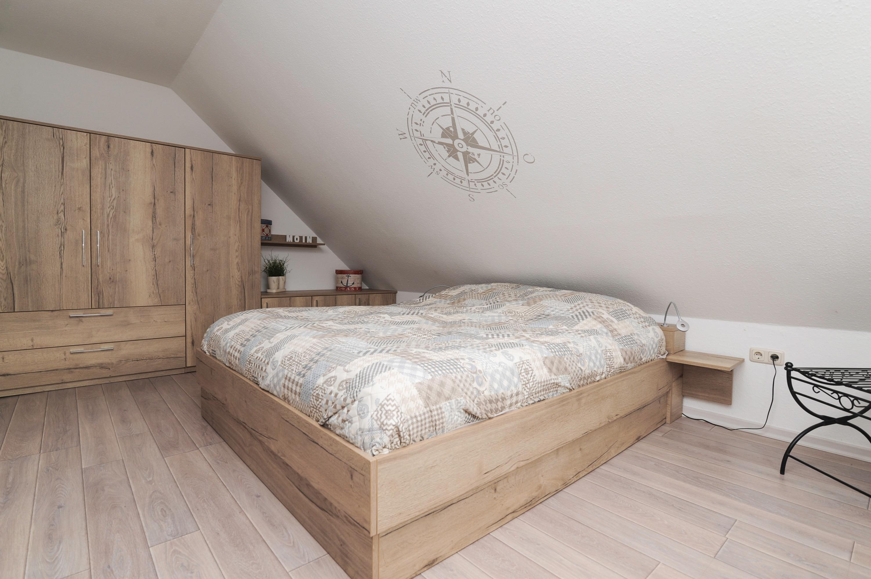 Im Obergeschoss erwarten Sie 2 Schlafräume und das Badezimmer