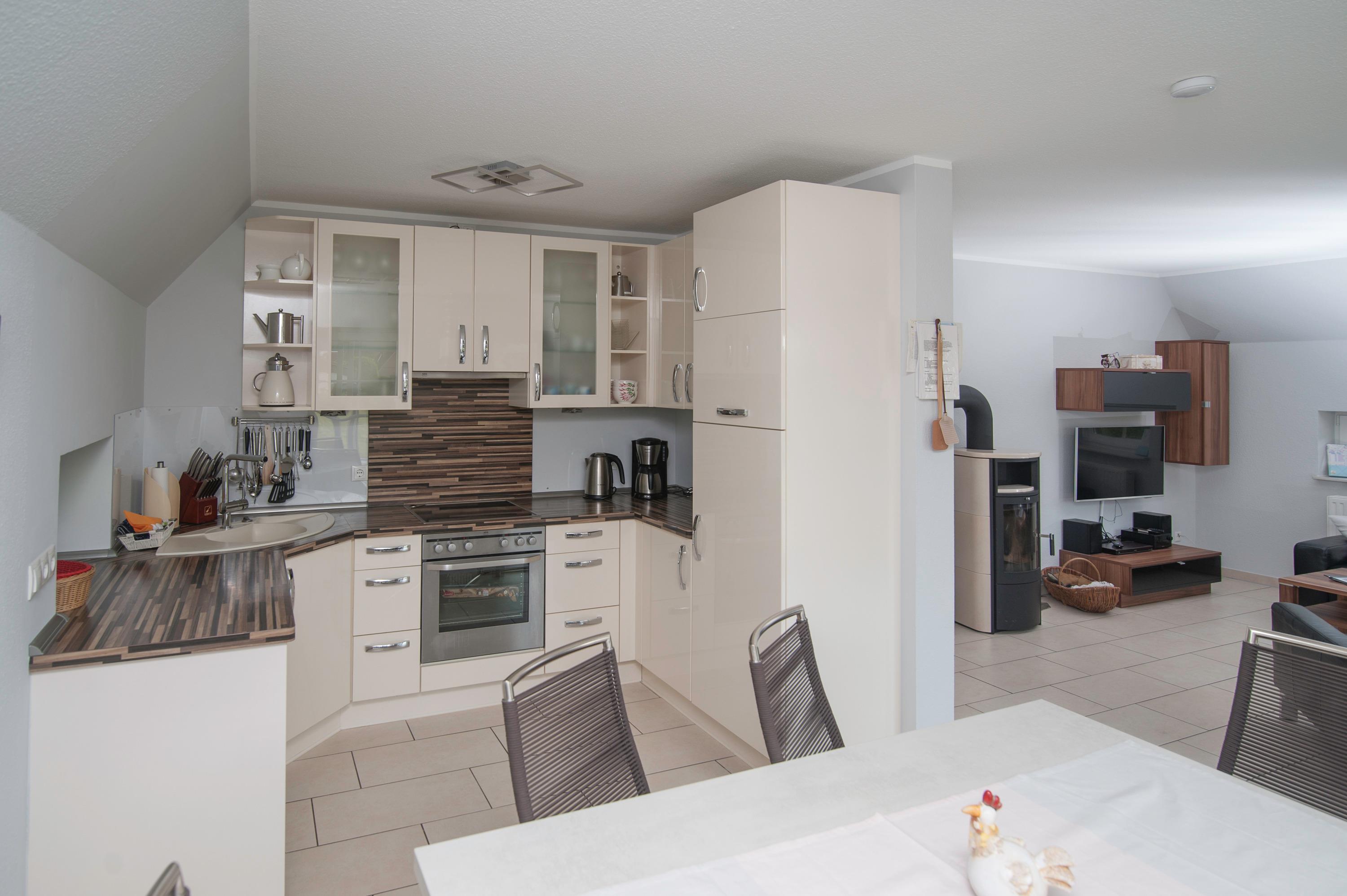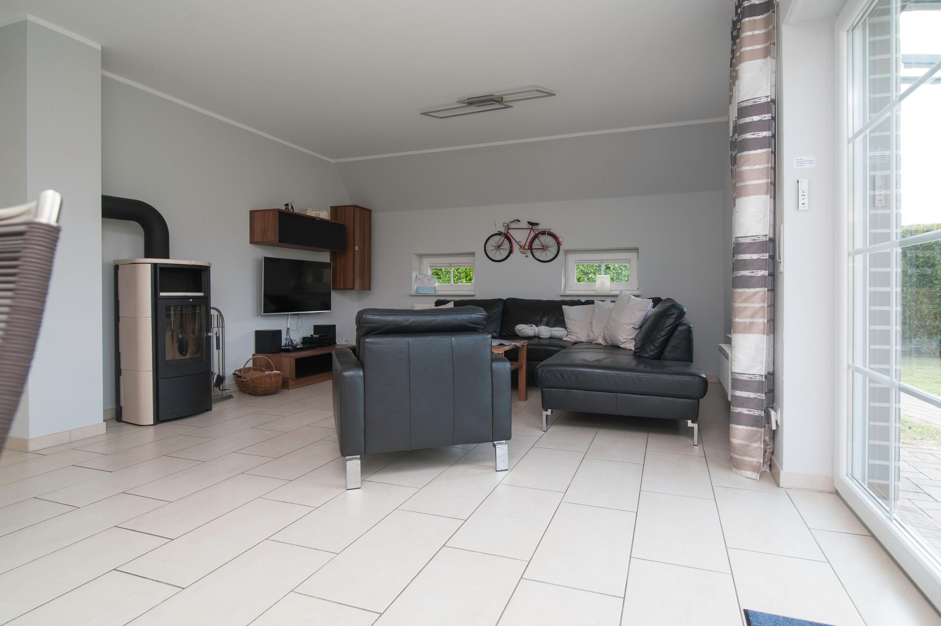Im Wohnbereich und in den Bädern gibt es eine Fußbodenerwärmung. Außenrollos und Insektenschutzgitter sind vorhanden. Der schöne, großzügige Wohnraum hat einen 43"Philips Android LCD-TV, eine Stereoanlage mit CD-Player und Kassettenrekorder, ein Glasfaser WLAN-Gastzugang ist vorhanden, eine komfortable Ledersitzgruppe und einen Kaminofen, einen Essplatz für 6 Personen. Die Einbauküche ist komplett ausgestattet u.a. Herd mit Cerankochfeld, Kühlschrank incl. Gefrierfach, Mikrowelle mit Grill, Geschirrspüler, Mixer und mehr....