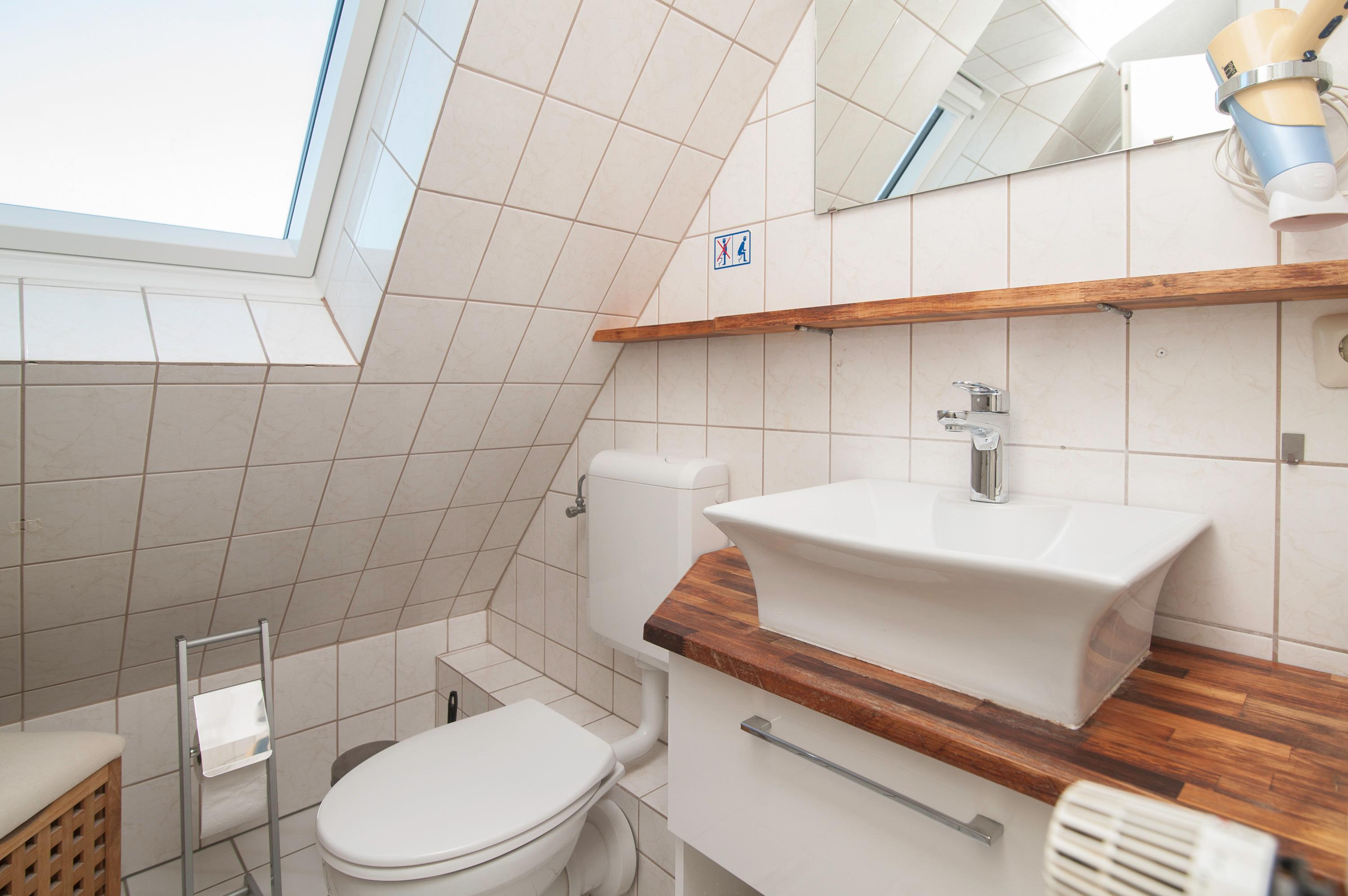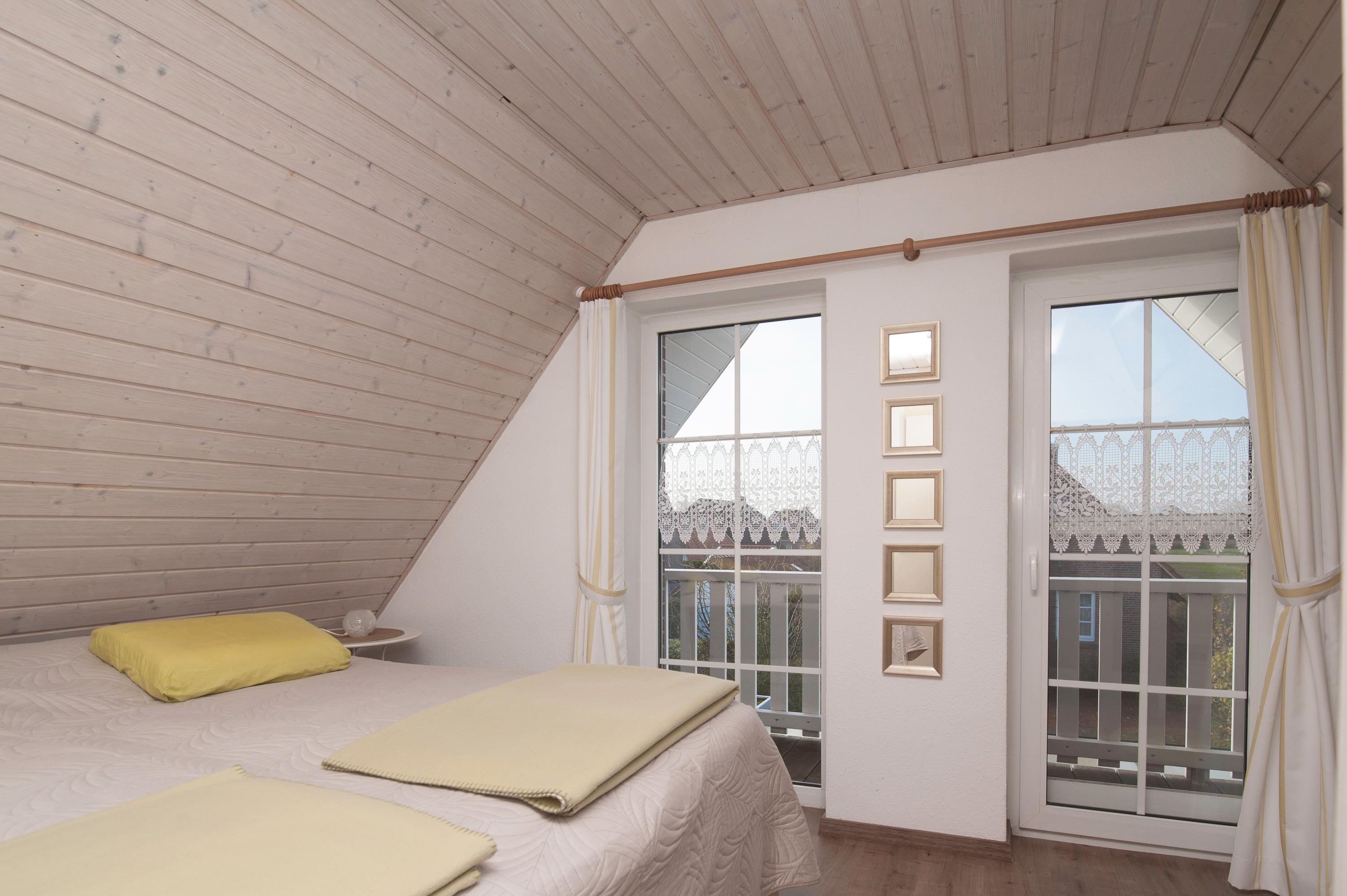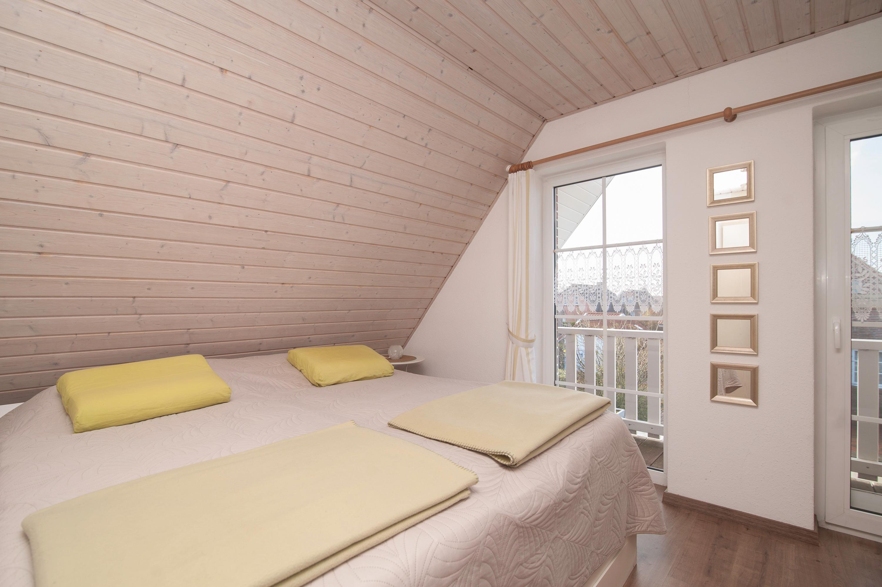 Im Obergeschoß erwarten Sie zwei liebevoll eingerichtete Schlafzimmer. Ein Schlafzimmer mit Doppelbett (Bodyguard Matratzen 90 x 200 cm mit Topper) und 32"JTC LED HD-TV und ein weiteres Schlafzimmer mit zwei Einzelbetten (90 x 200 cm). Das Badezimmer mit Dusche, Waschbecken und WC ist ebenfalls Obergeschoß.