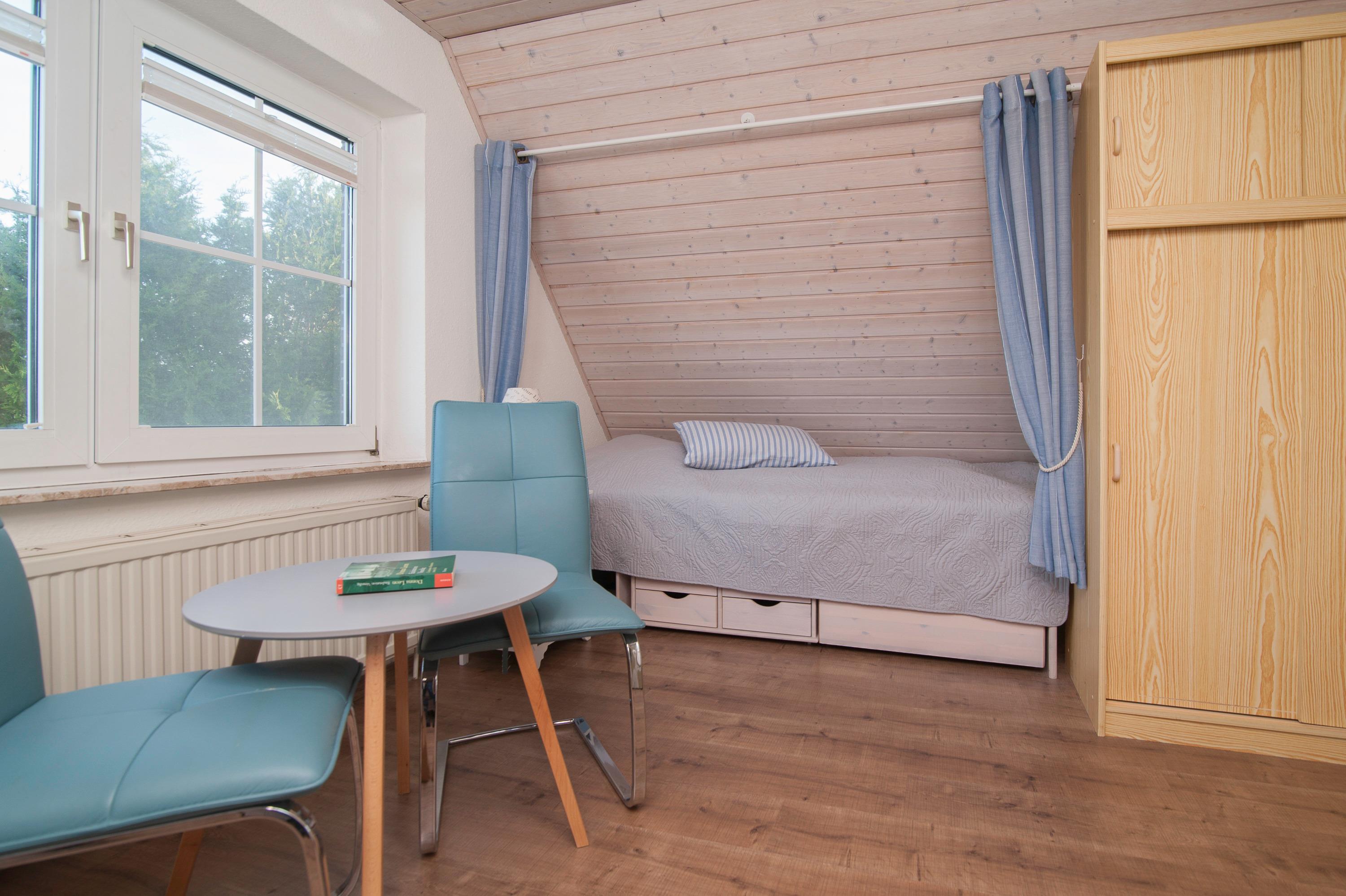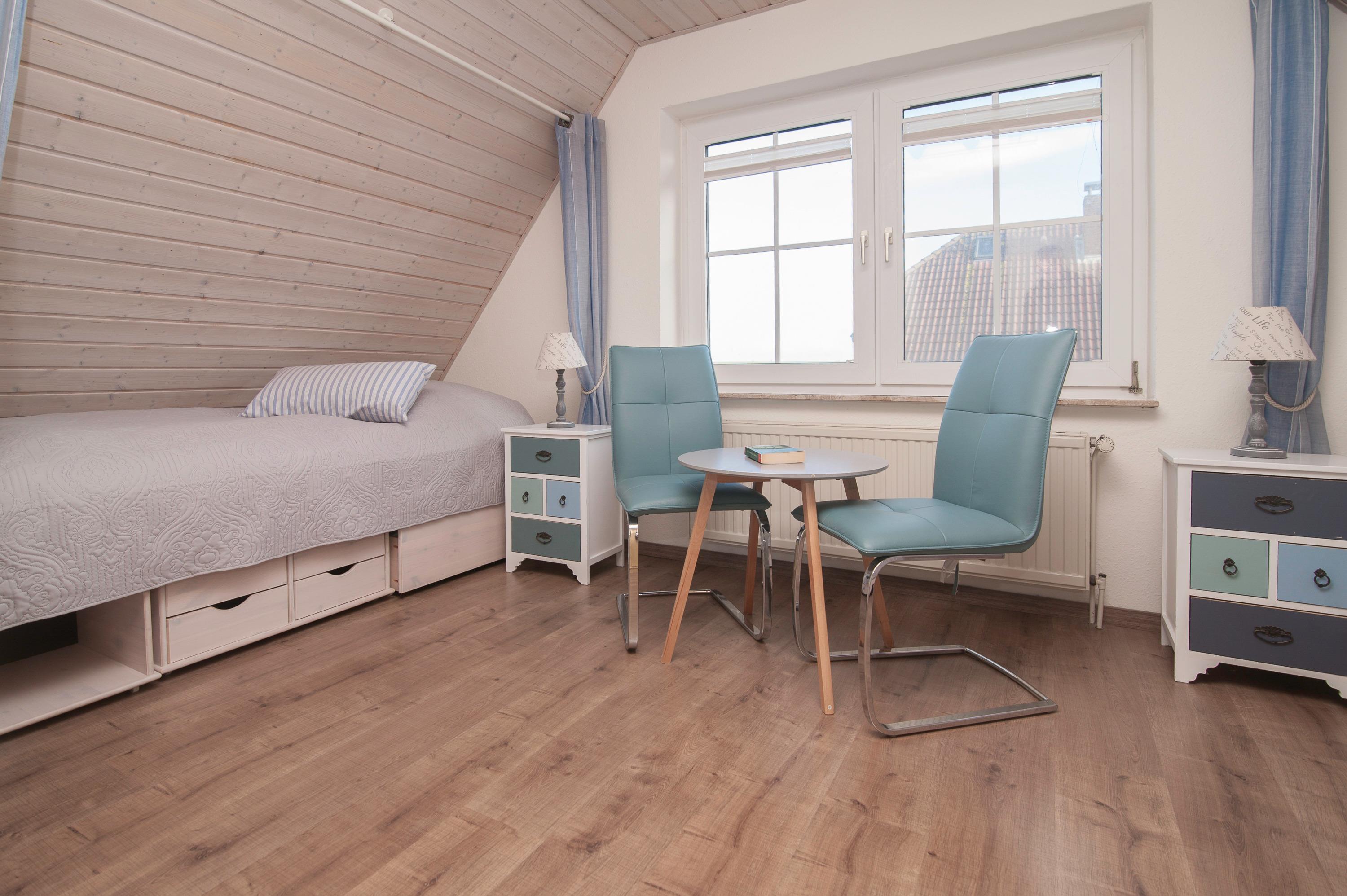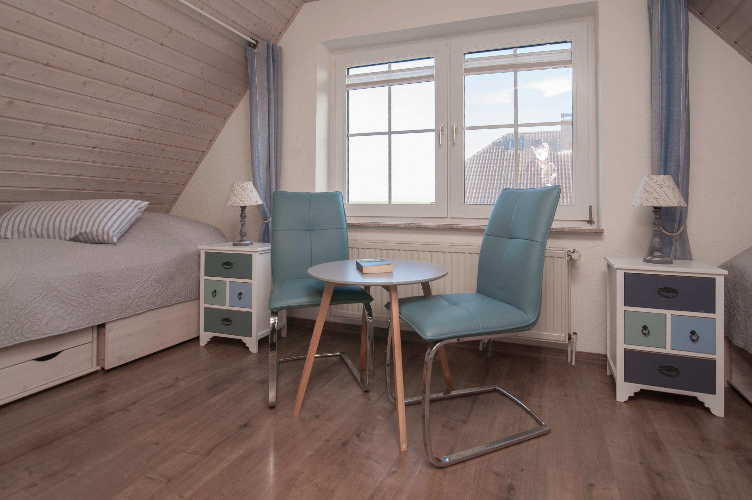 Im Obergeschoß erwarten Sie zwei liebevoll eingerichtete Schlafzimmer. Ein Schlafzimmer mit Doppelbett (Bodyguard Matratzen 90 x 200 cm mit Topper) und 32"JTC LED HD-TV und ein weiteres Schlafzimmer mit zwei Einzelbetten (90 x 200 cm). Das Badezimmer mit Dusche, Waschbecken und WC ist ebenfalls Obergeschoß.