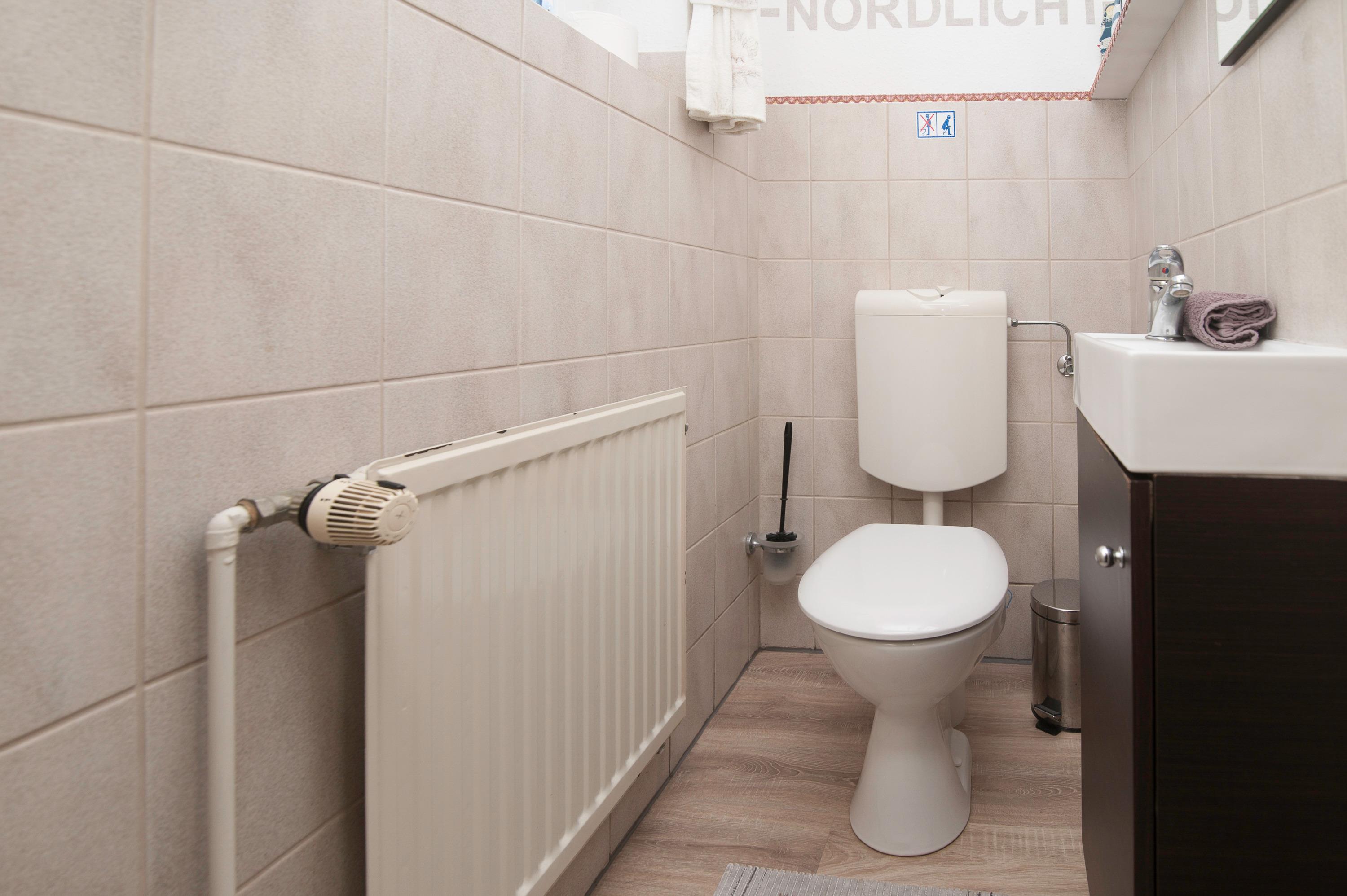 Ein zusätzliches WC befindet sich im Erdgeschoß sowie ein Abstellraum mit Waschmaschine (5 kg), Wäscheständer, Bügelbrett + Bügeleisen.