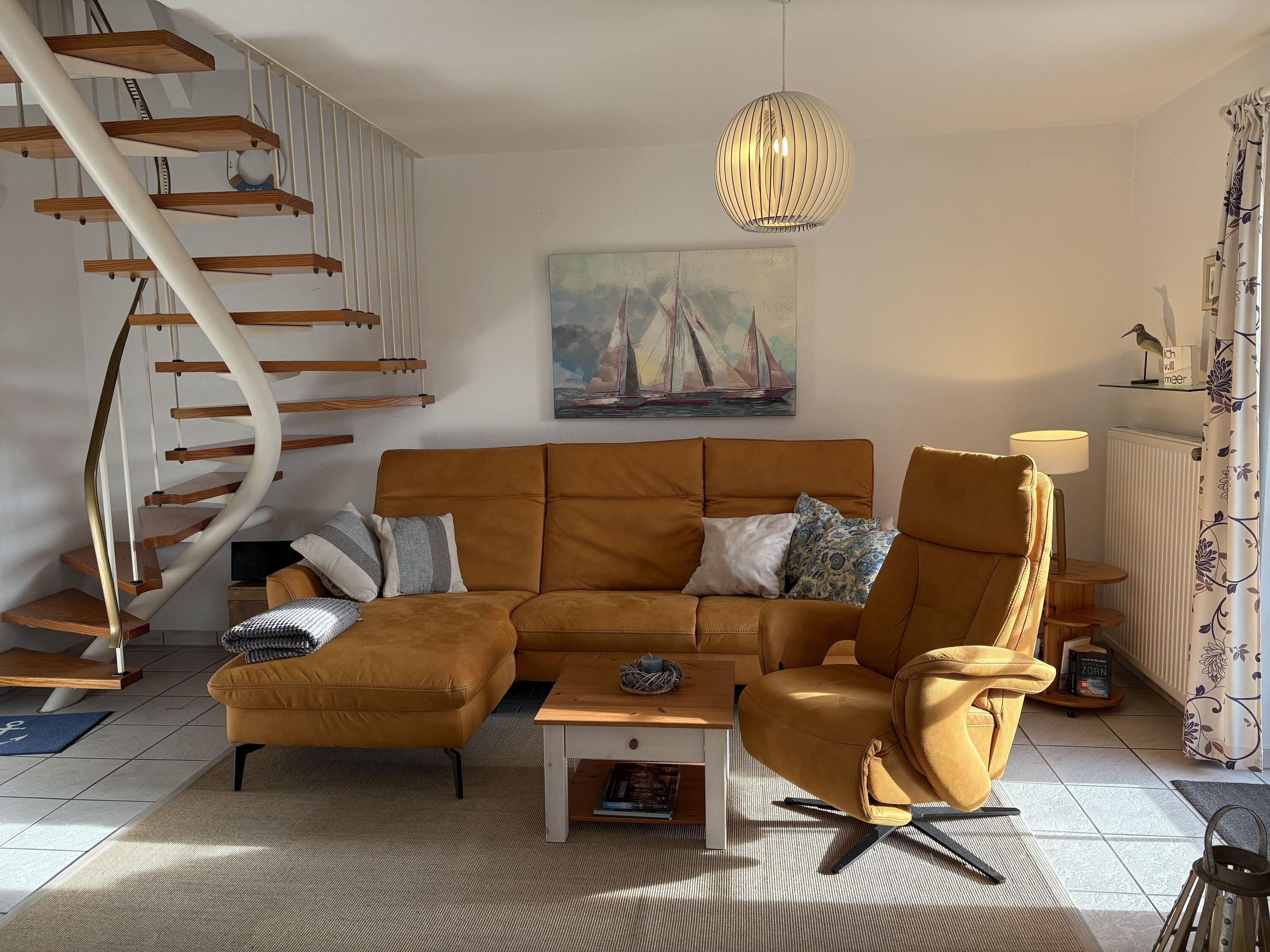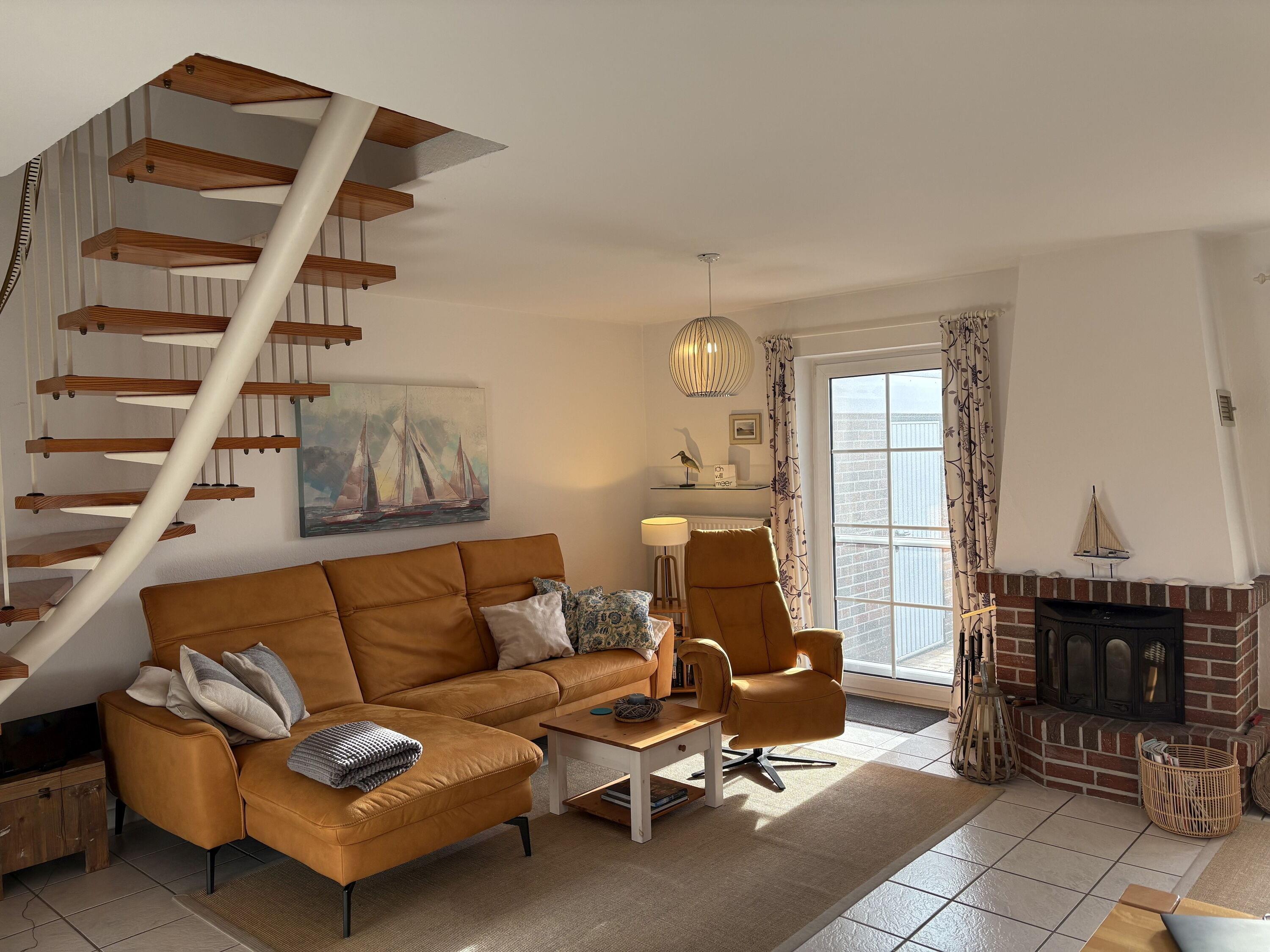 Schöner Wohnraum mit Kamin, 43"Metz FullHD LED-TV , Sitzgruppe, Stereoanlage, Essplatz, für 4 Personen, ein DSL WLAN-Gastzugang ist vorhanden.