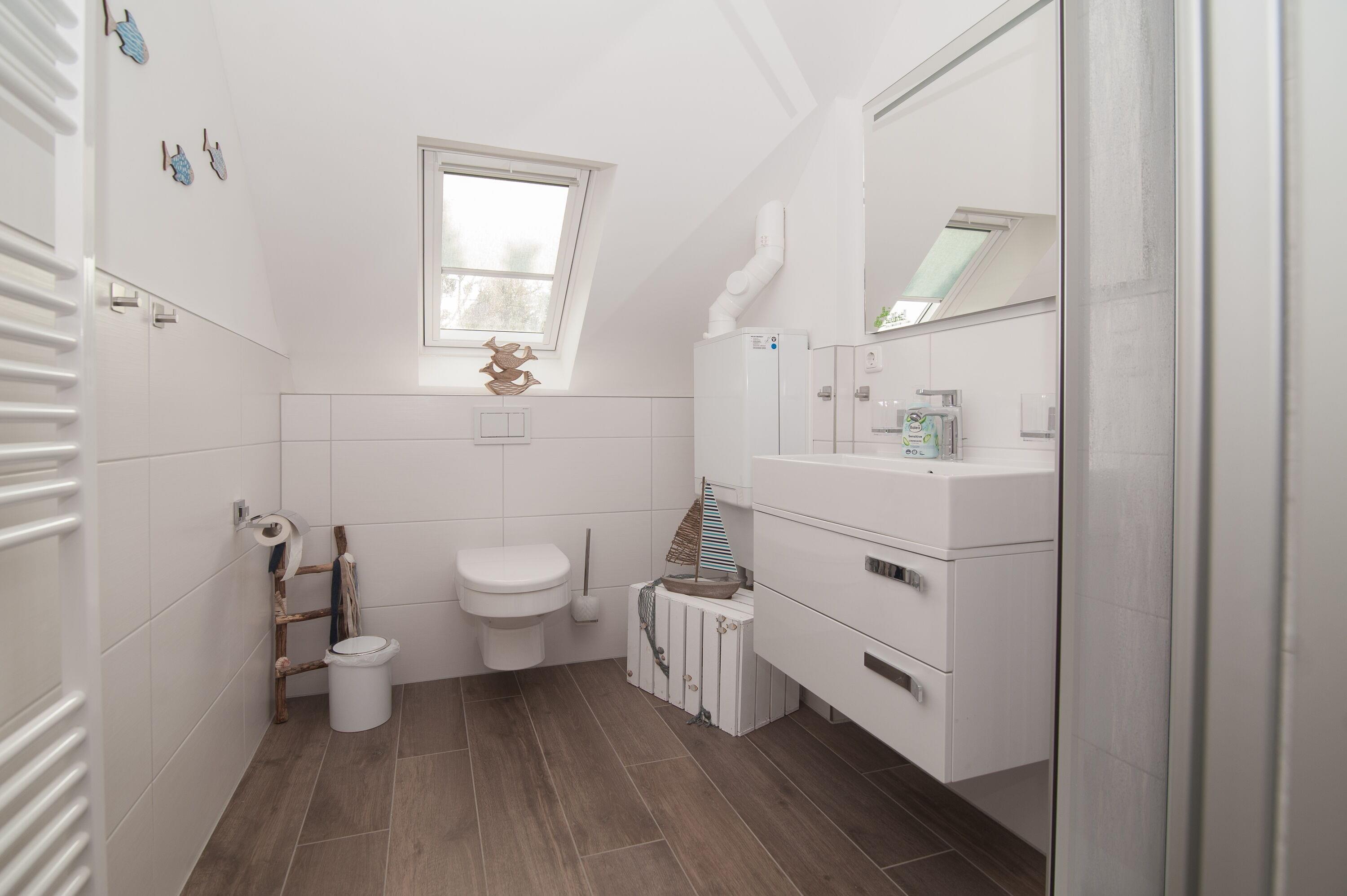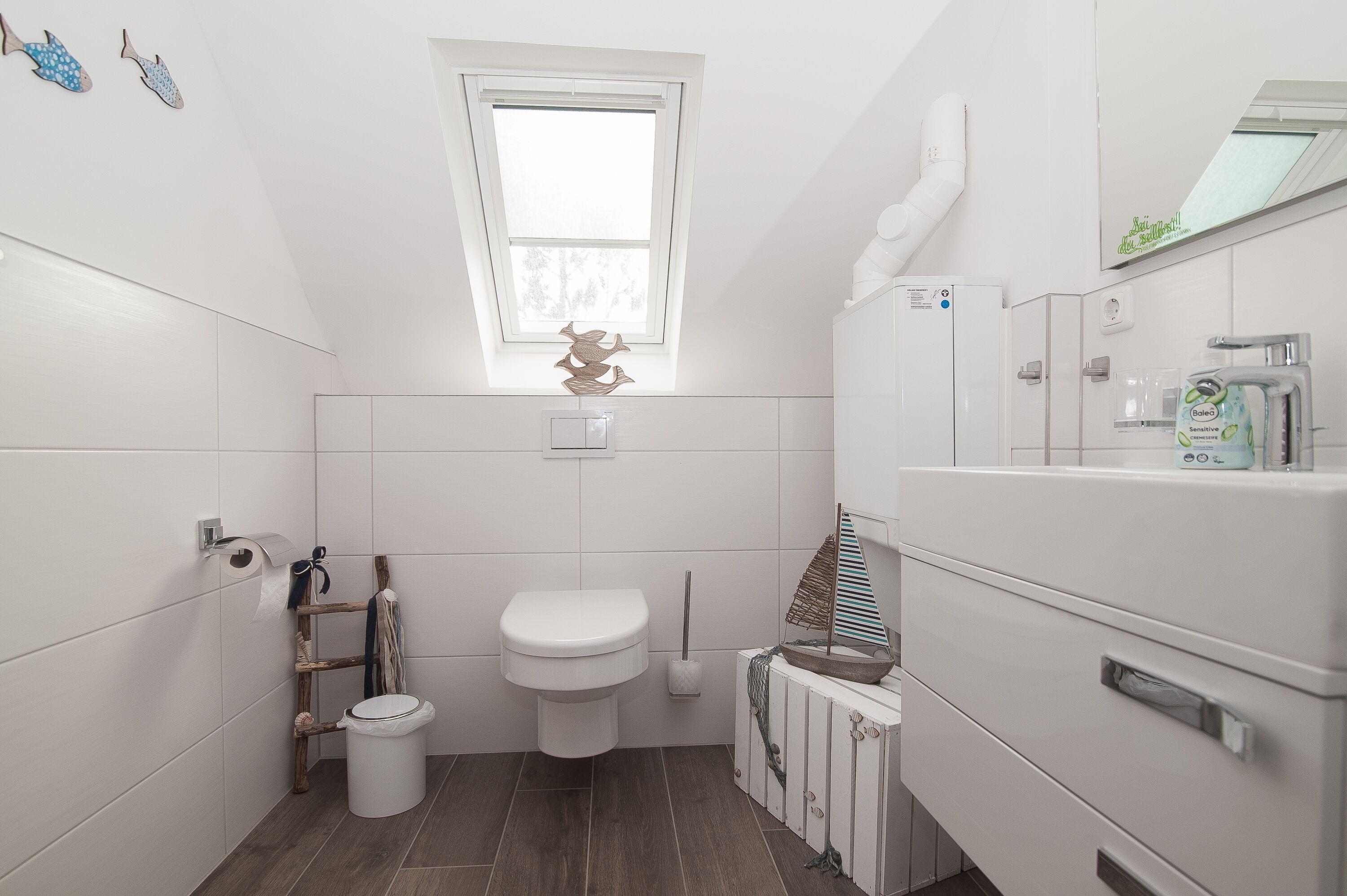 Ein zusätzliches Gäste-WC im Erdgeschoß und ein kleiner Abstellraum. Insektenschutzgitter sind vorhanden. 1 Haustier ist auf Anfrage gegen eine Gebühr willkommen. 1 PKW Abstellplatz ist direkt vorm Haus. Bettwäsche und Handtücher werden auf Wunsch gegen Entgelt gestellt.